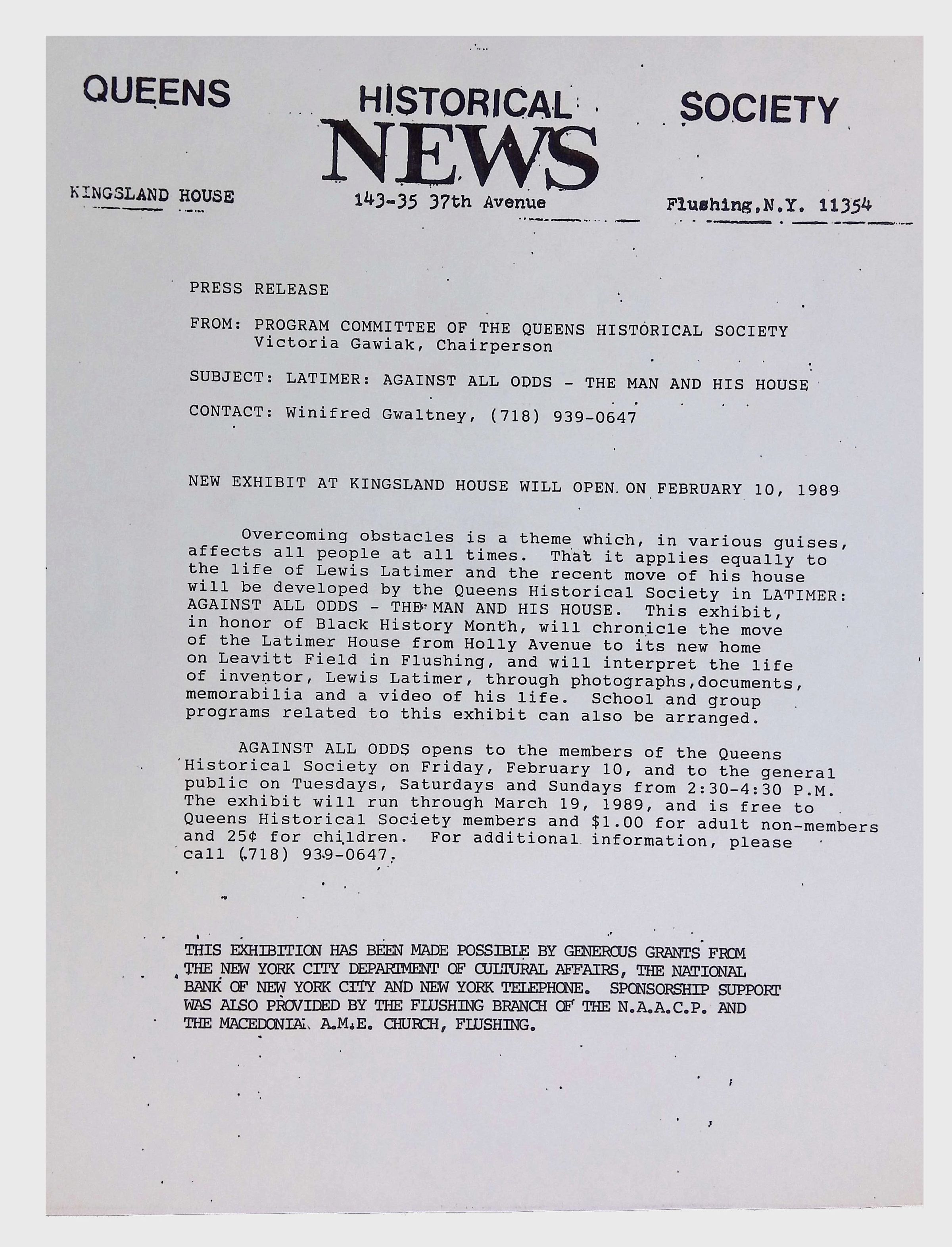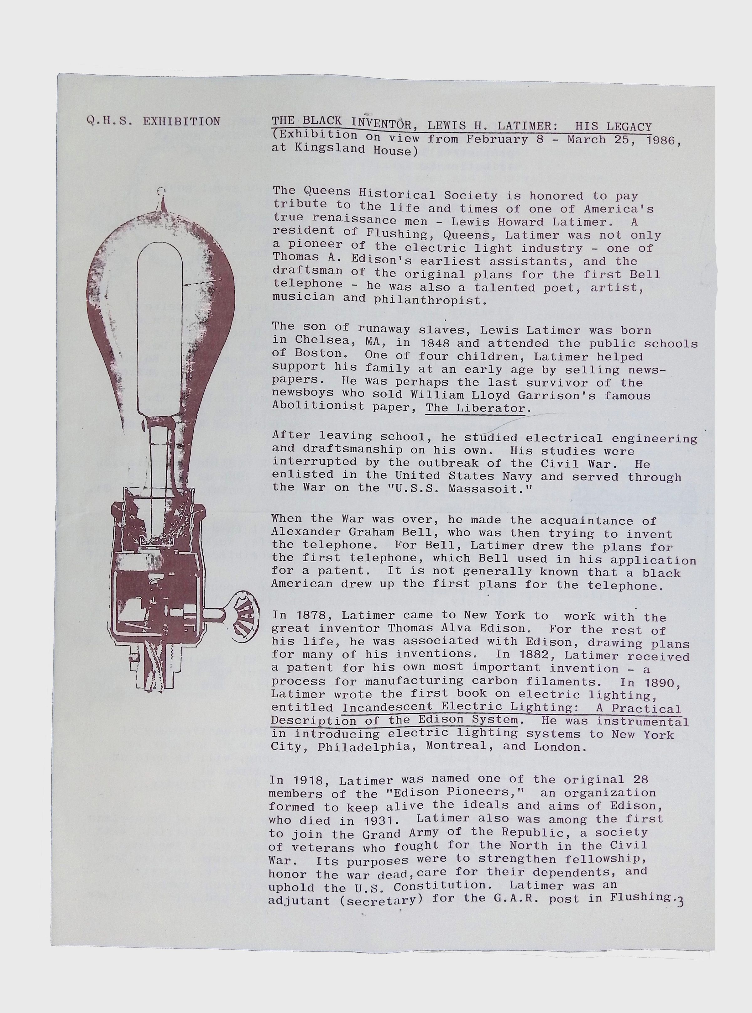 Lewis Latimer Fund, Inc. Records (1986-1996) [QPL Subgroup], Latimer Family Papers (1870-1996 ) [QPL Full Collection]Location