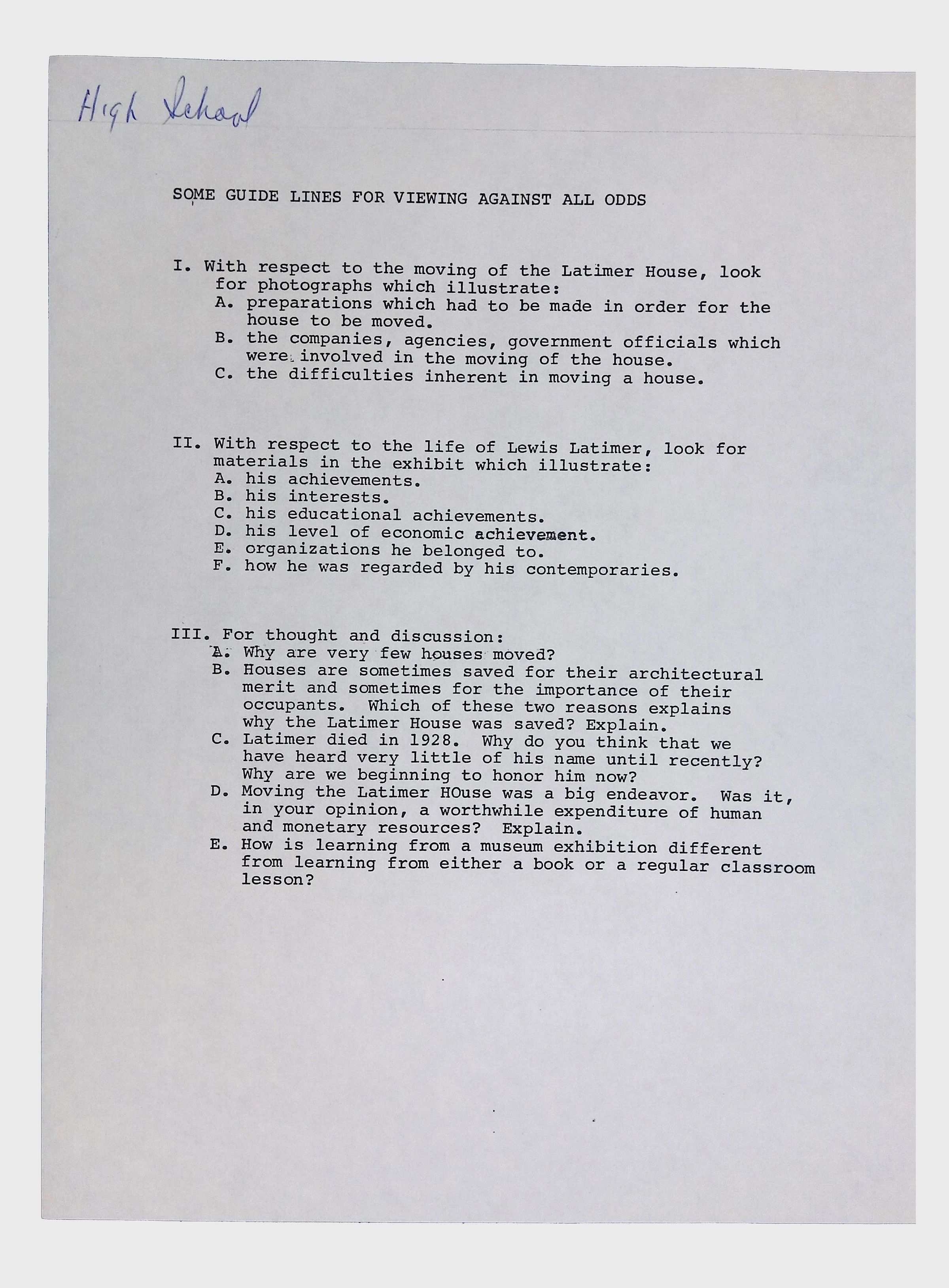 These documents highlight public engagement with the Latimer House, including ceremonies, educational programs, and fundraising events.Collection