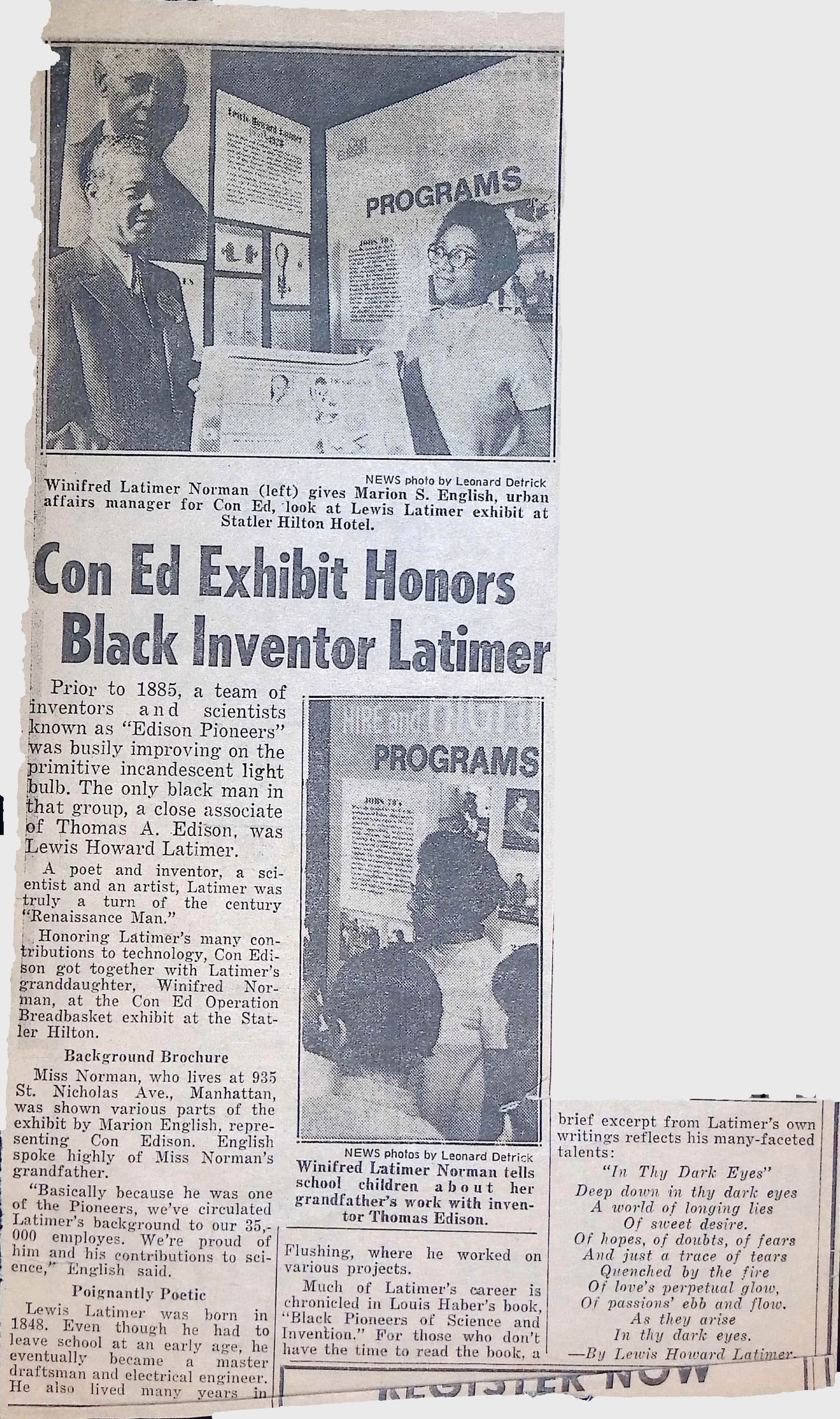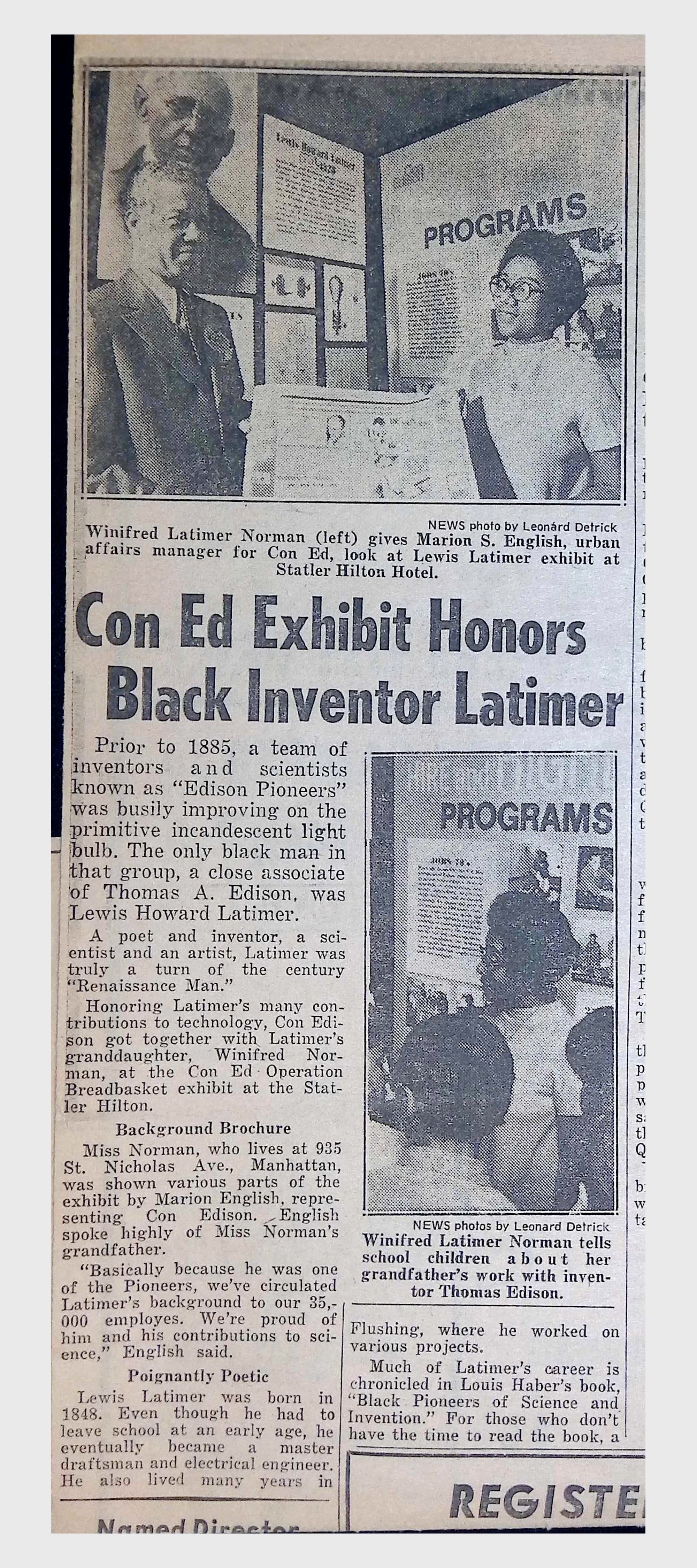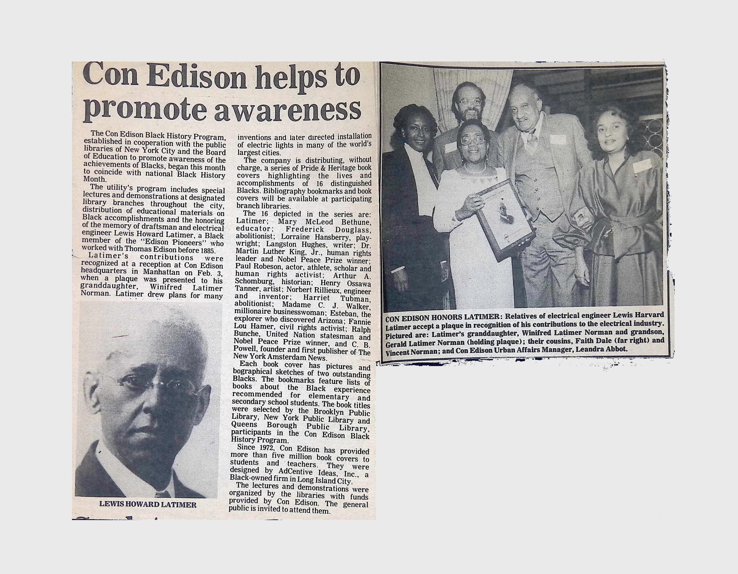This folder contains a curated collection of newspaper articles, magazine features, and periodicals covering the life, achievements, and legacy of Lewis Howard Latimer. These materials were collected by—and shed light on the activities of—Latimer’s granddaughter, Winifred Norman, as she worked to preserve and publicize his achievements. The materials span different decades and publications, offering a broad perspective on how Latimer’s contributions to electrical engineering and African American history have been recognized over time.Collection