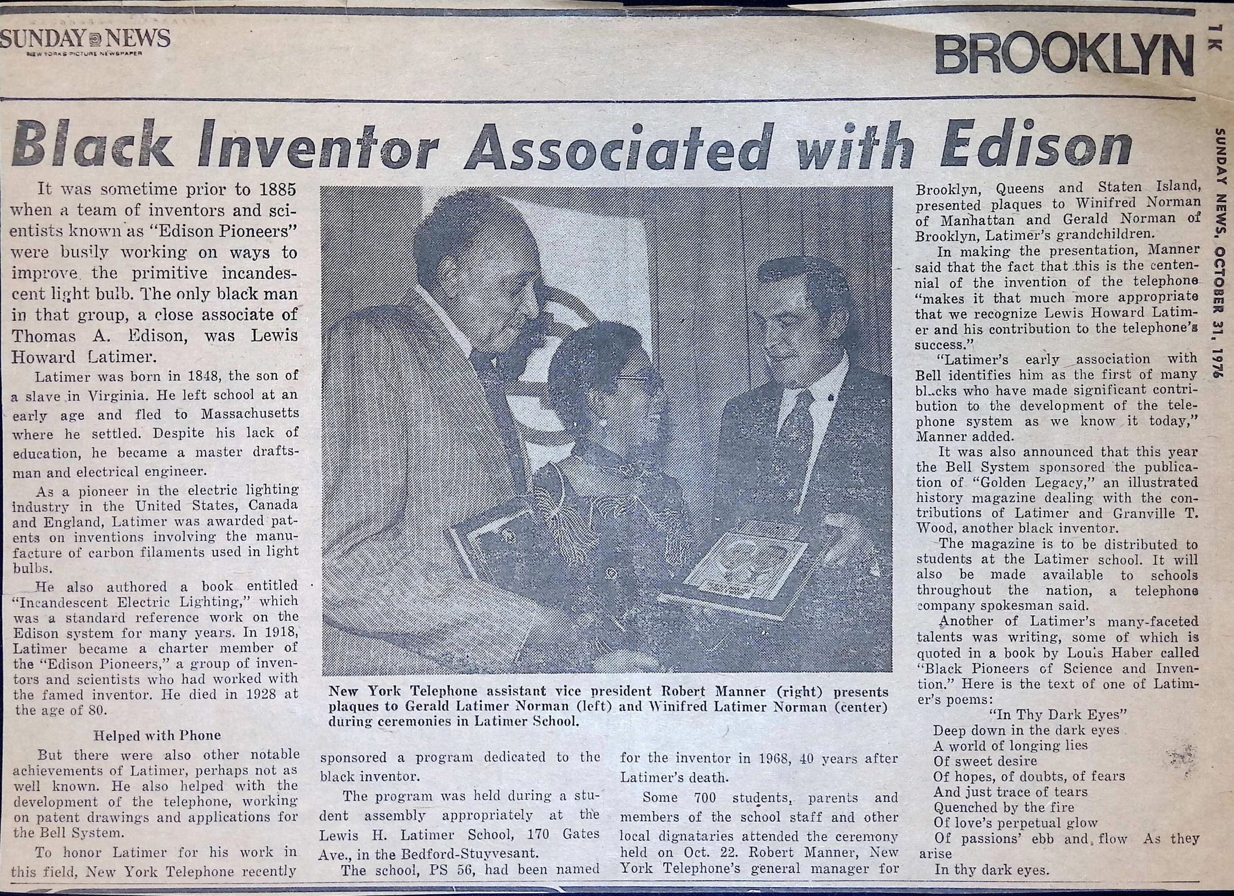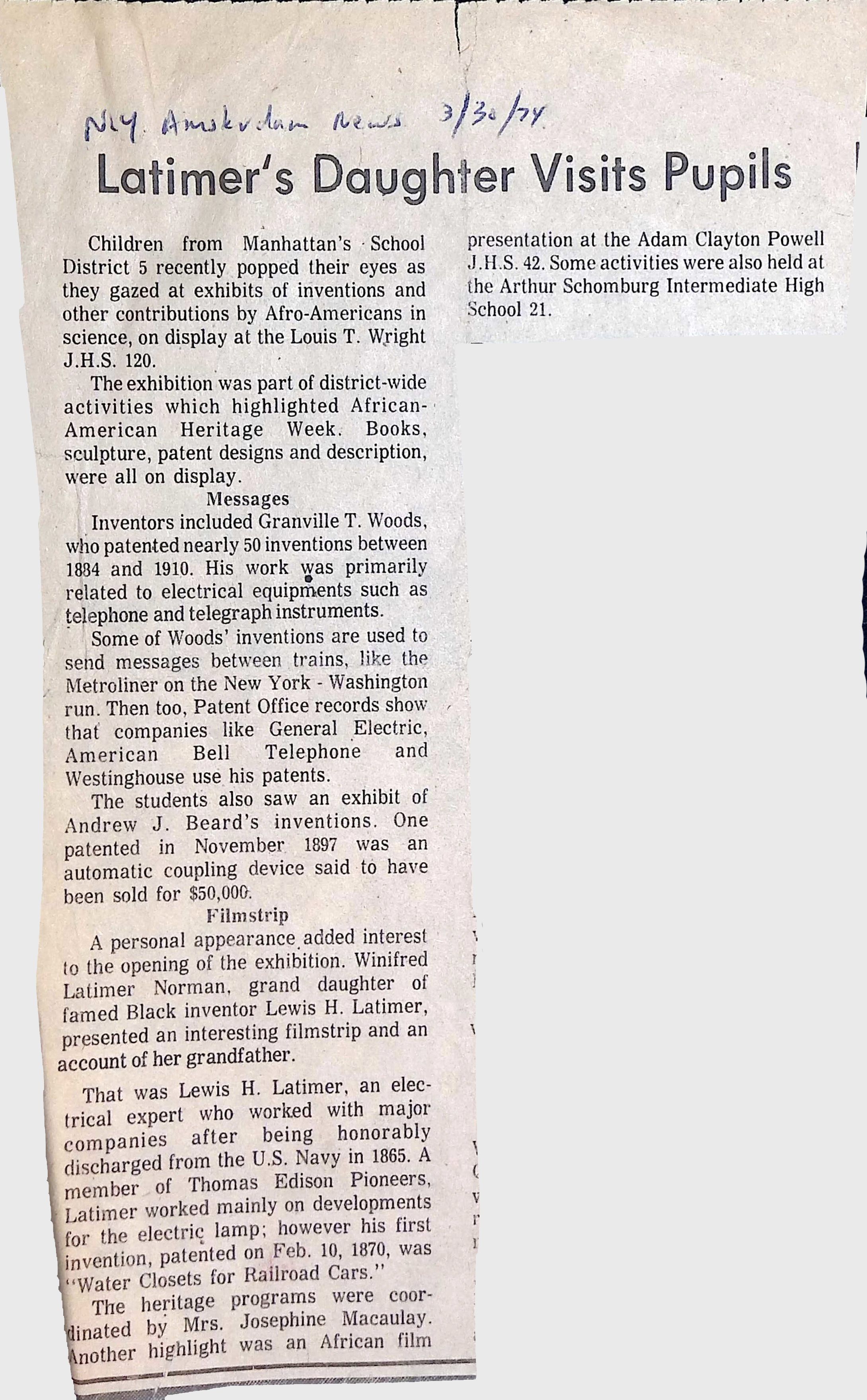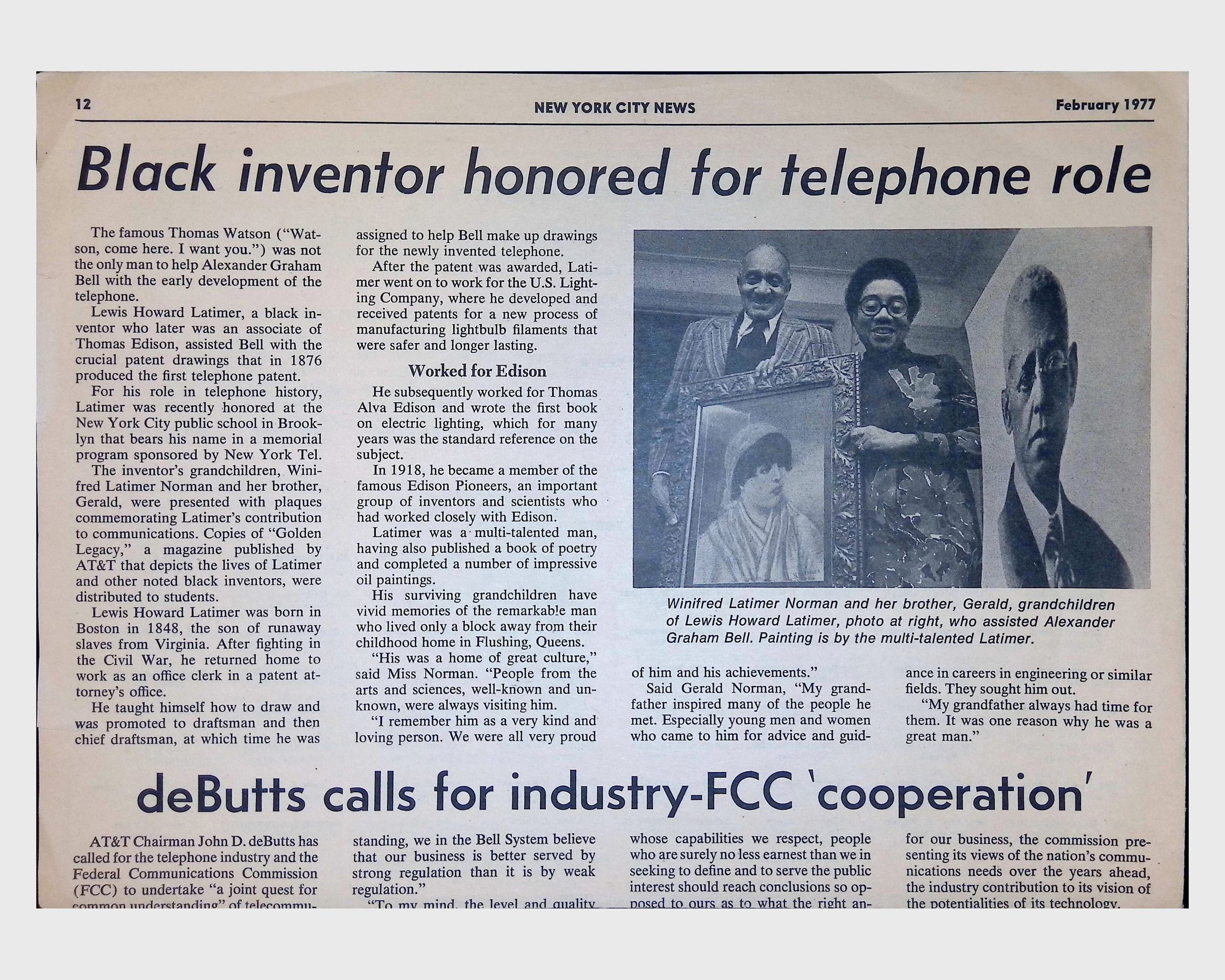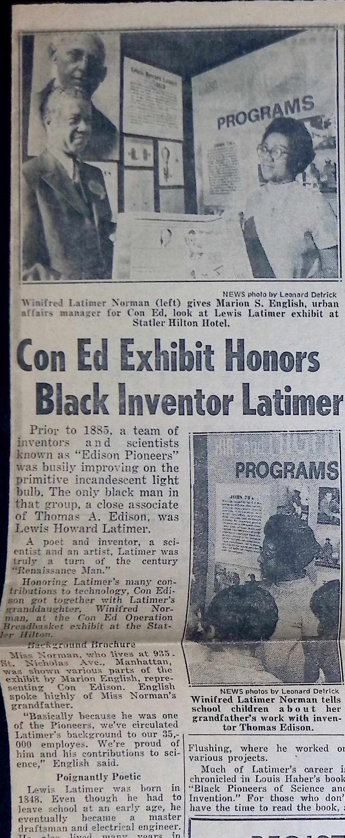 This folder contains a curated collection of newspaper articles, magazine features, and periodicals covering the life, achievements, and legacy of Lewis Howard Latimer. These materials were collected by—and shed light on the activities of—Latimer’s granddaughter, Winifred Norman, as she worked to preserve and publicize his achievements. The materials span different decades and publications, offering a broad perspective on how Latimer’s contributions to electrical engineering and African American history have been recognized over time.Collection