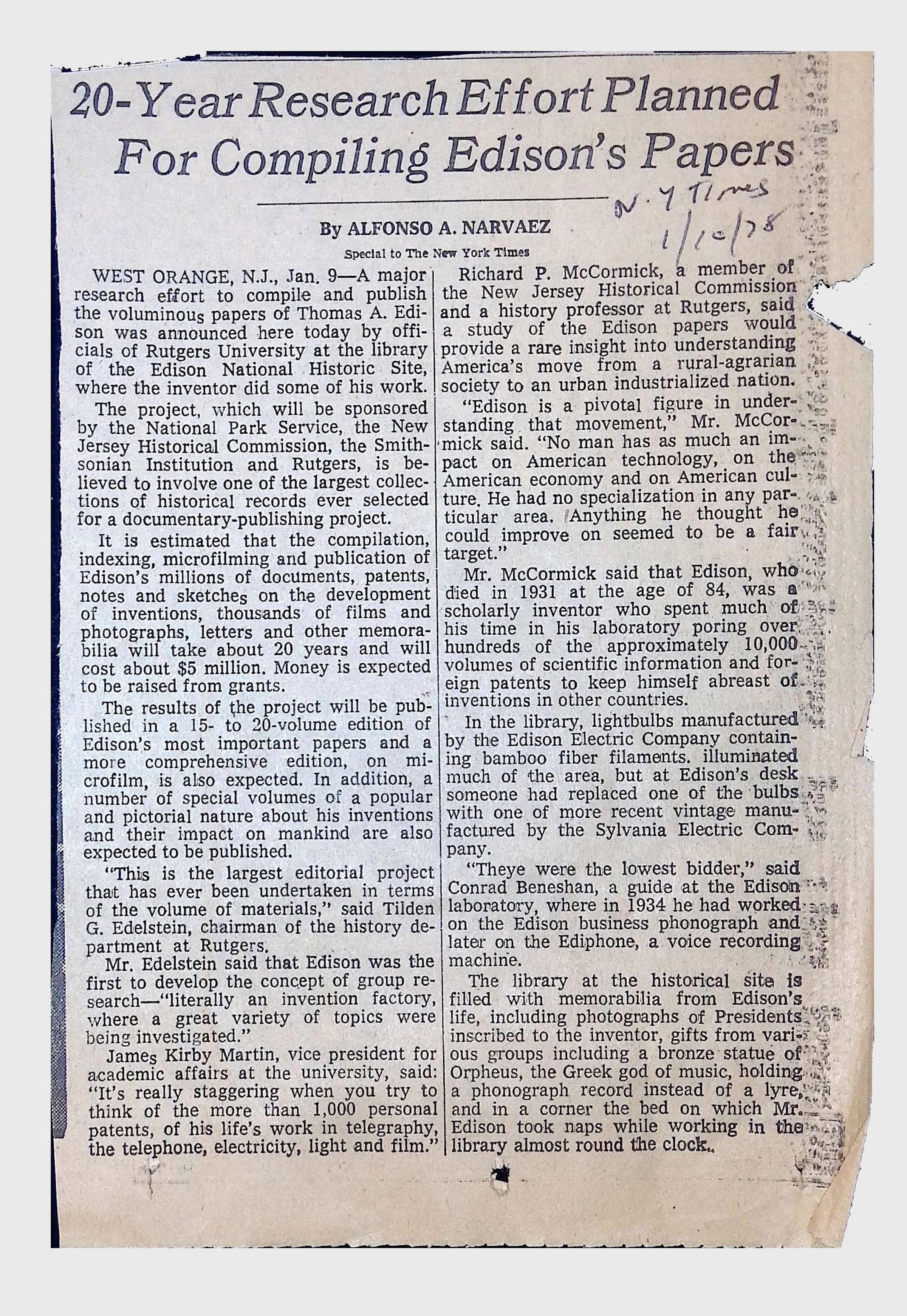 The collection includes clippings from major newspapers and specialized periodicals, some featuring obituaries, historical retrospectives, and anniversary tributes to Latimer’s work. Many articles discuss his role in the development of electric lighting, his patents, and his association with Edison, Bell, and the Edison Pioneers. Additionally, some articles focus on public commemorations, exhibitions, and efforts to preserve Latimer’s home as a historical site.Location