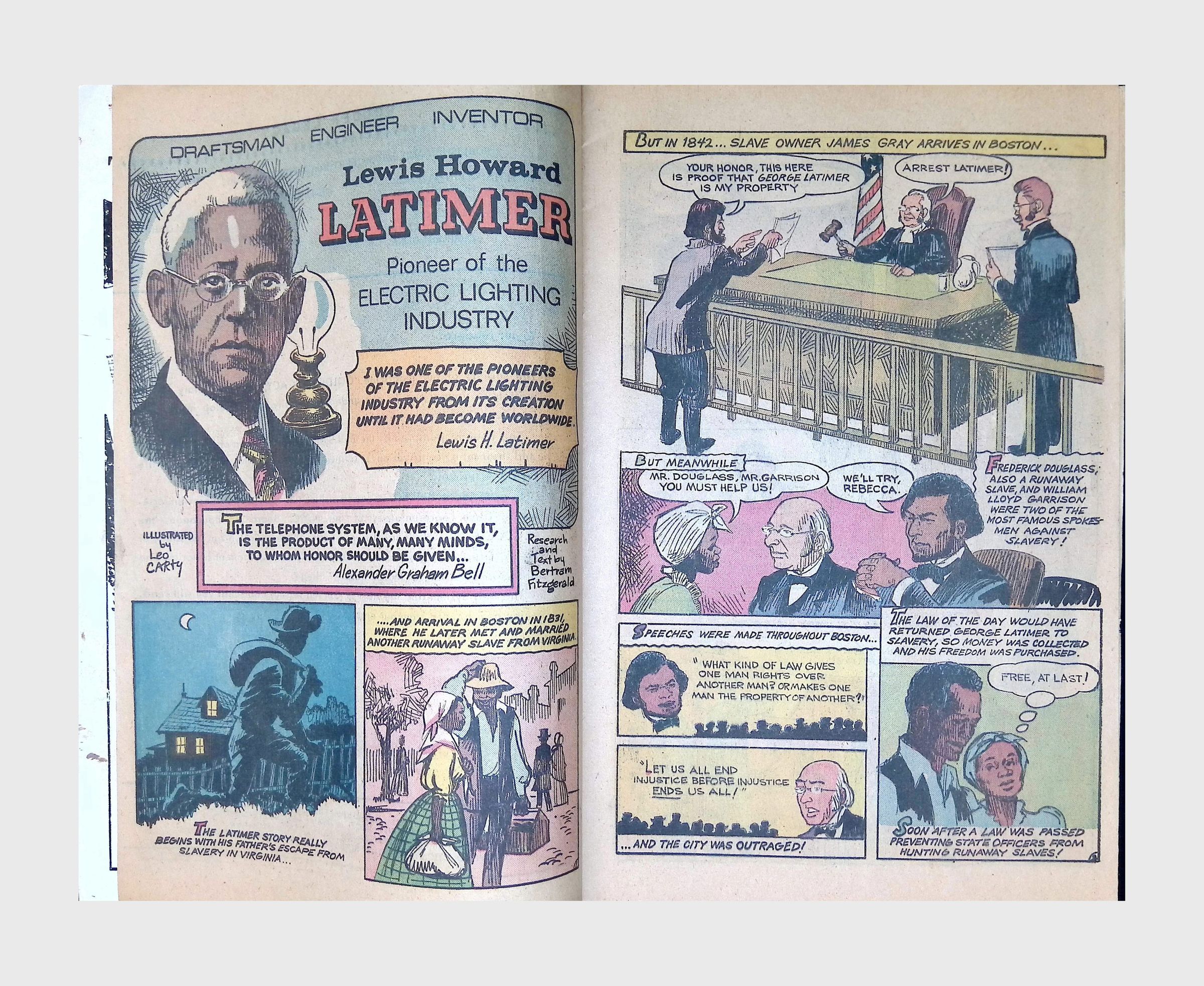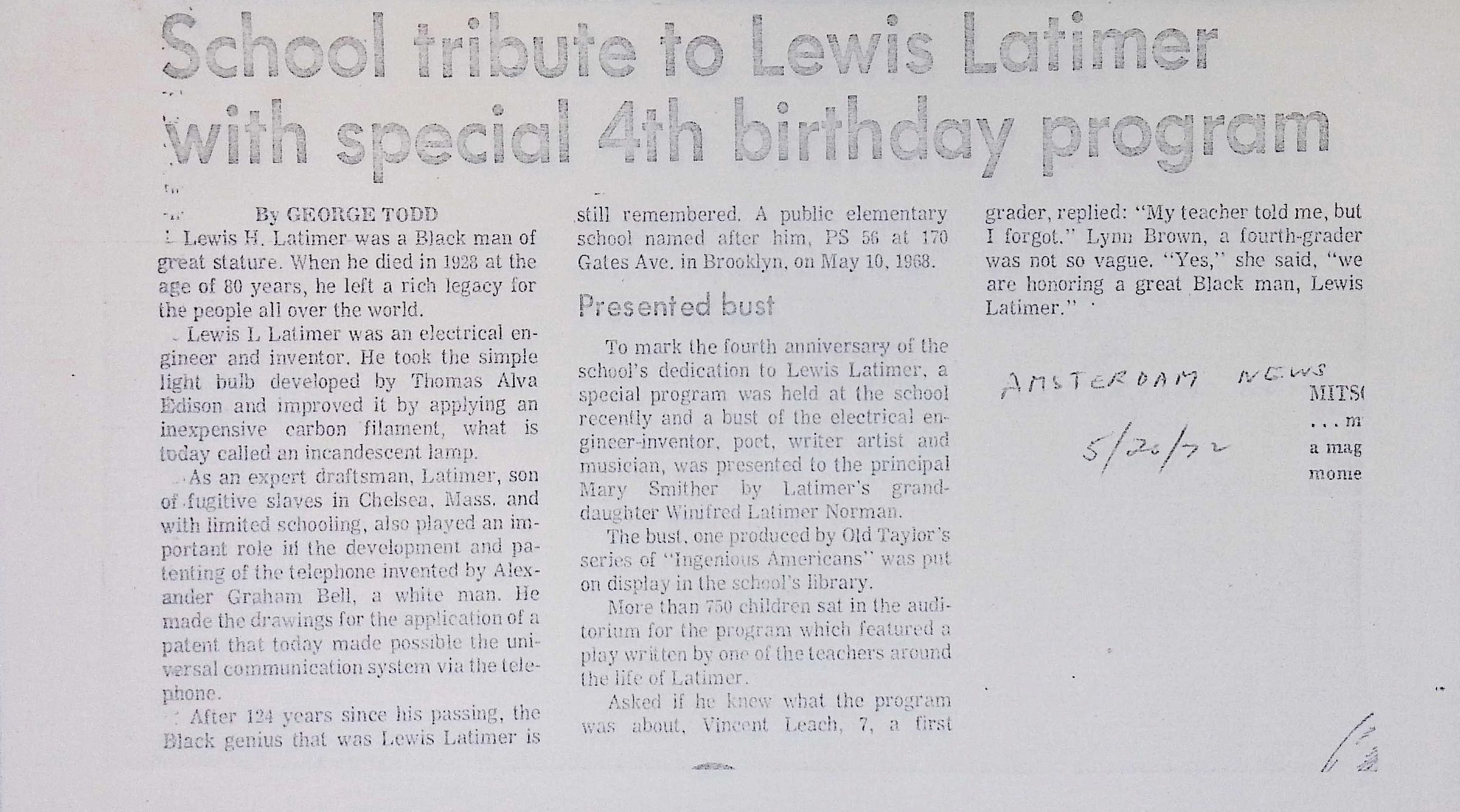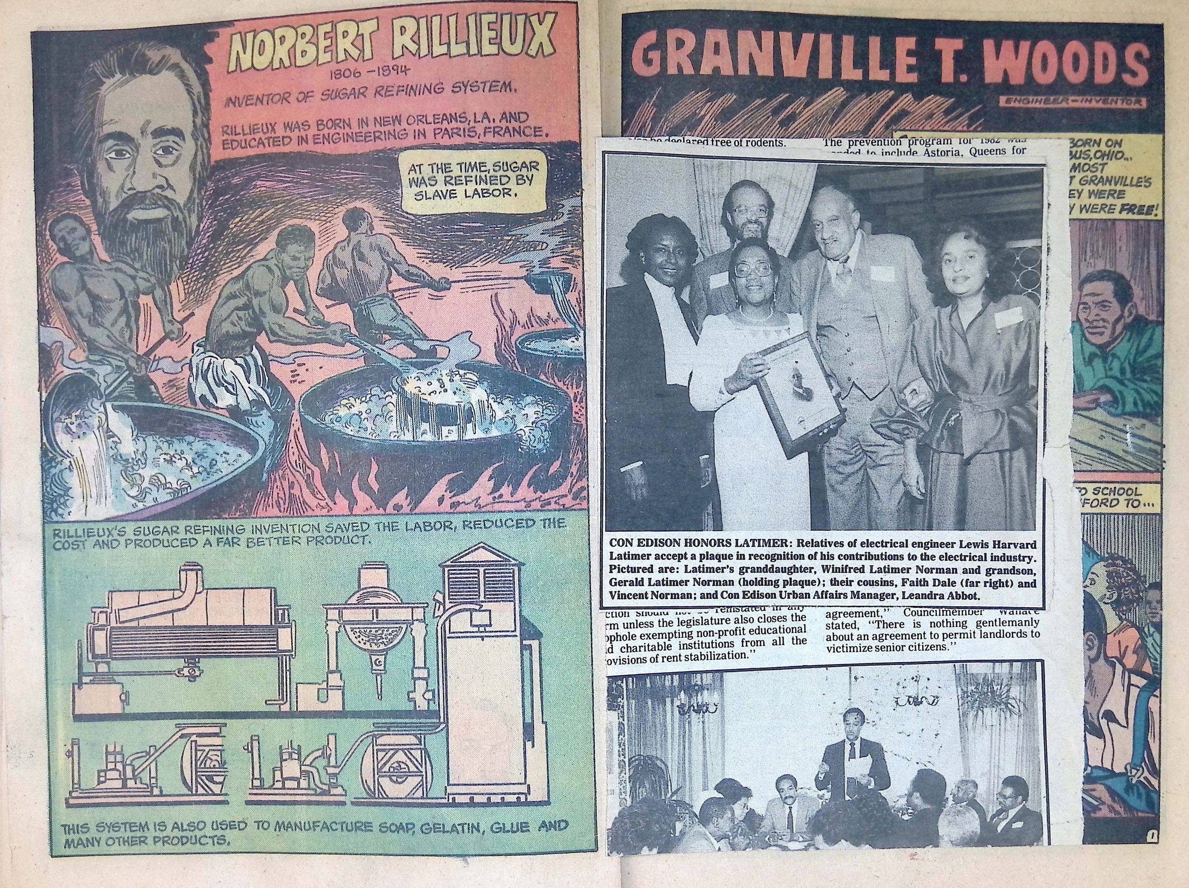 Newspaper clippings and magazine excerpts featuring Latimer’s biography and inventions.