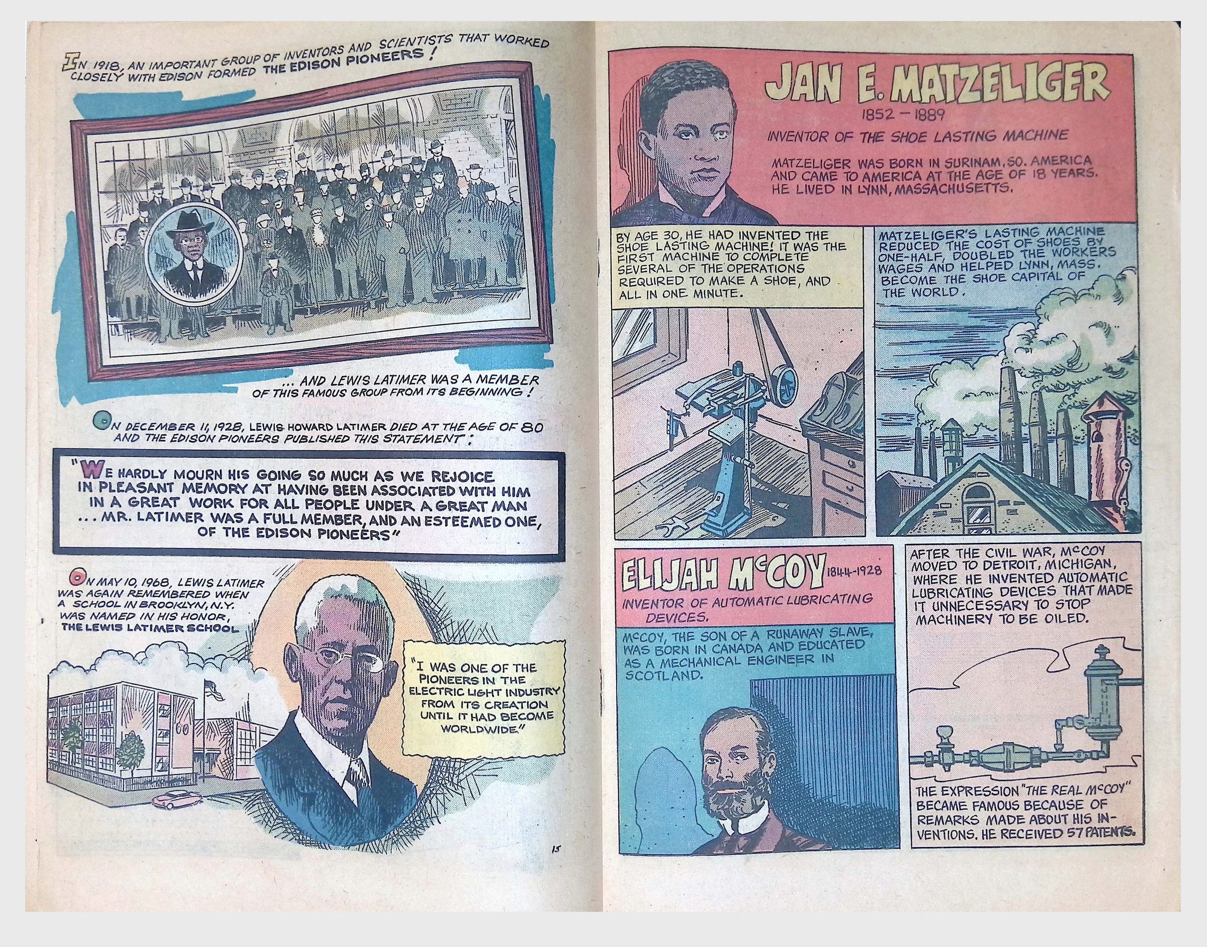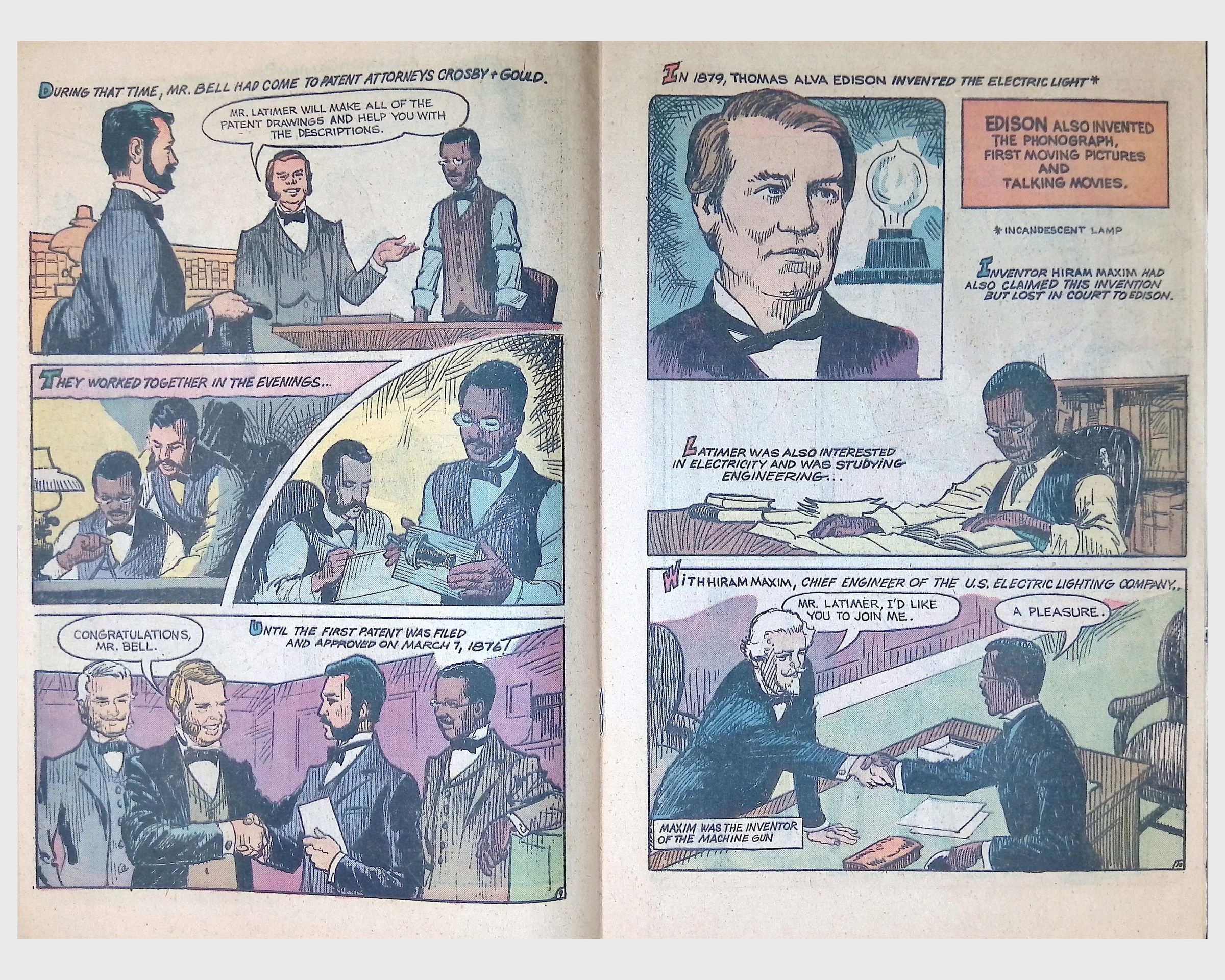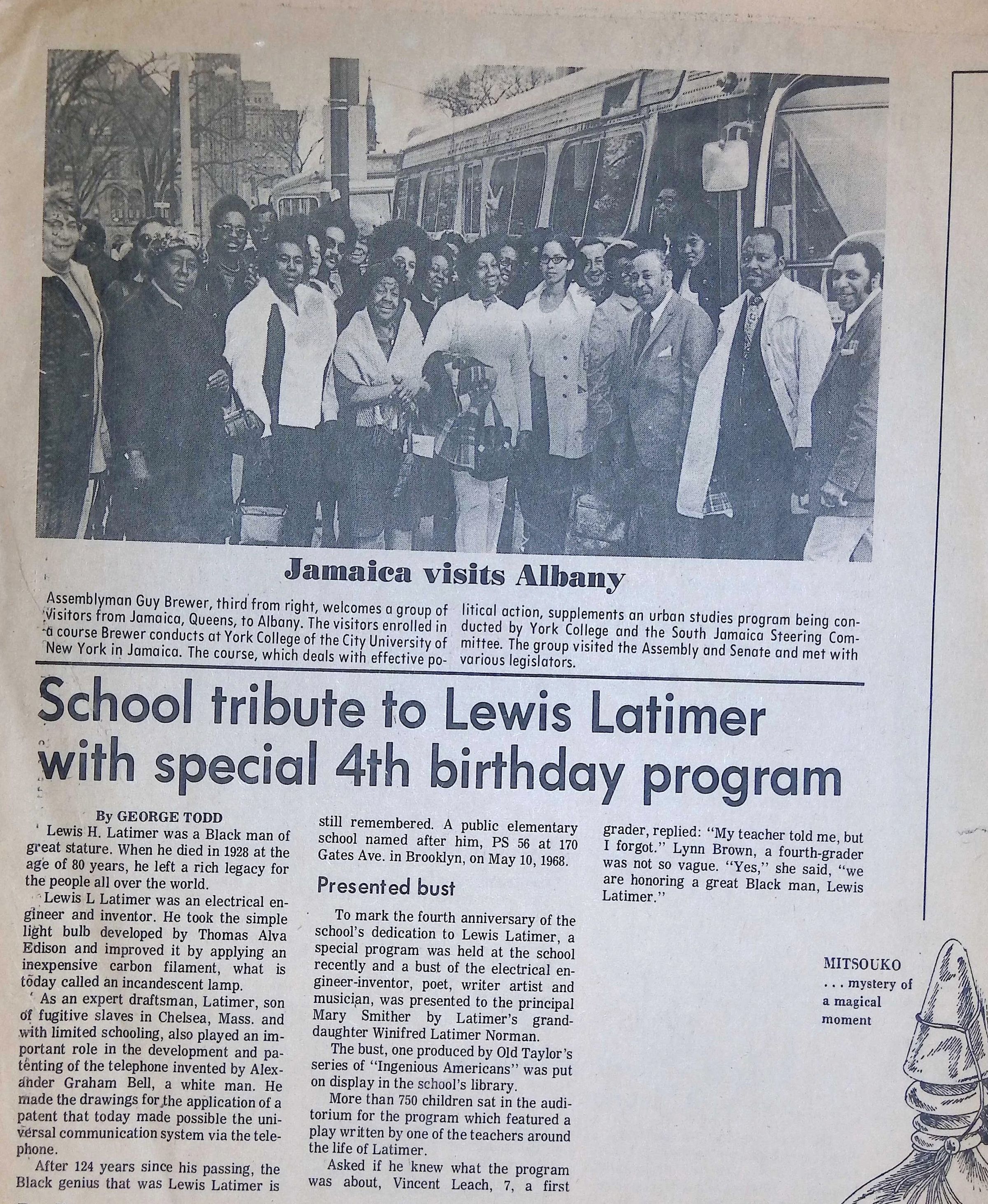 Newspaper clippings and magazine excerpts featuring Latimer’s biography and inventions.