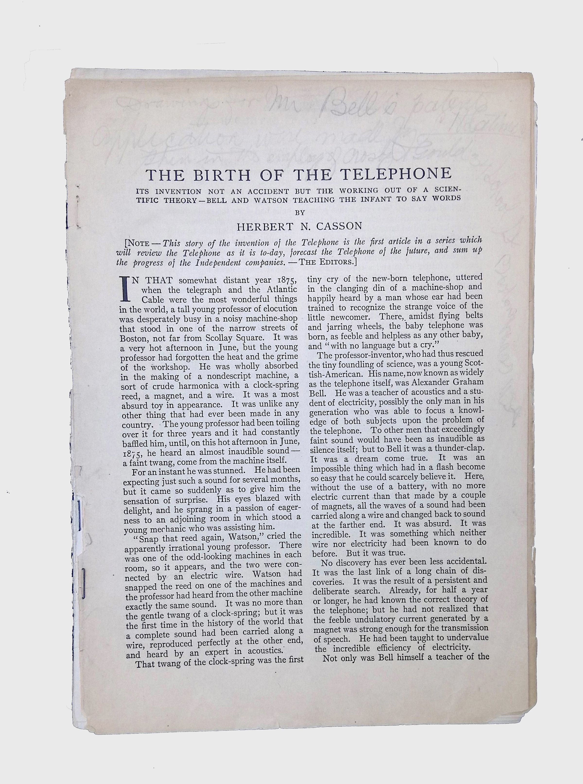 Printed Material, Herbert N. Casson, The Birth of the Telephone.Scope and Content