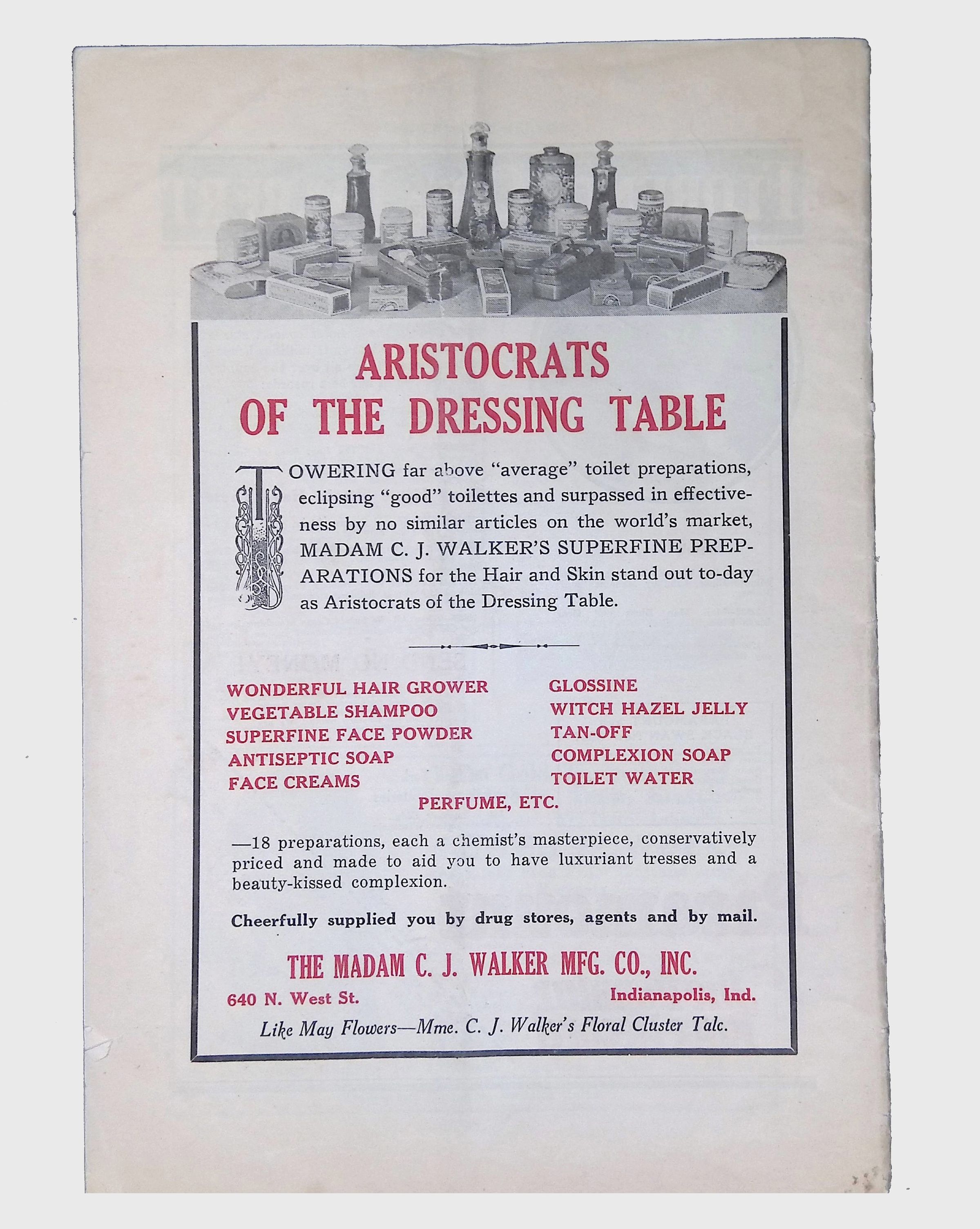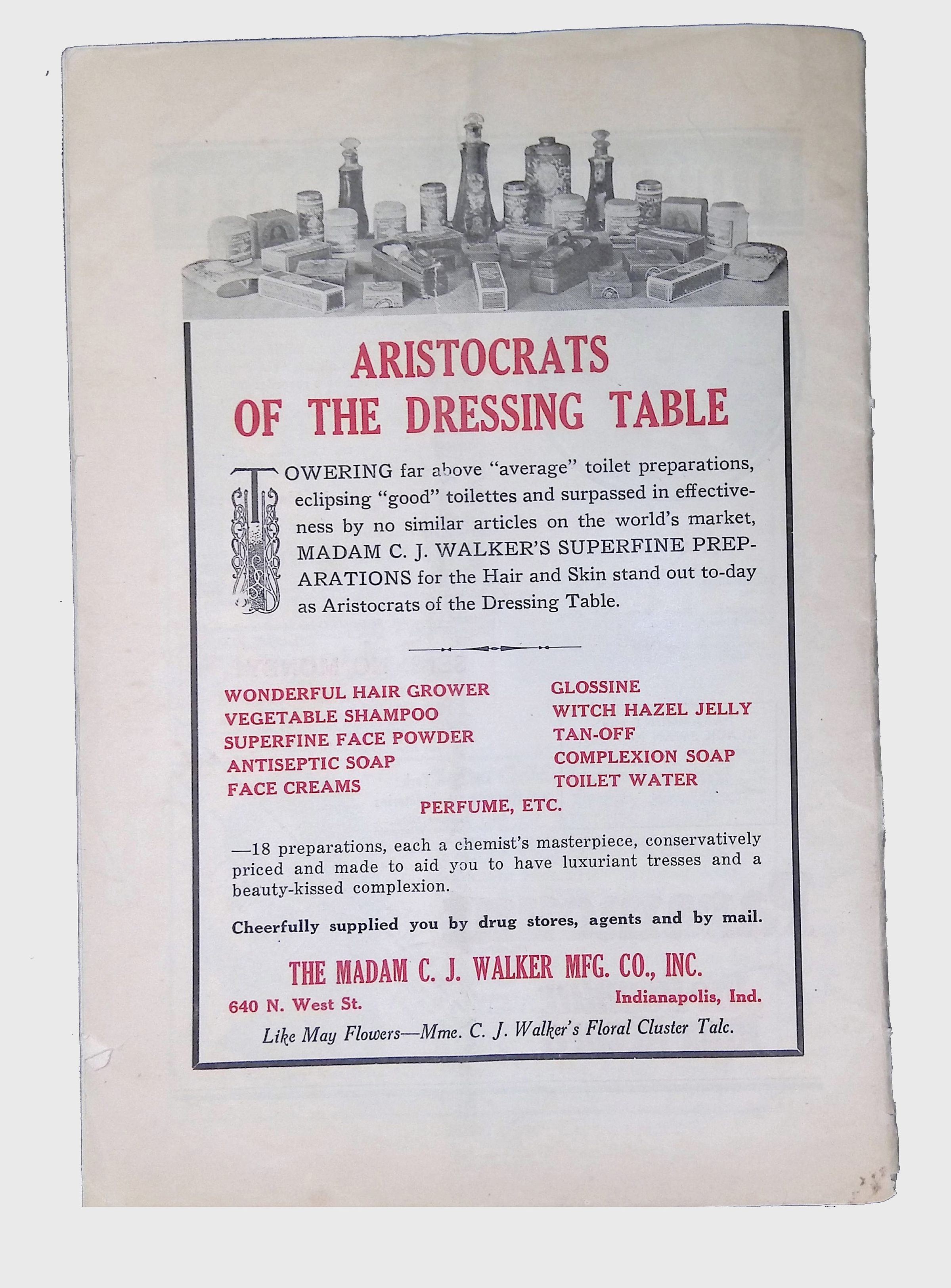 Advertisements featuring Black-owned businesses and products marketed toward African American consumers.
