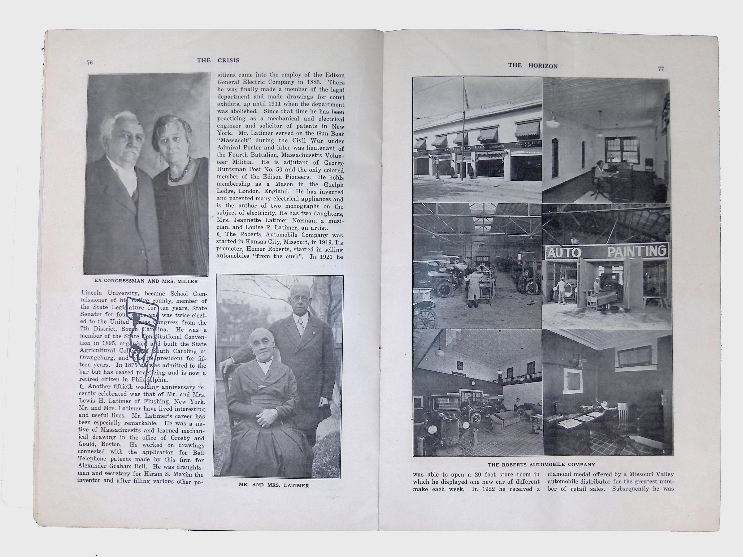 This issue of The Crisis (June 1924) includes on page 76 an article and photograph celebrating Lewis and Mary Latimer’s fiftieth wedding anniversary. The Latimers knew and at least occasionally socialized with civil rights leader W.E.B. DuBois, who edited The Crisis. Their daughter, artist Louise Latimer, sometimes provided artwork for the magazine, and worked with Du Bois on other cultural projects. This issue of The Crisis also includes poems by the Harlem Renaissance luminaries Langston Hughes and Claude McKay. The magazine provides an in-depth look at Black life, struggles, and accomplishments in the 1920s. The magazine served as a platform for discussing voting rights, racial violence, segregation, and social justice while celebrating Black art, culture, and success stories. It is an invaluable historical resource for understanding the civil rights movement's early foundations.Context