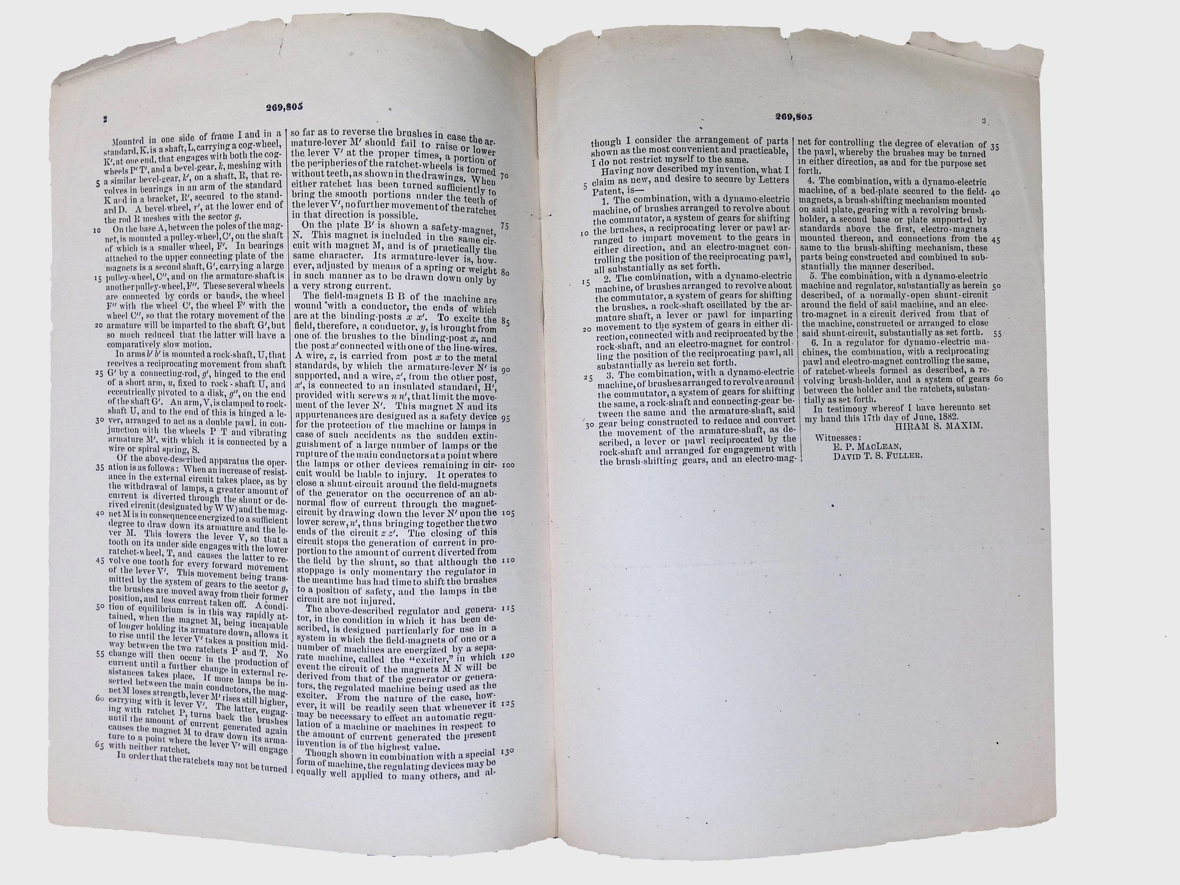 U.S. Patent No. 269,805 - Regulator for Dynamo-Electric MachinesLocation