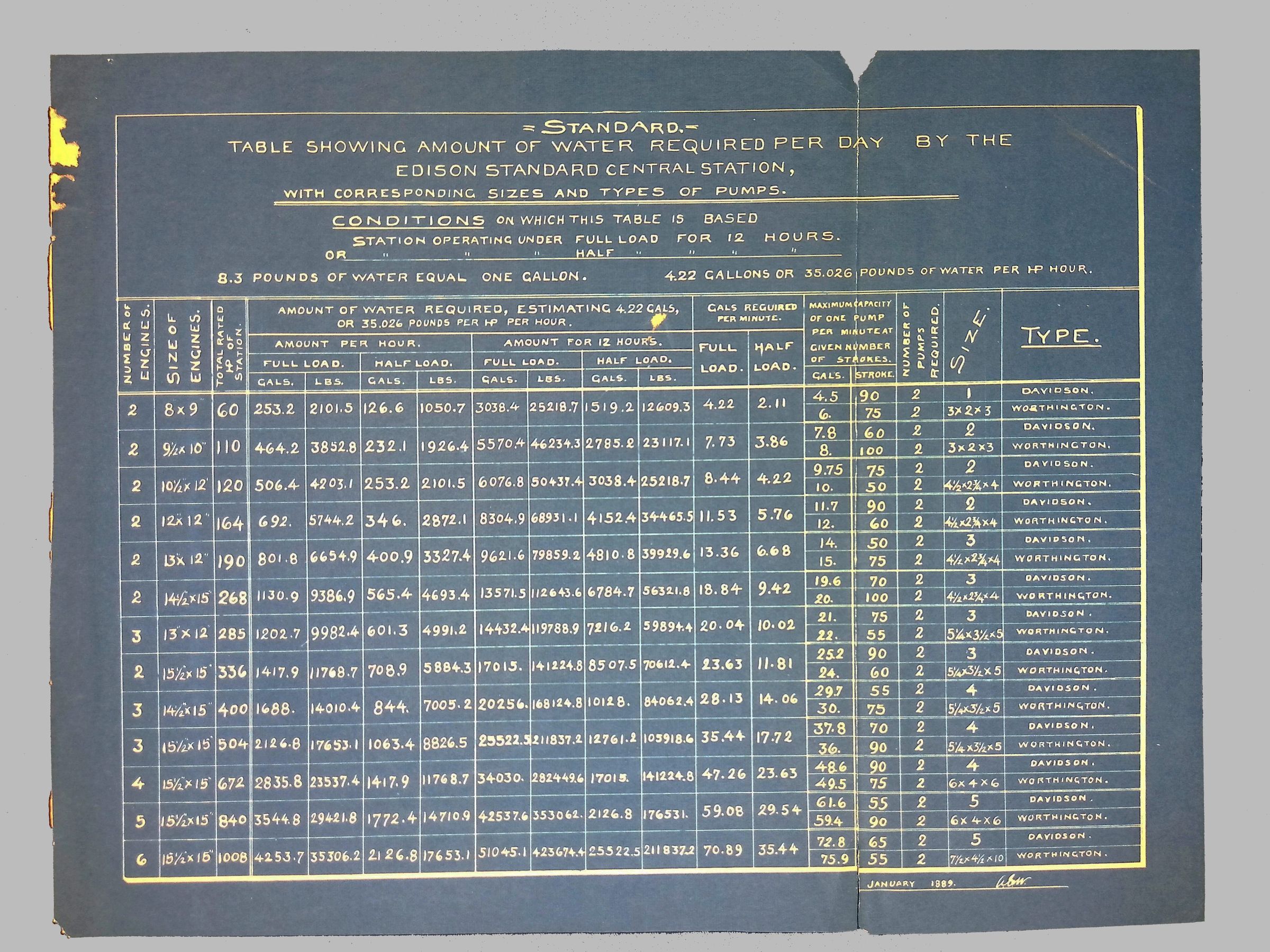 Standard Table of Water Required Per Day by the Edison Standard Central StationScope and Content