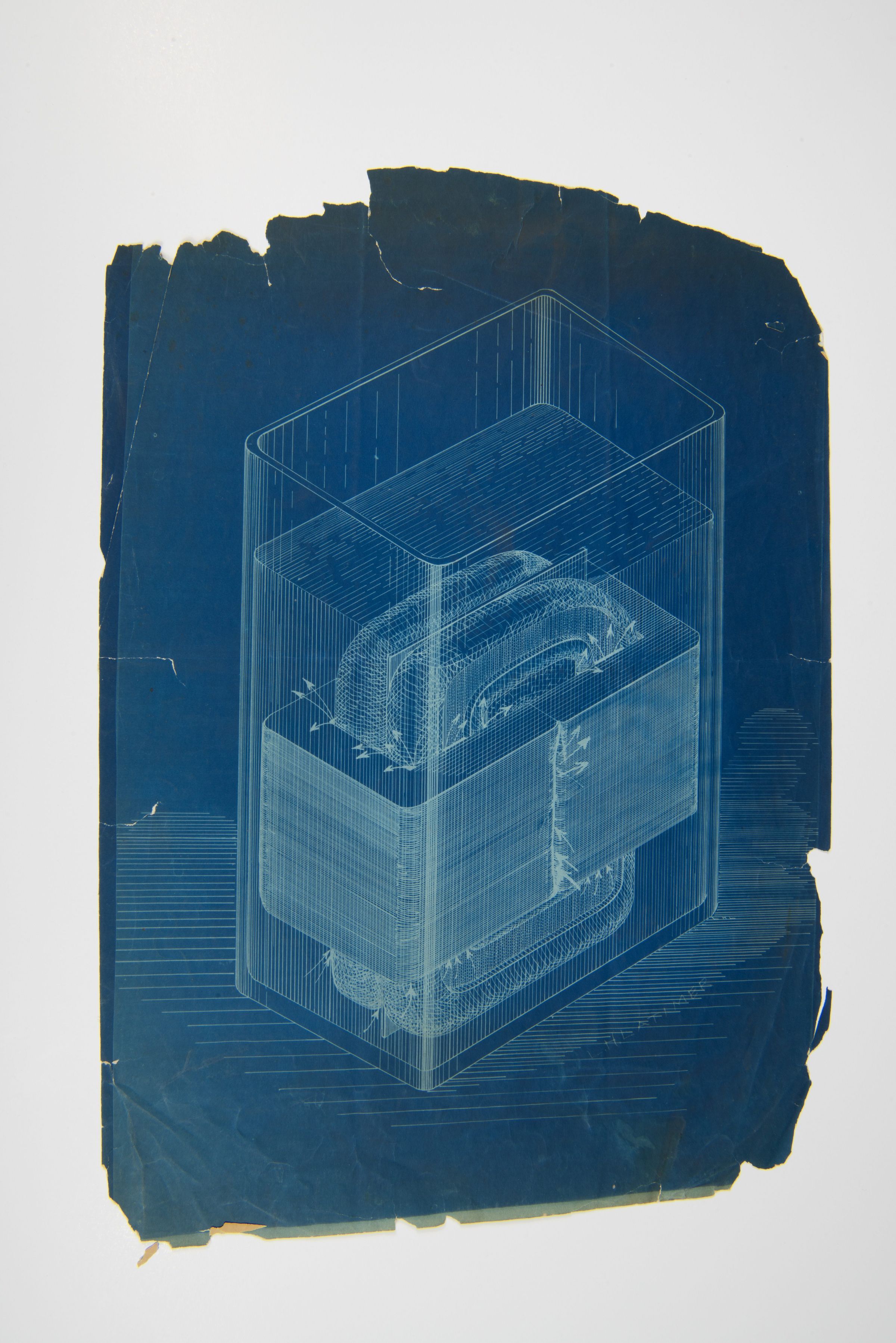 Blueprints like these were essential for patent applications, manufacturing processes, and engineering designs. Their precise line work ensured accurate fabrication of electrical components, and the use of cyanotype printing allowed for efficient reproduction and archival purposes.Collection