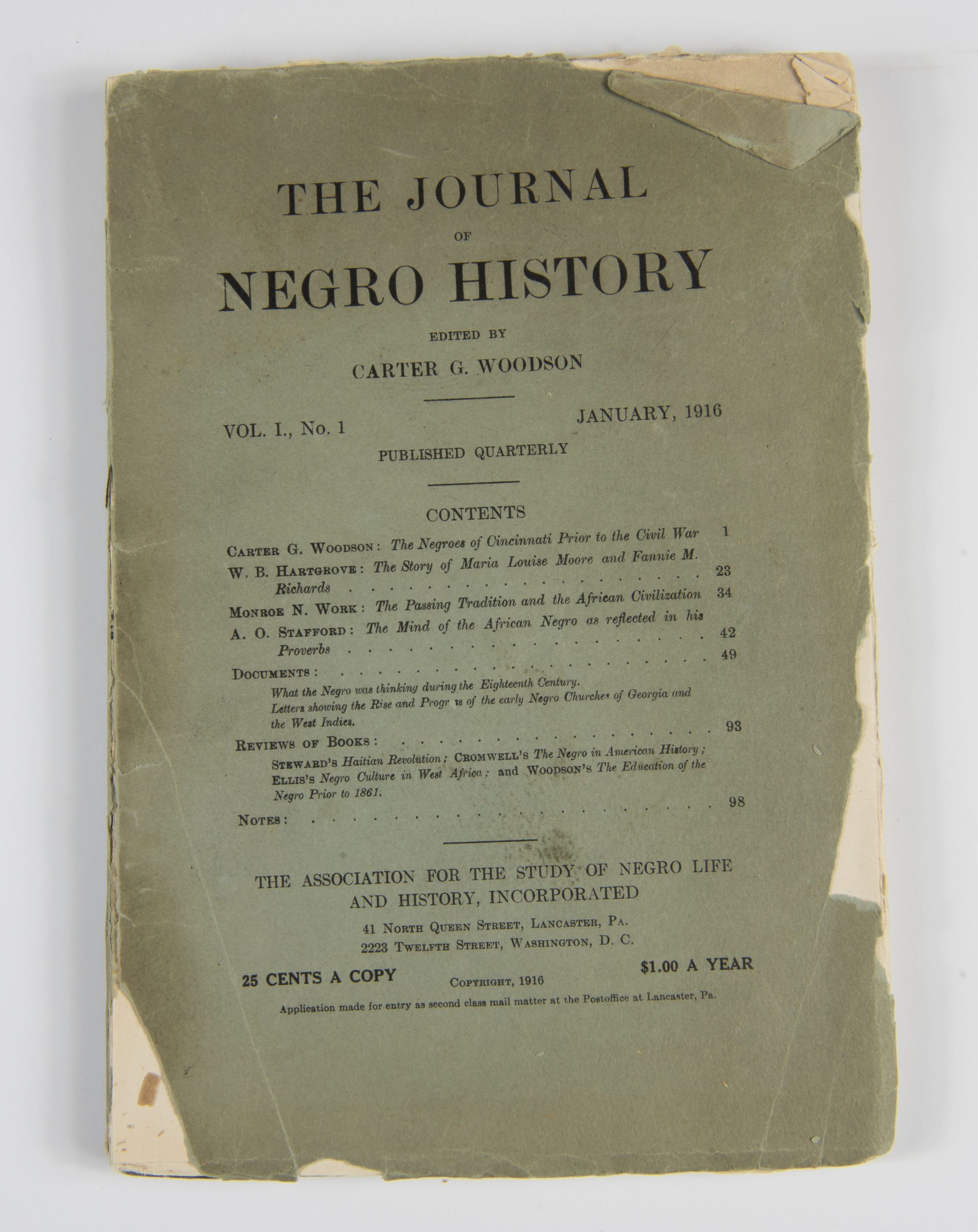 Keywords: Journal of Negro History, Carter G. Woodson, African American history, Black studies, January 1916, historical publications, African civilization, Negro historyContext