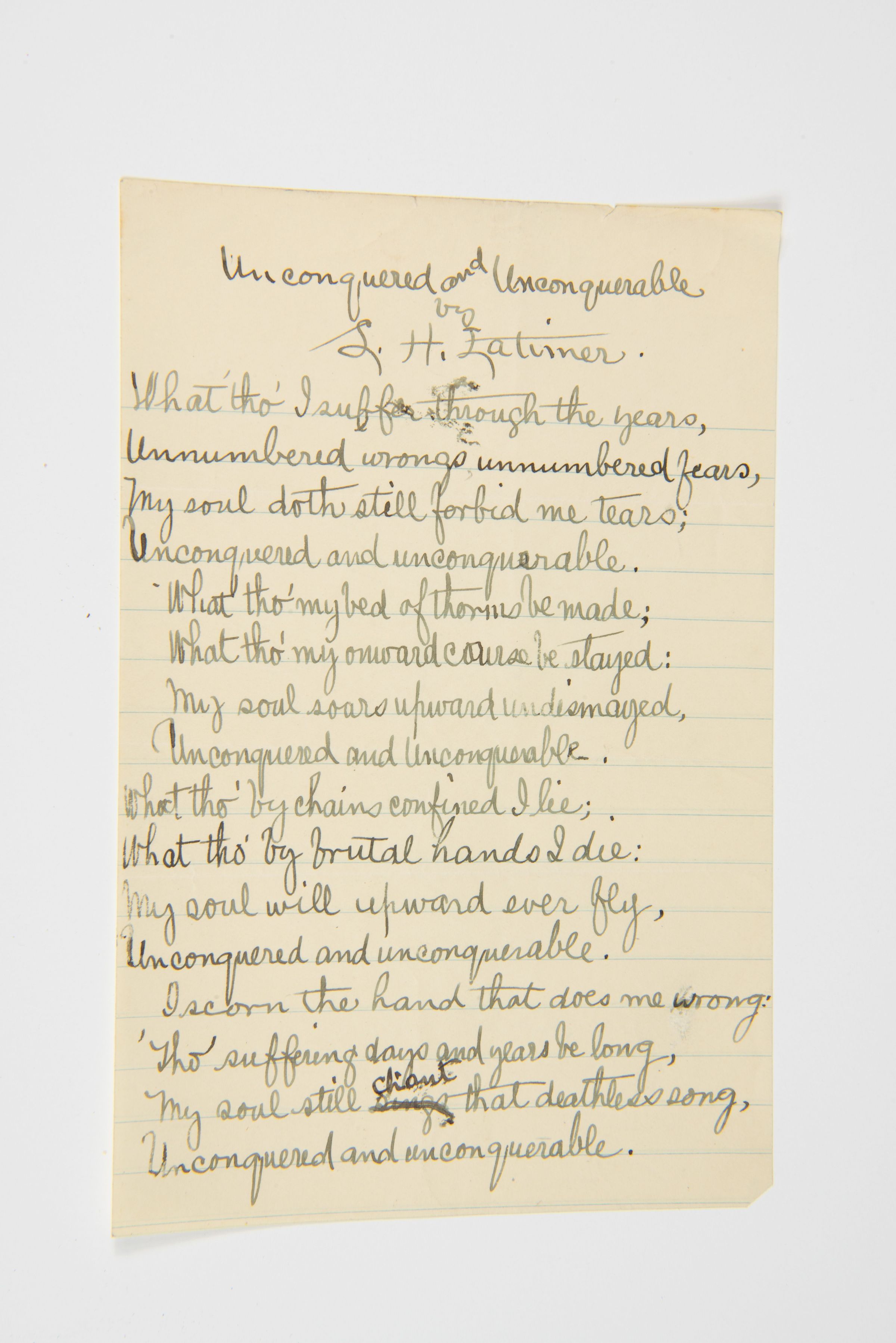 "Unconquered and Unconquerable" Poem by Lewis H. LatimerDescription