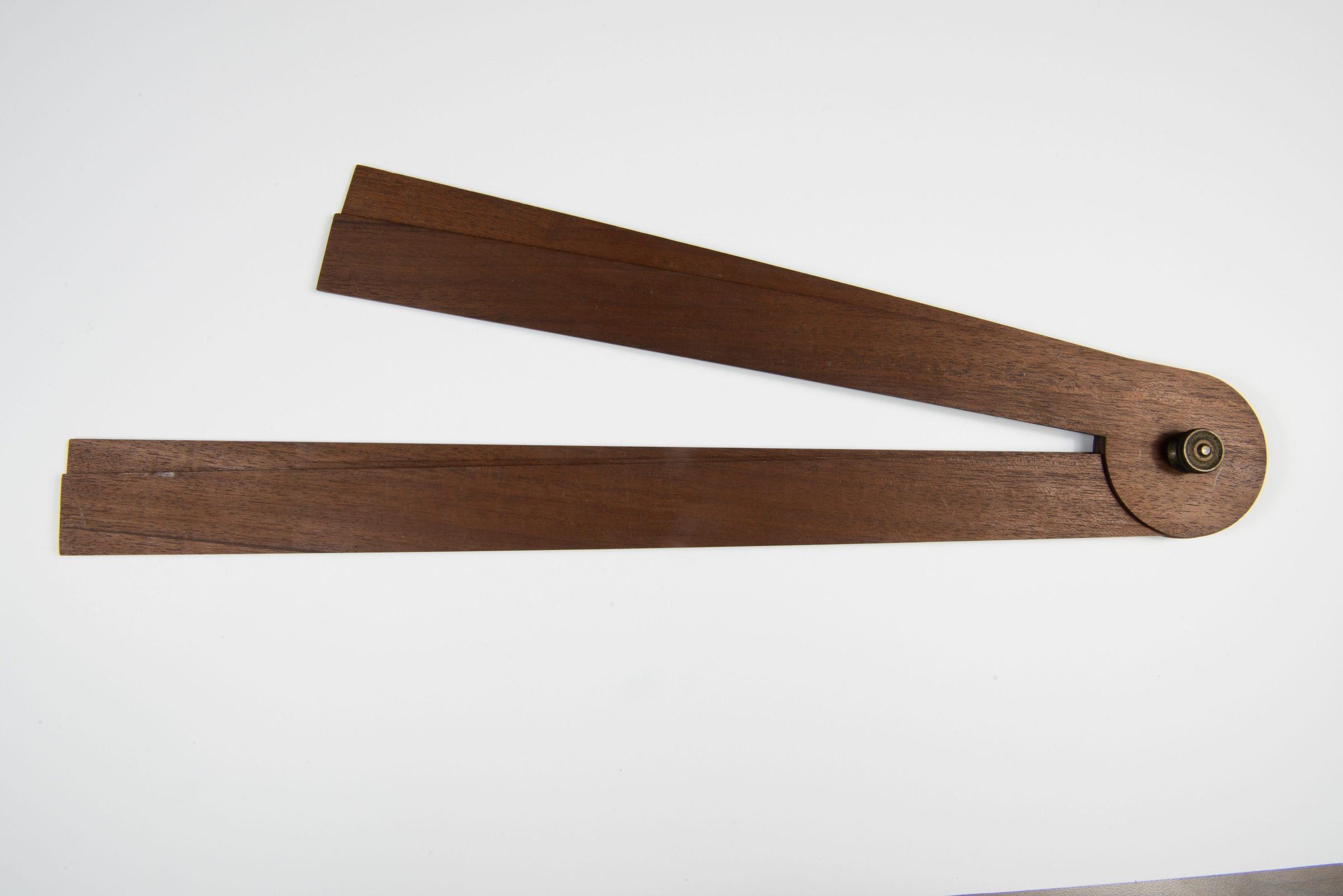 This is a wooden drafting or measuring tool with a pivot joint, allowing it to be adjusted to different angles. It is made of polished wood with a brass fastener at the joint. The tool appears to be either a folding T-square, bevel gauge, or an adjustable angle ruler, often used by architects, engineers, and draftsmen for precise measurements and angles.Context