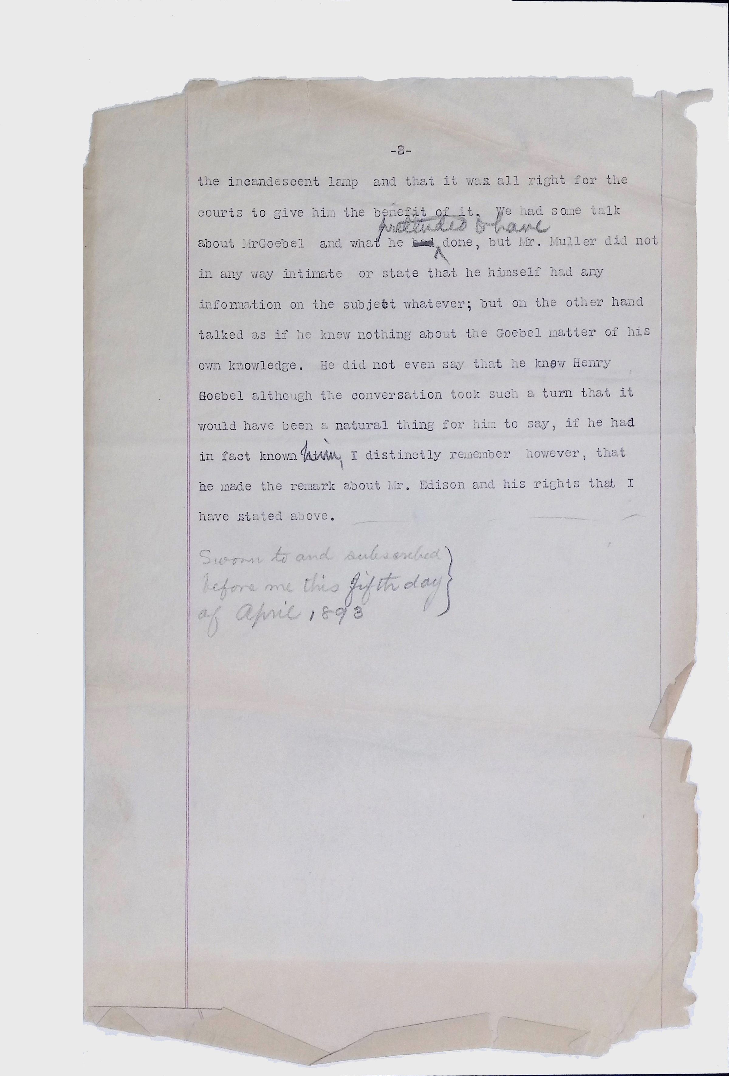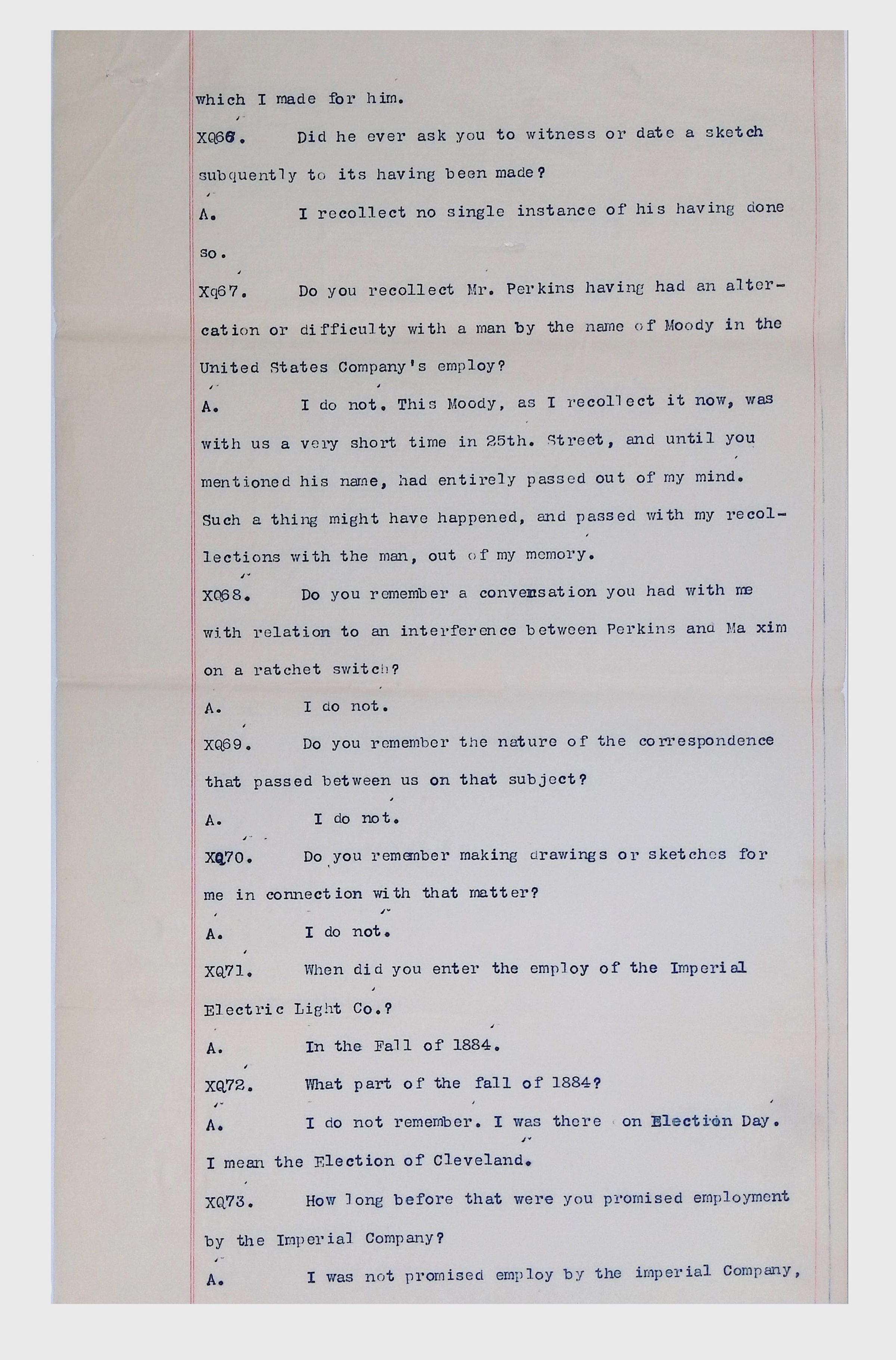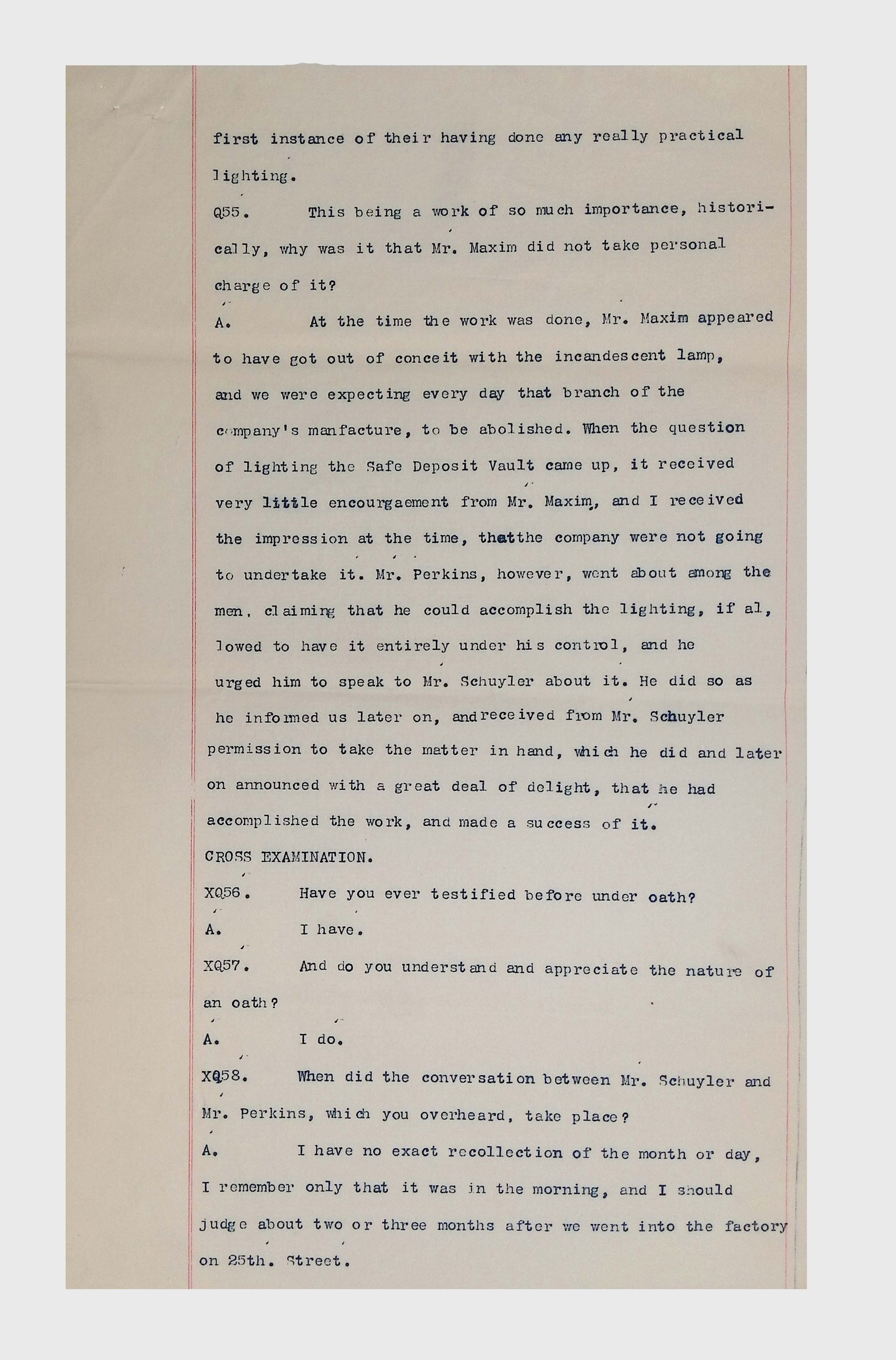 This collection consists of typed and handwritten pages, likely transcripts, depositions, or technical records related to Lewis Latimer’s work in engineering and patent law. These documents may pertain to legal cases, technical patents, or professional correspondence involving Latimer's contributions to electrical engineering and innovation. Specifically, they illustrate Latimer’s professional work as an expert witness in patent lawsuits, and the challenges facing inventors (particularly an African American and at the time relatively unknown inventor such as Latimer) in trying to persuade businesspeople to put inventions into production.Collection