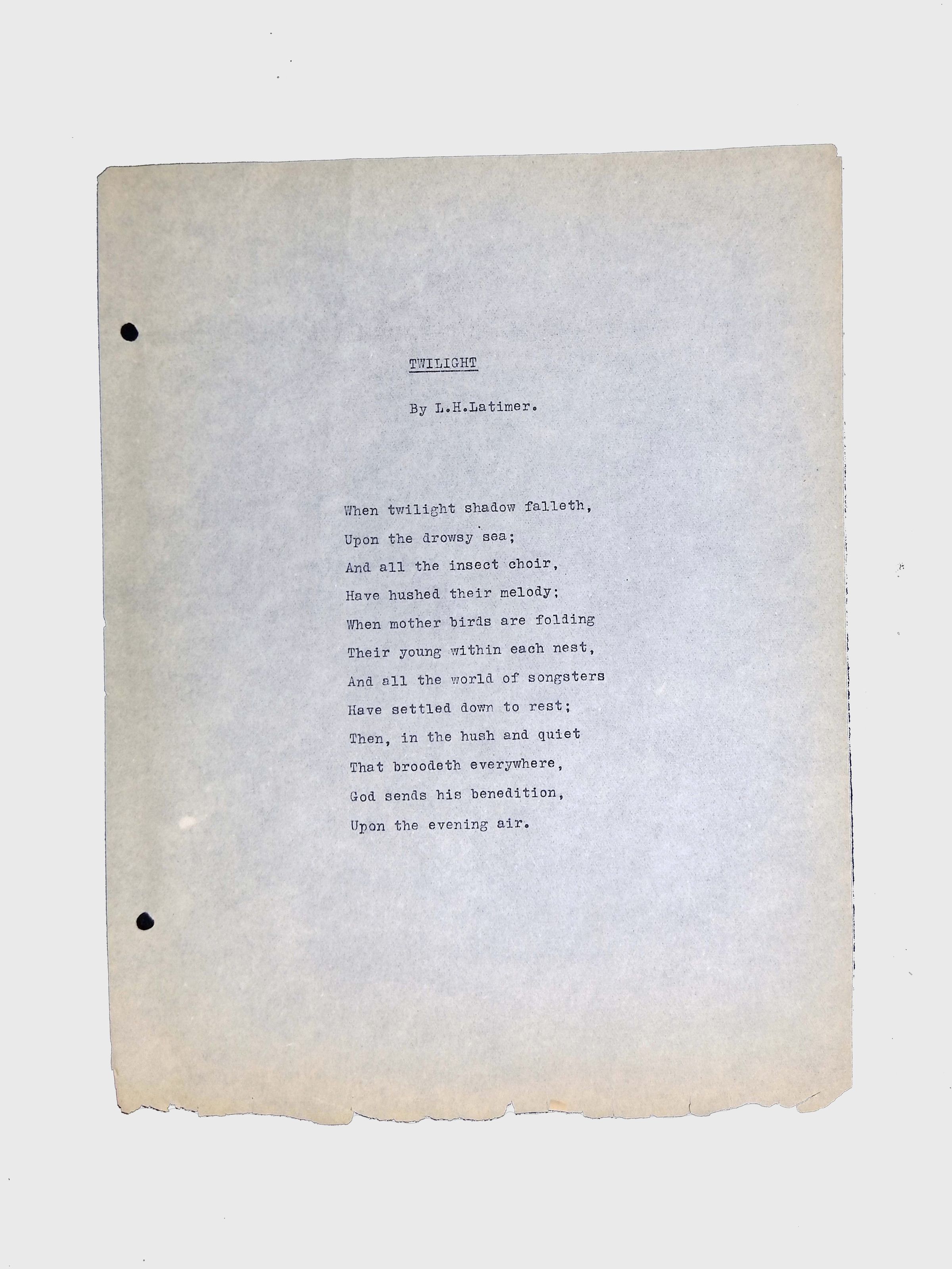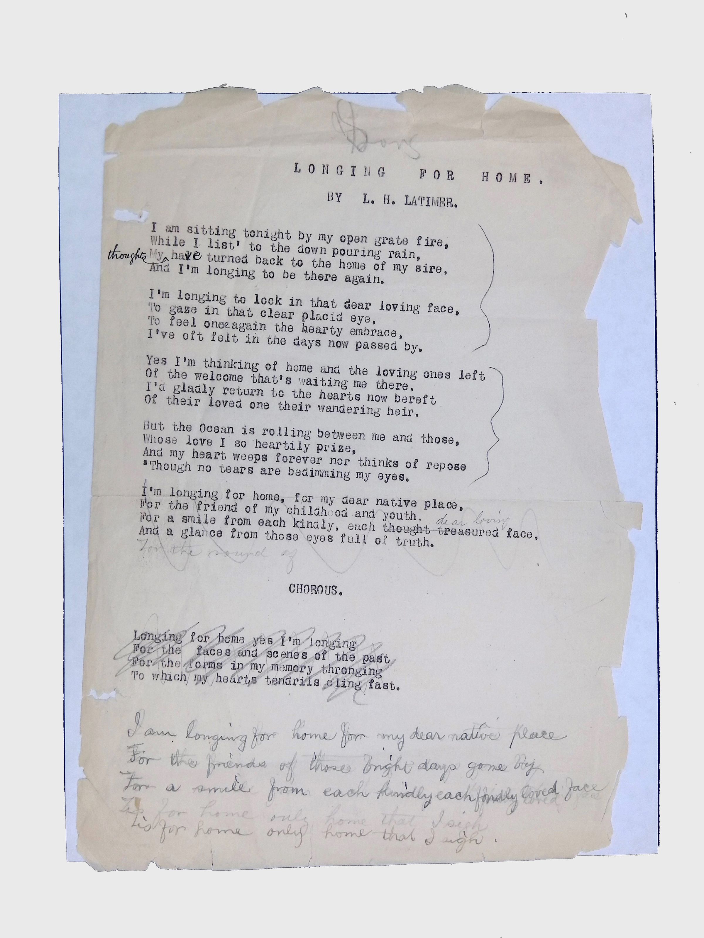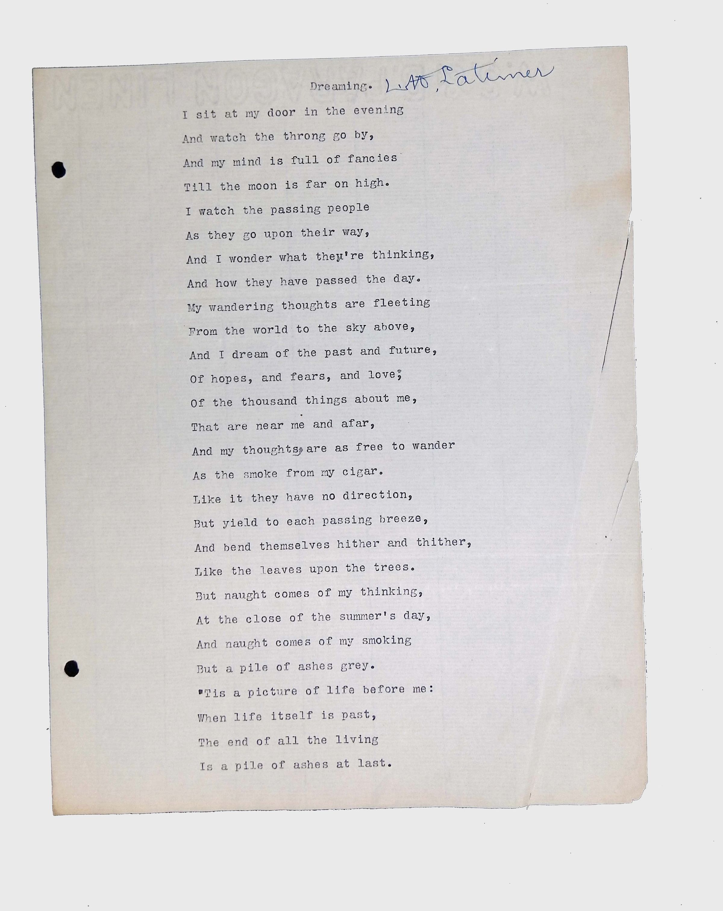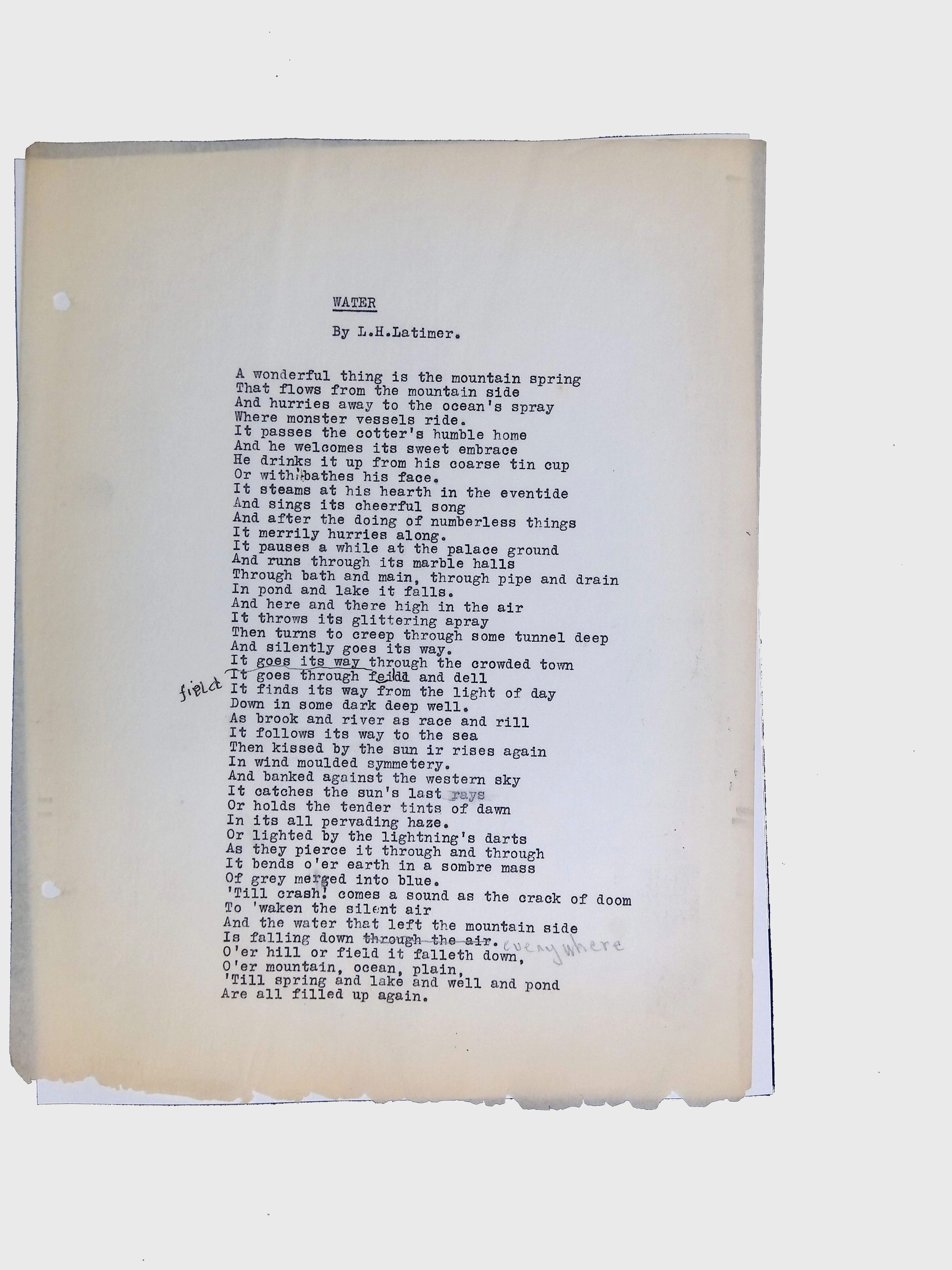 Handwritten and typed manuscripts of Latimer’s poetry.