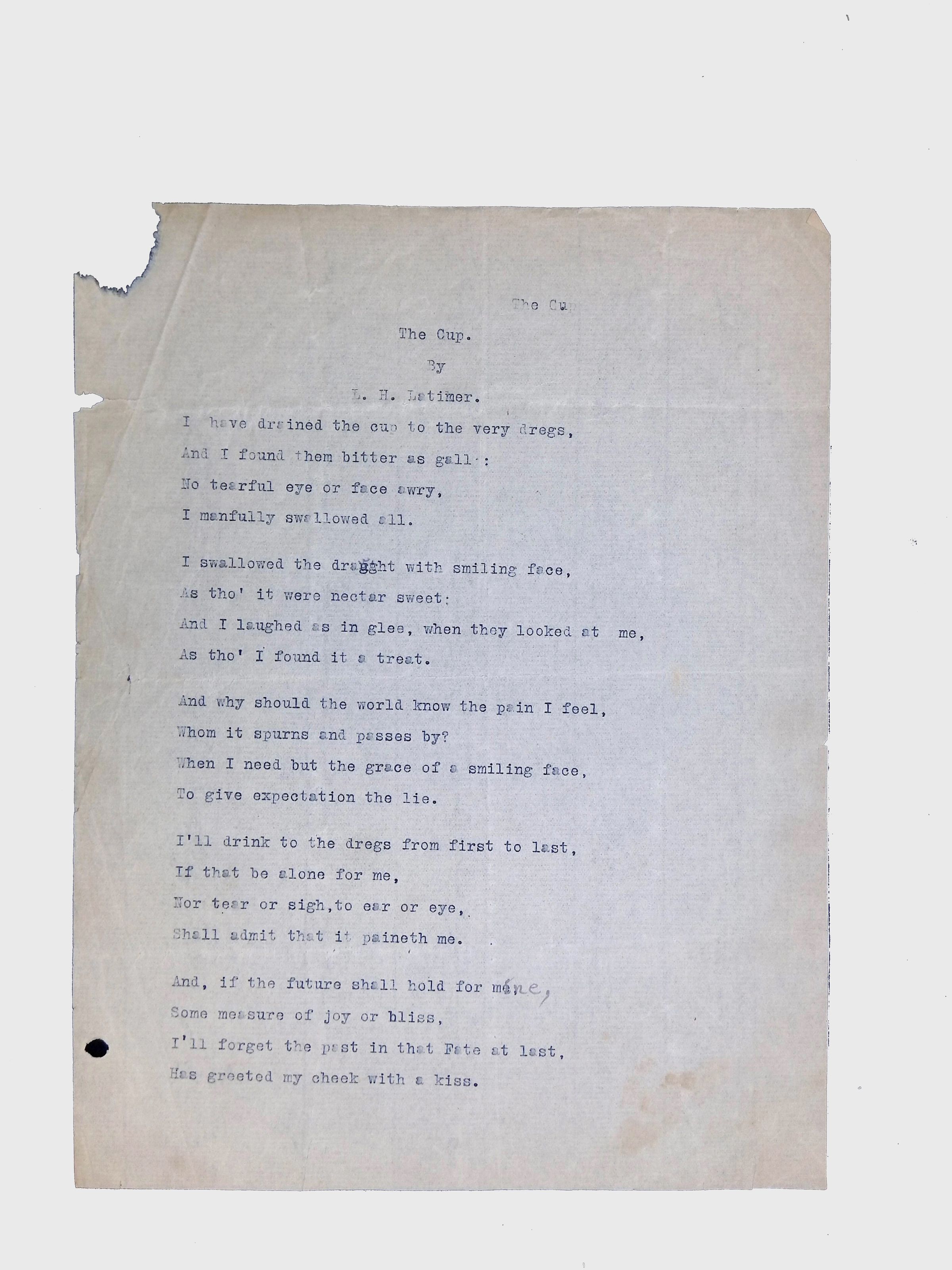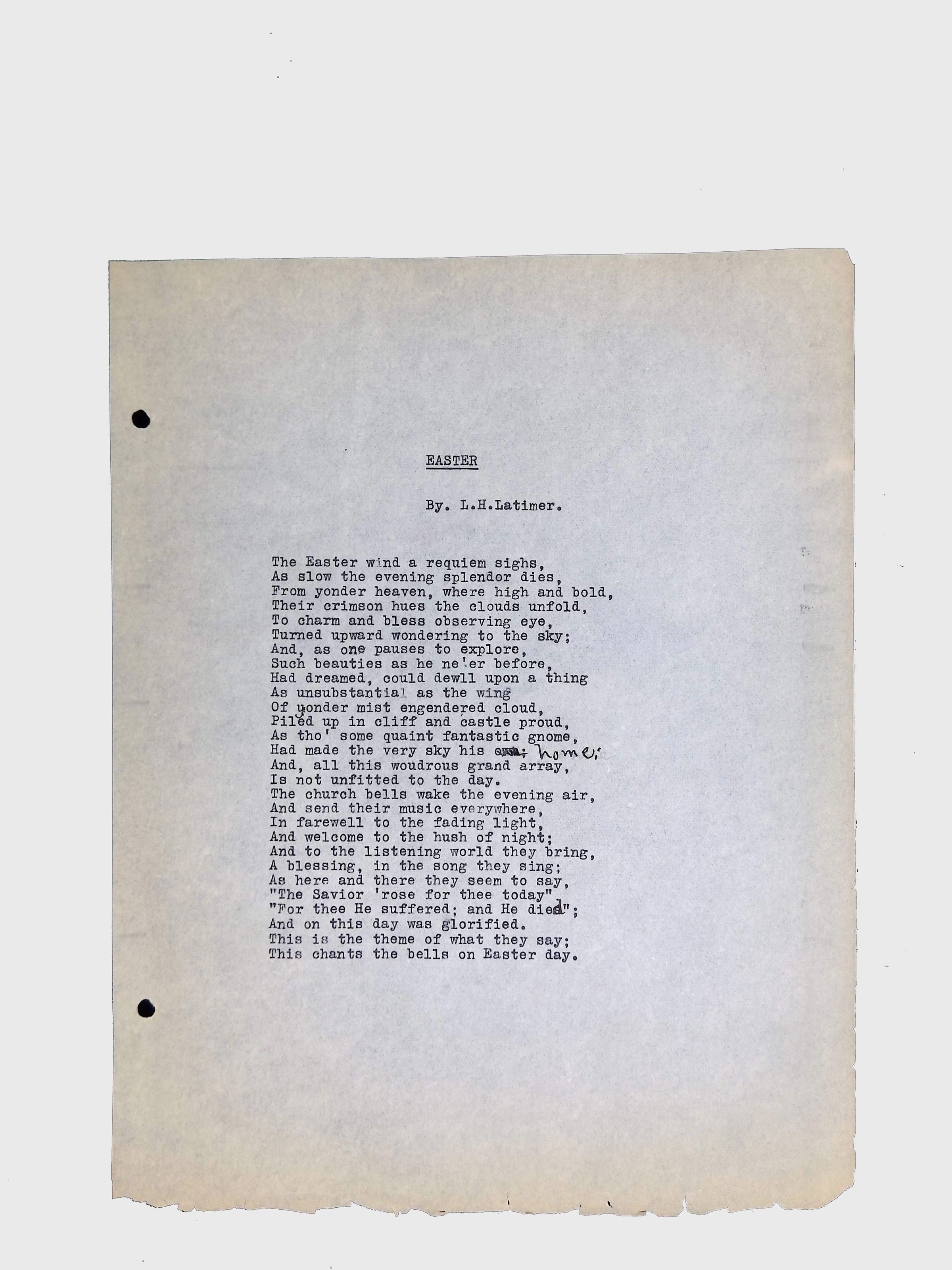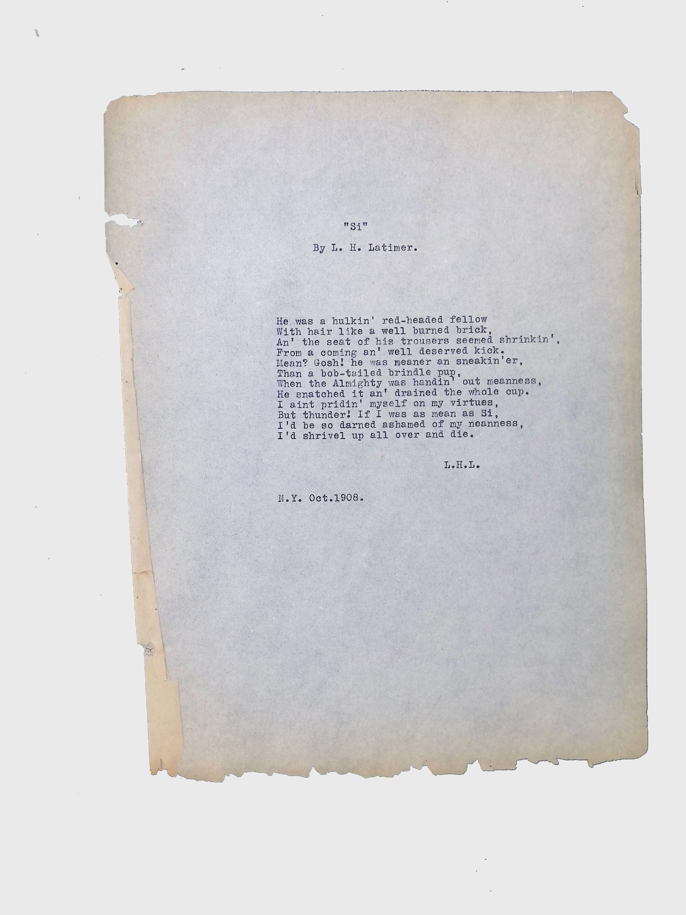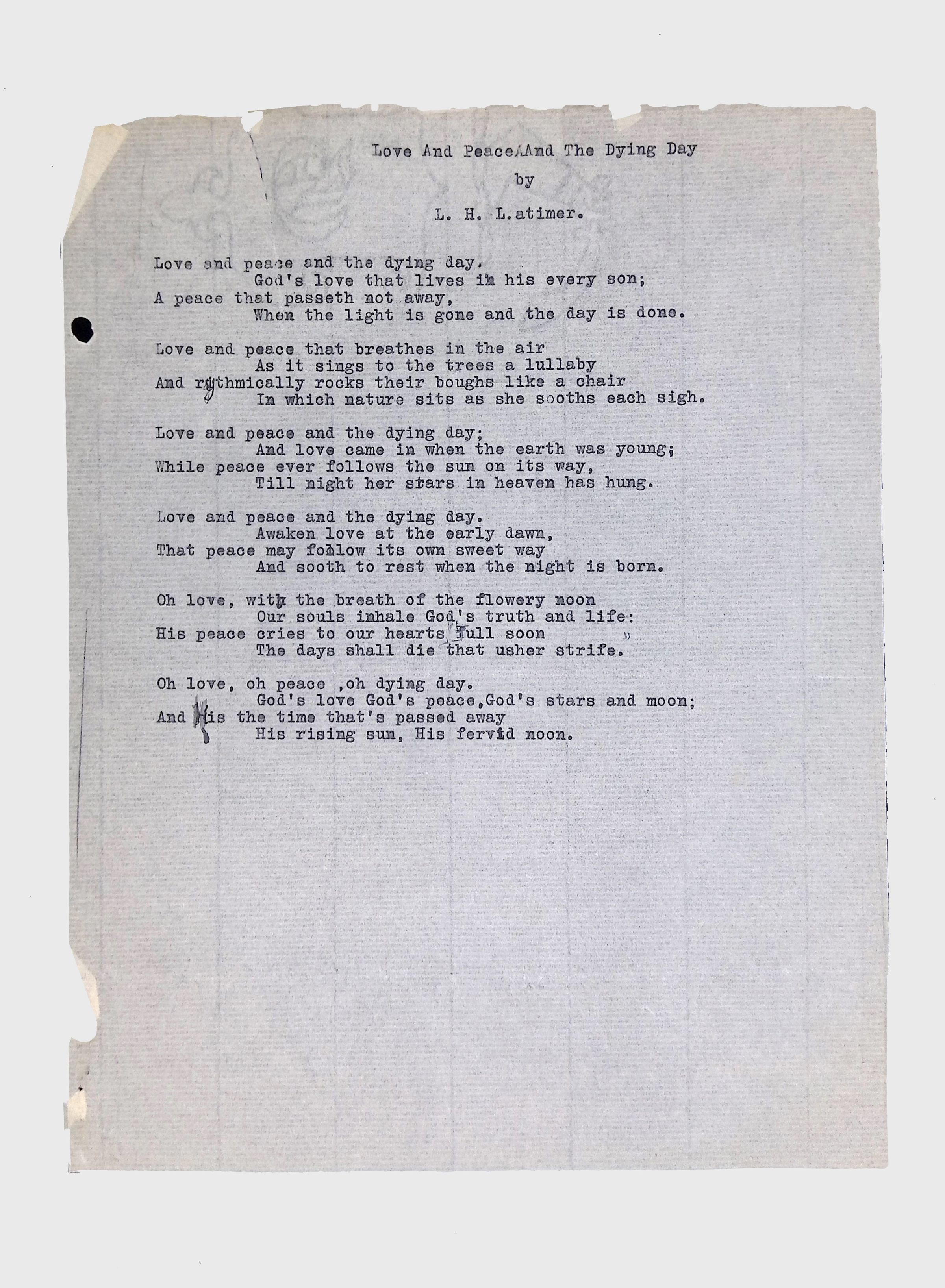 Handwritten and typed manuscripts of Latimer’s poetry.
