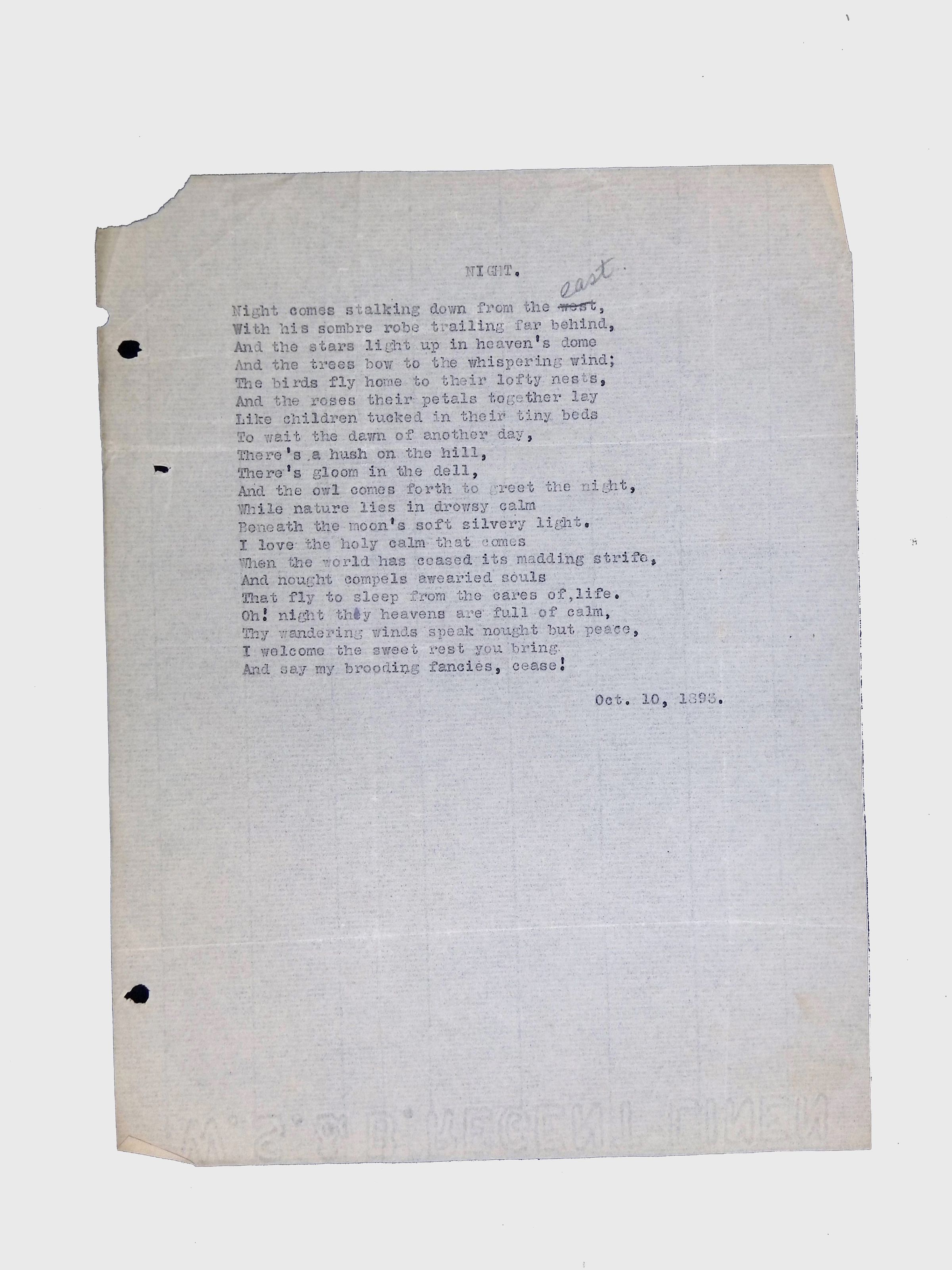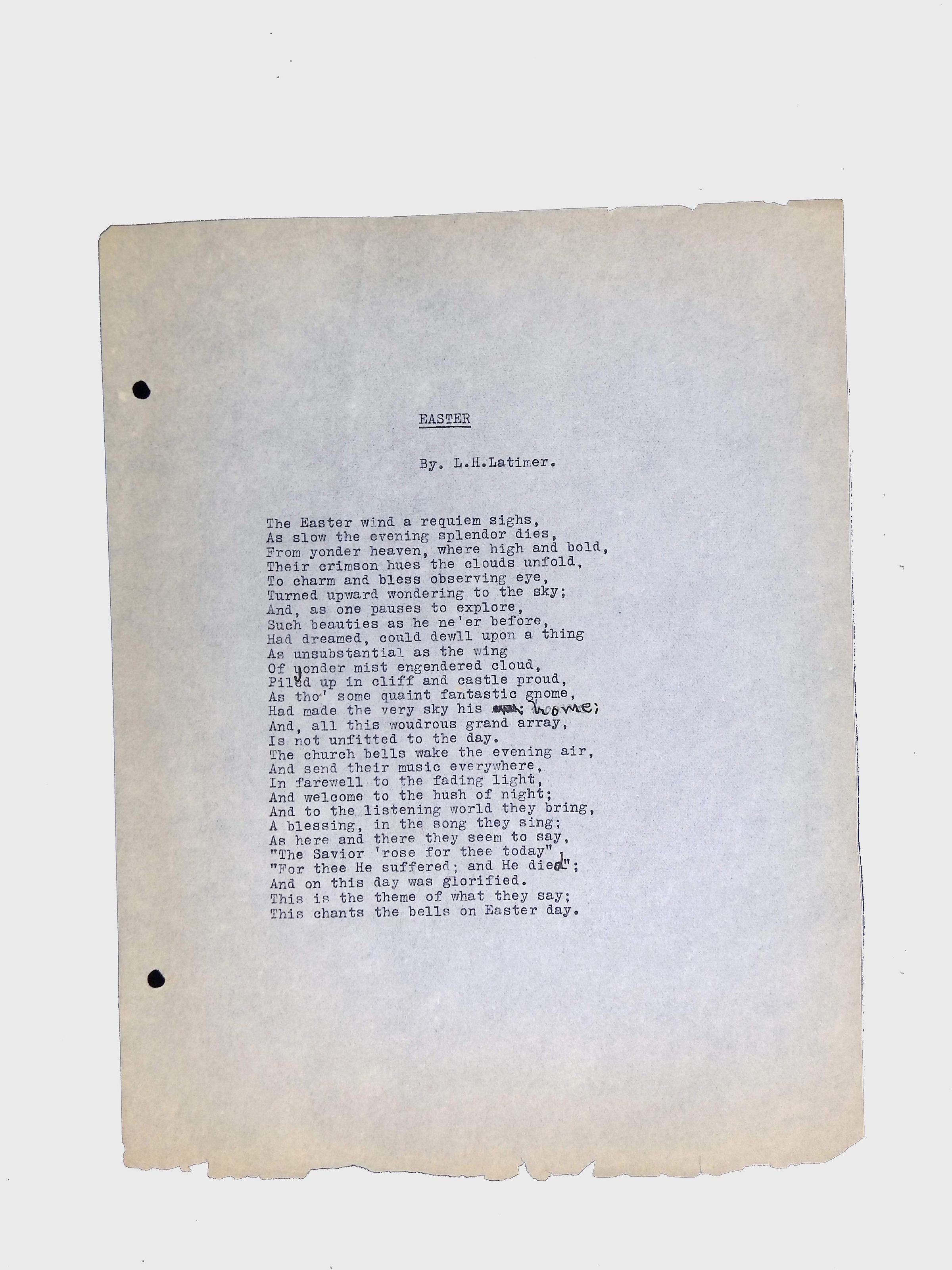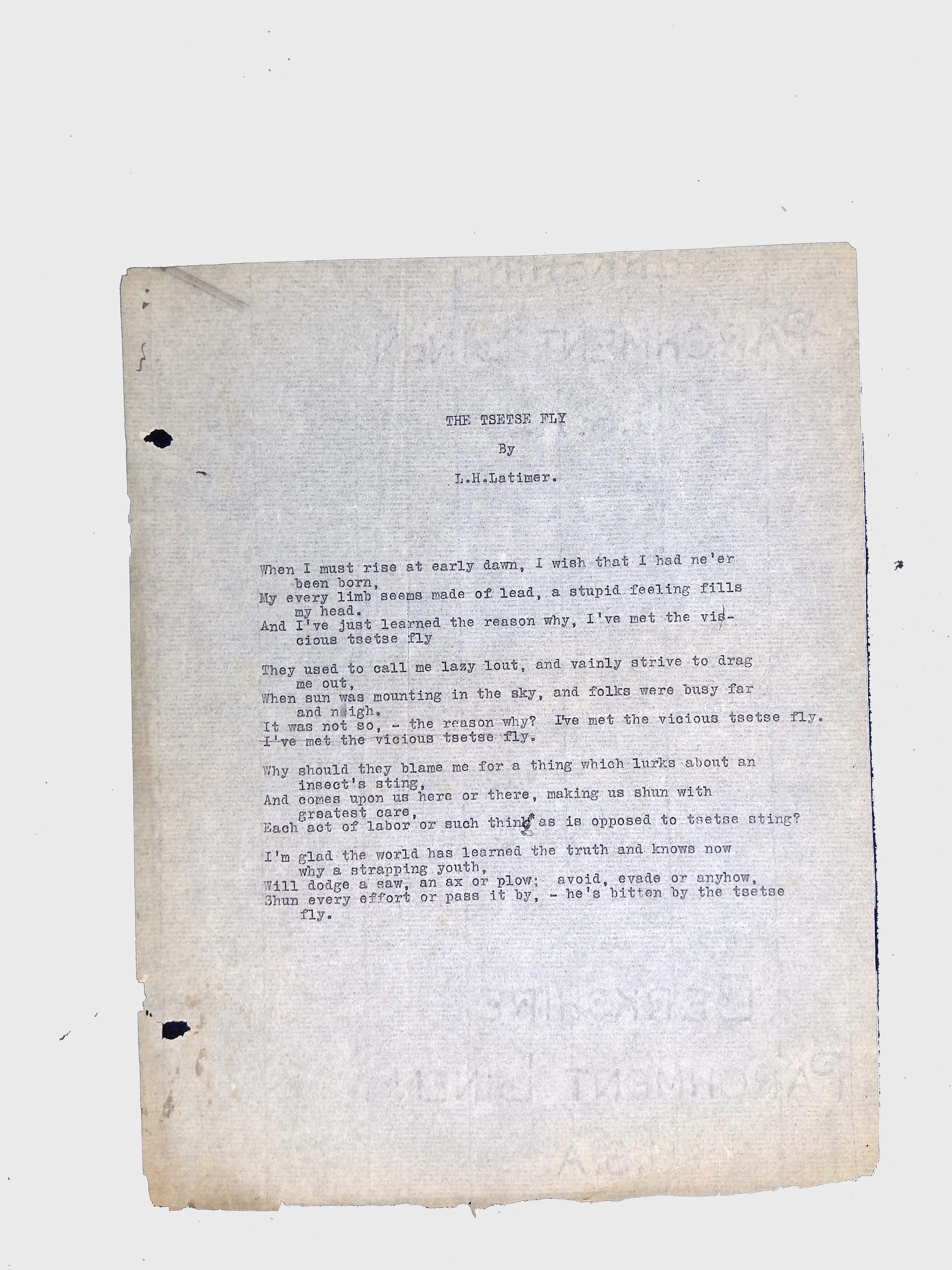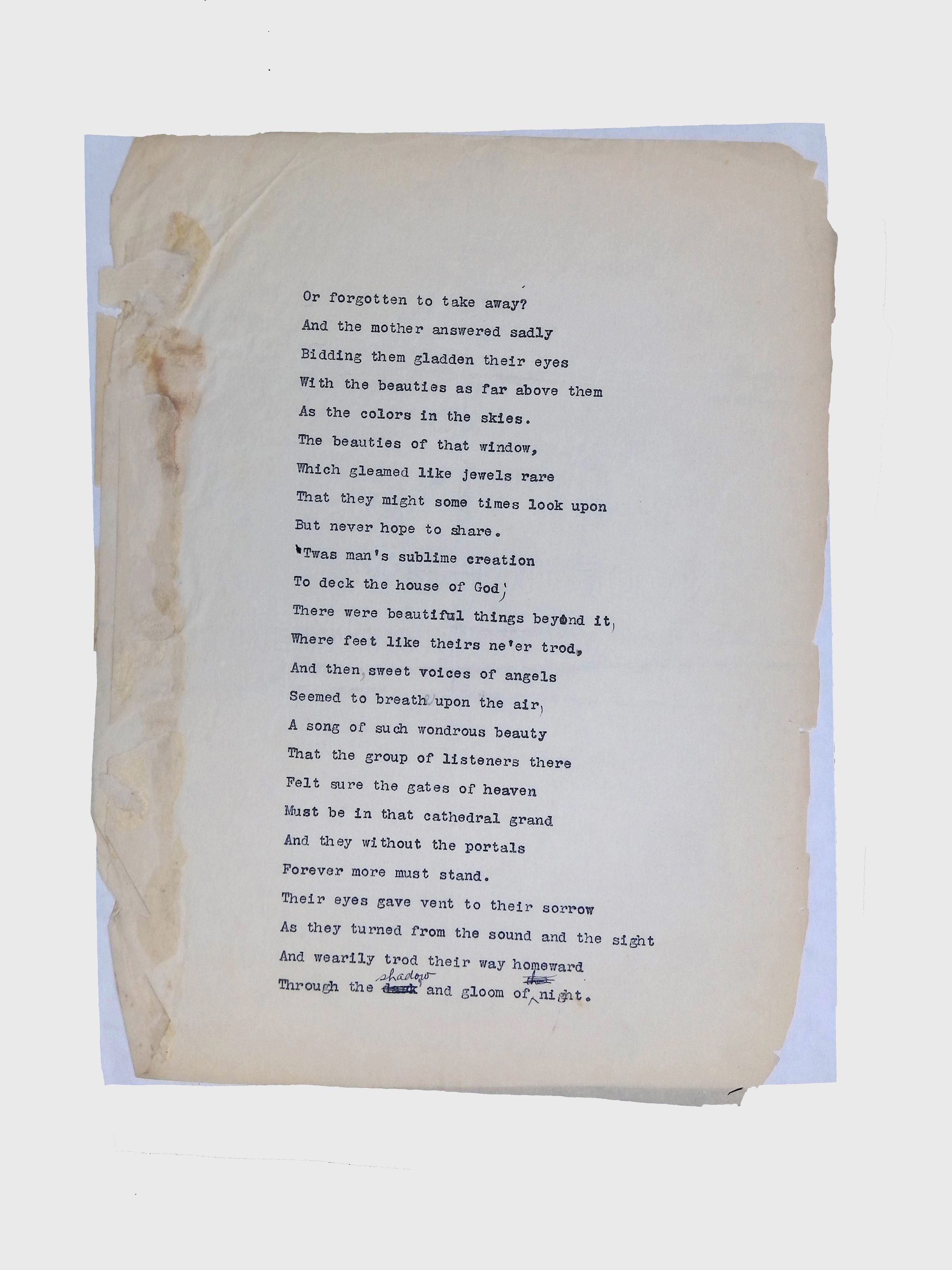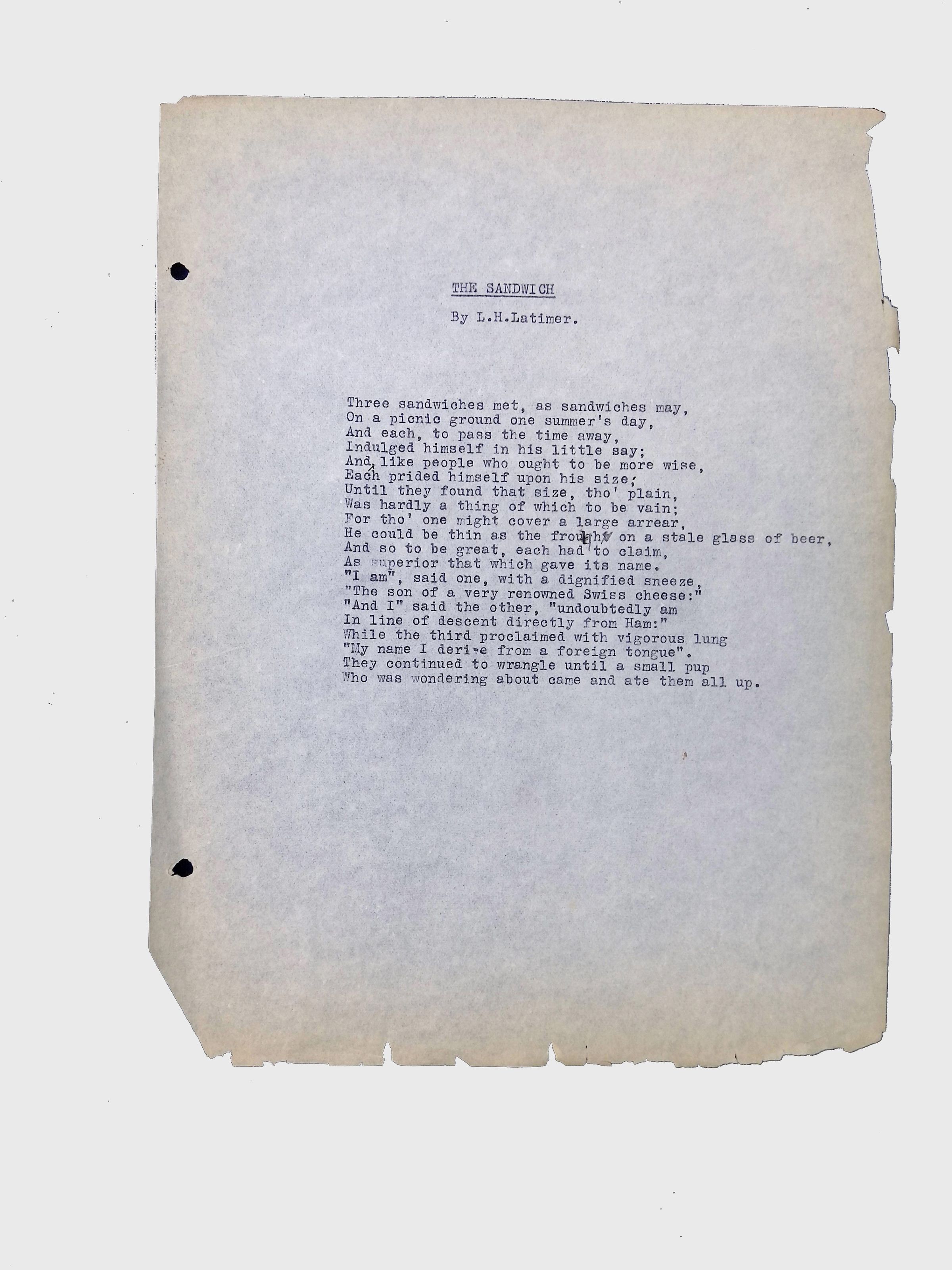 Handwritten and typed manuscripts of Latimer’s poetry.