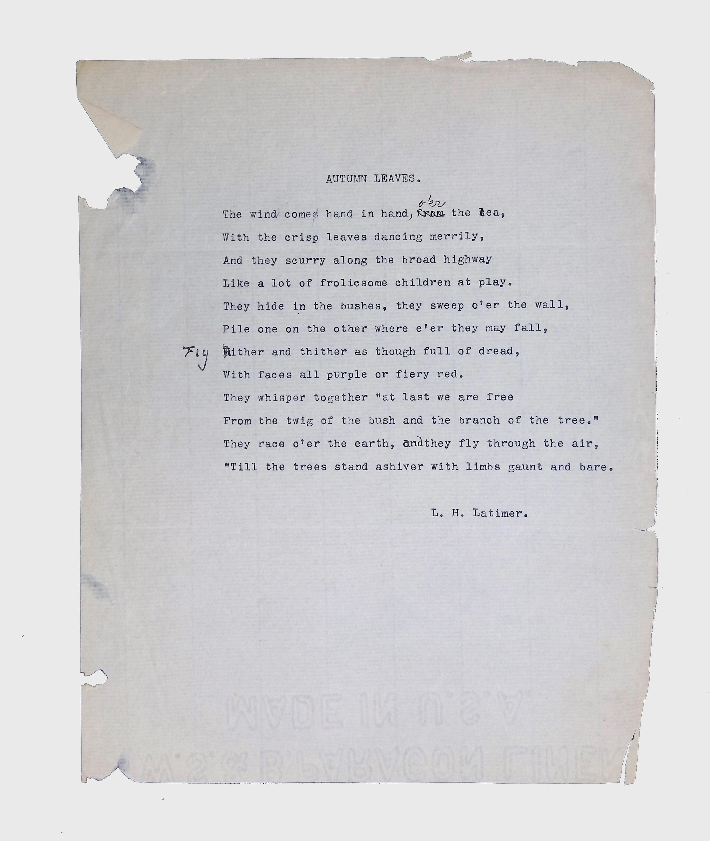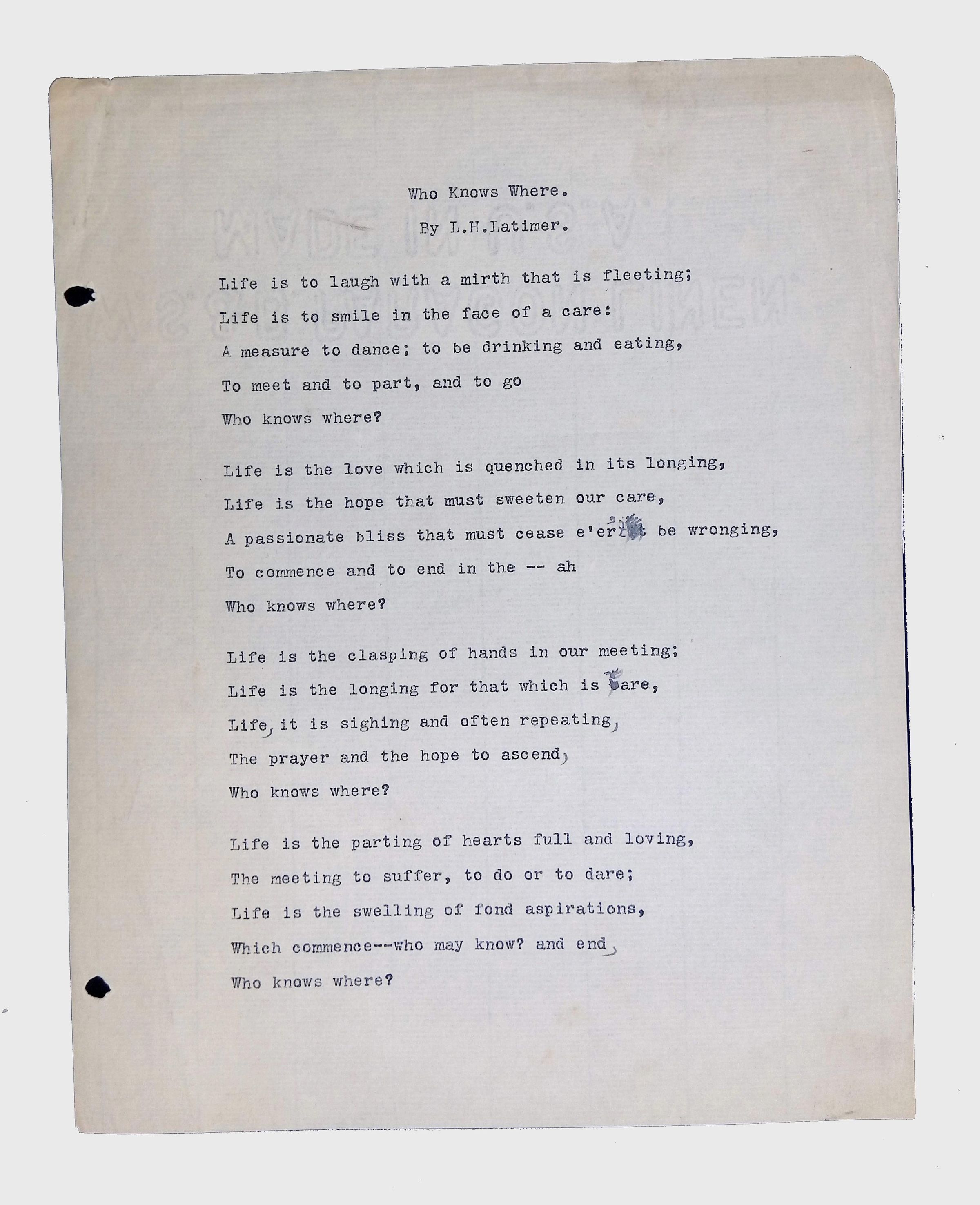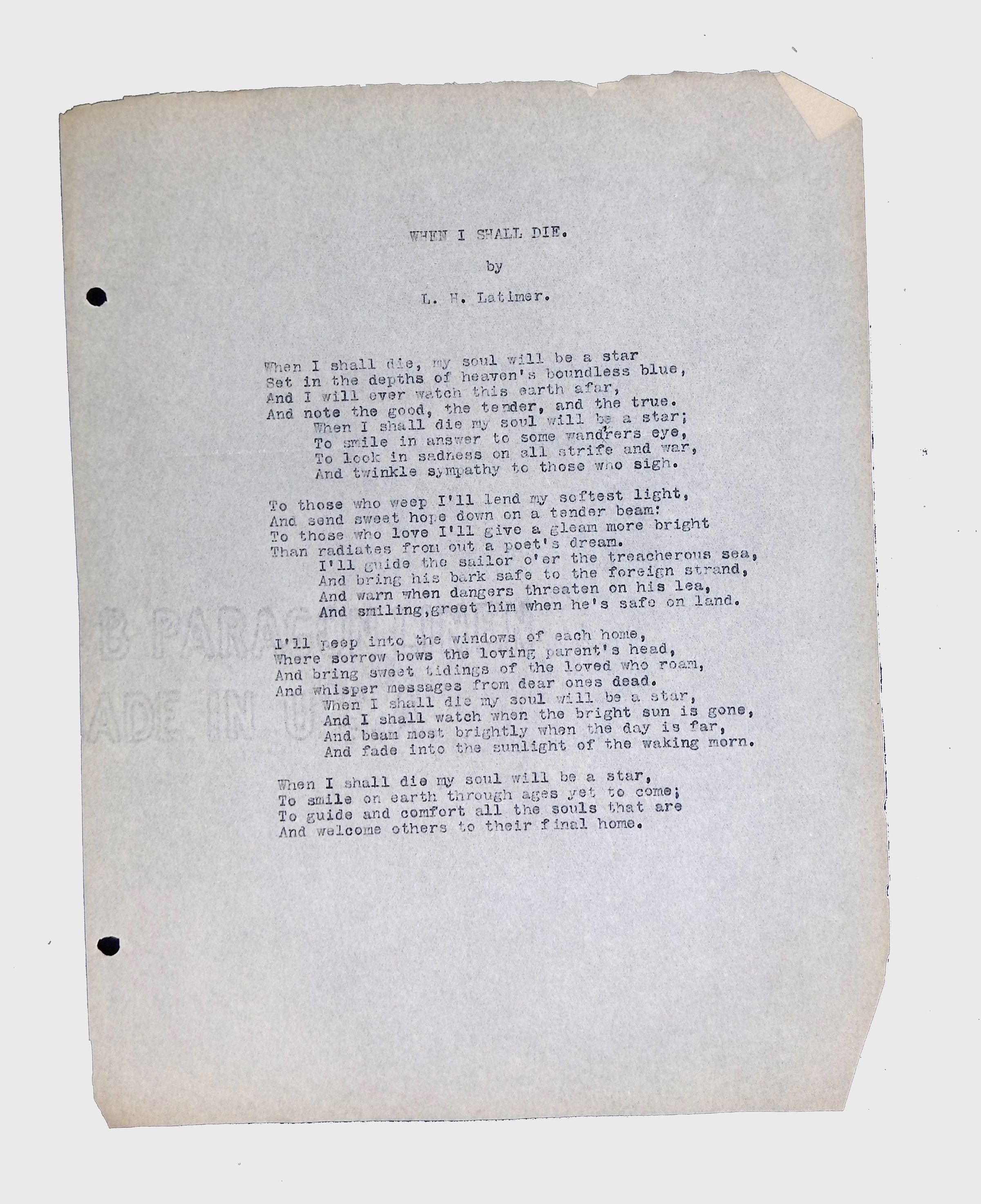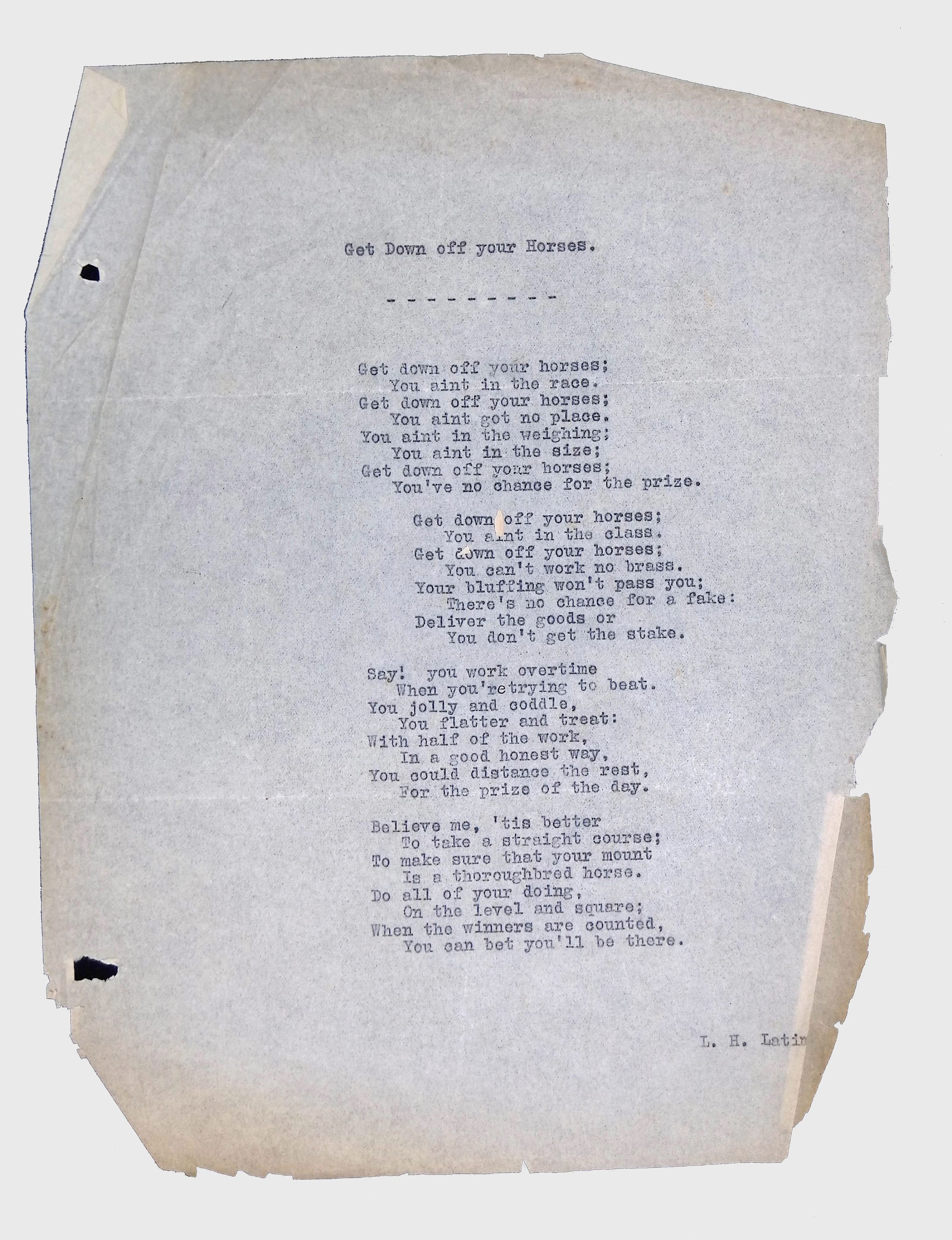 Handwritten and typed manuscripts of Latimer’s poetry.