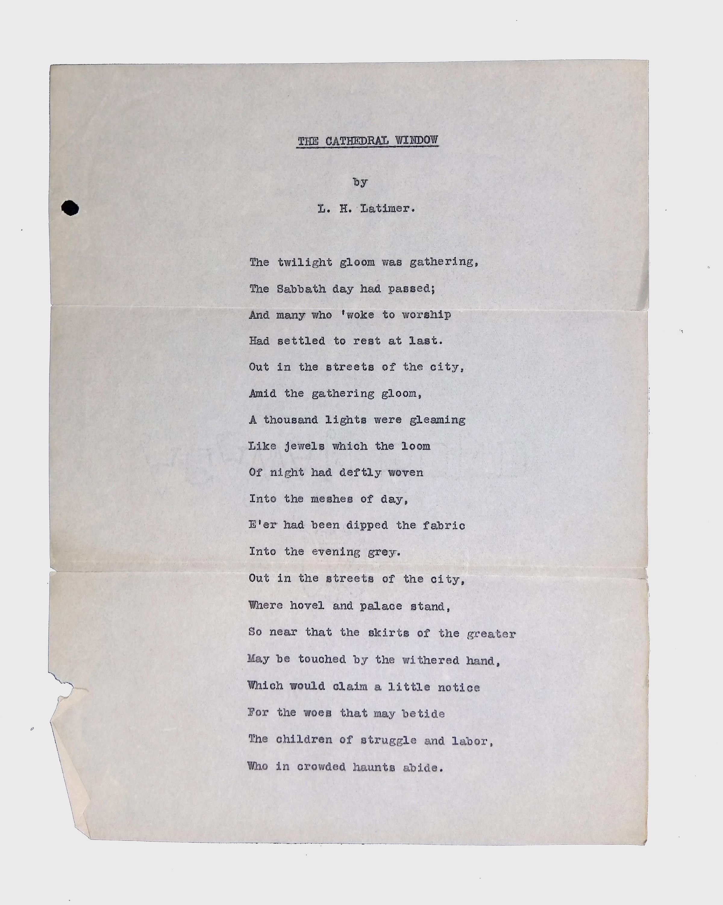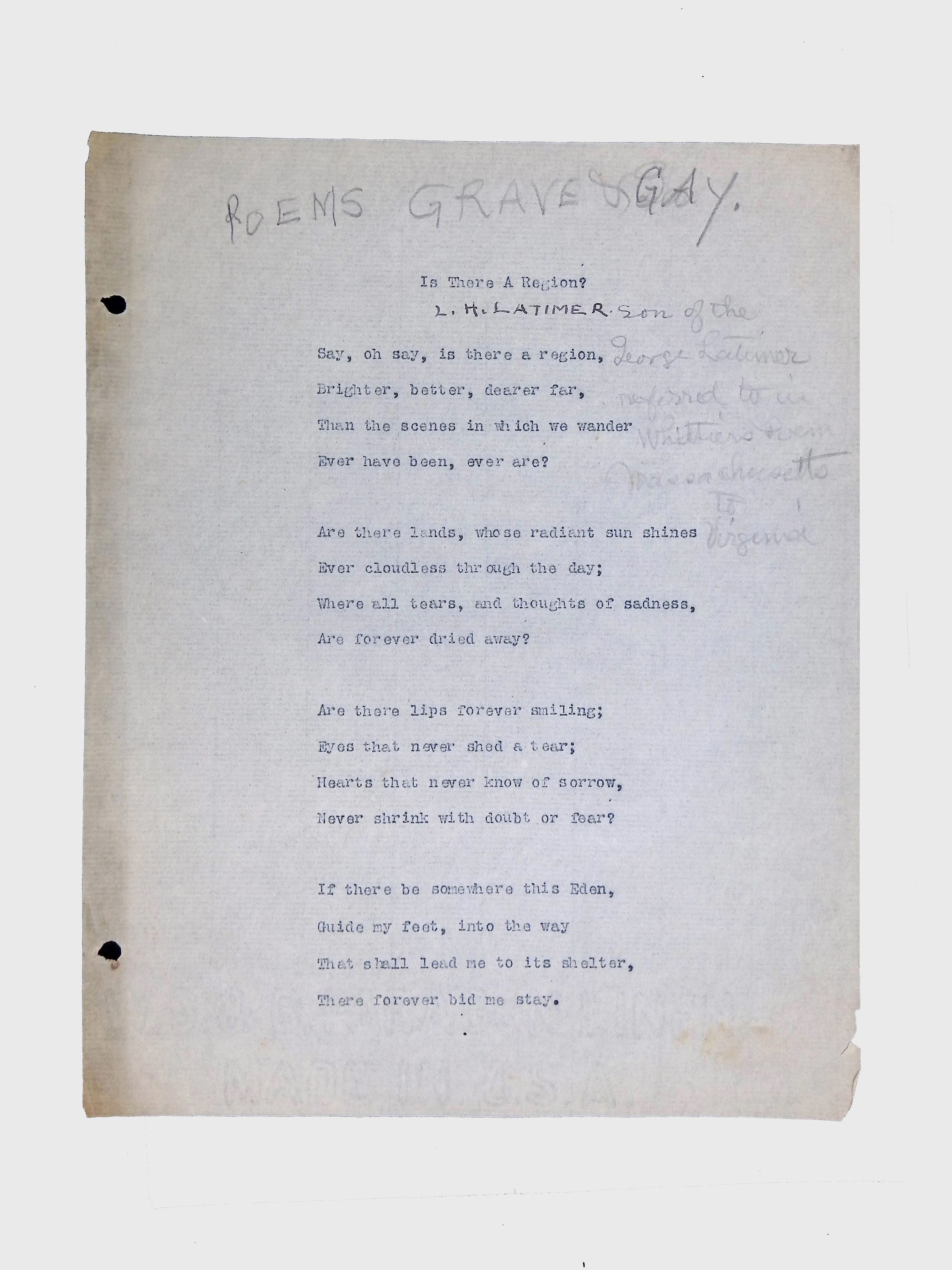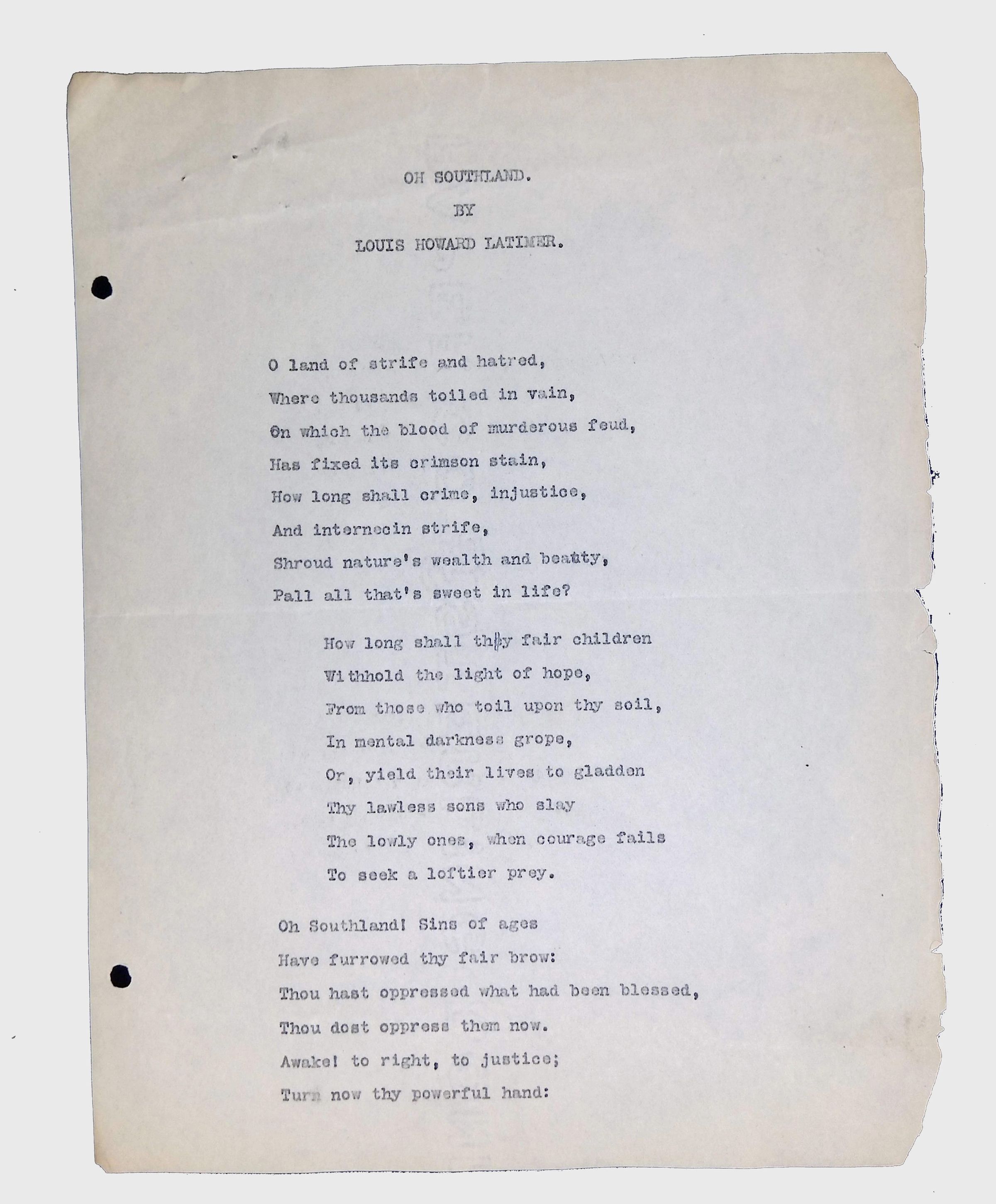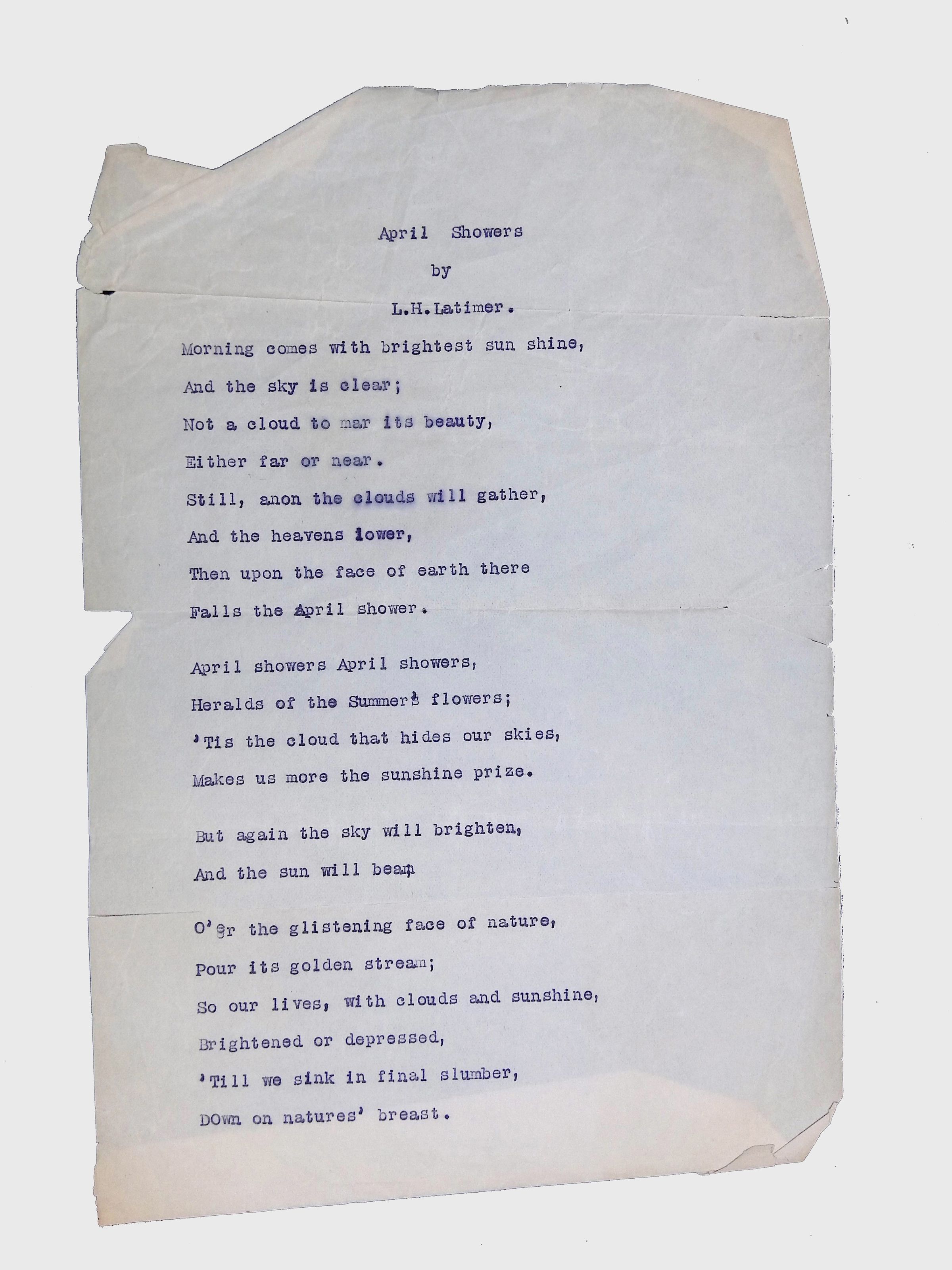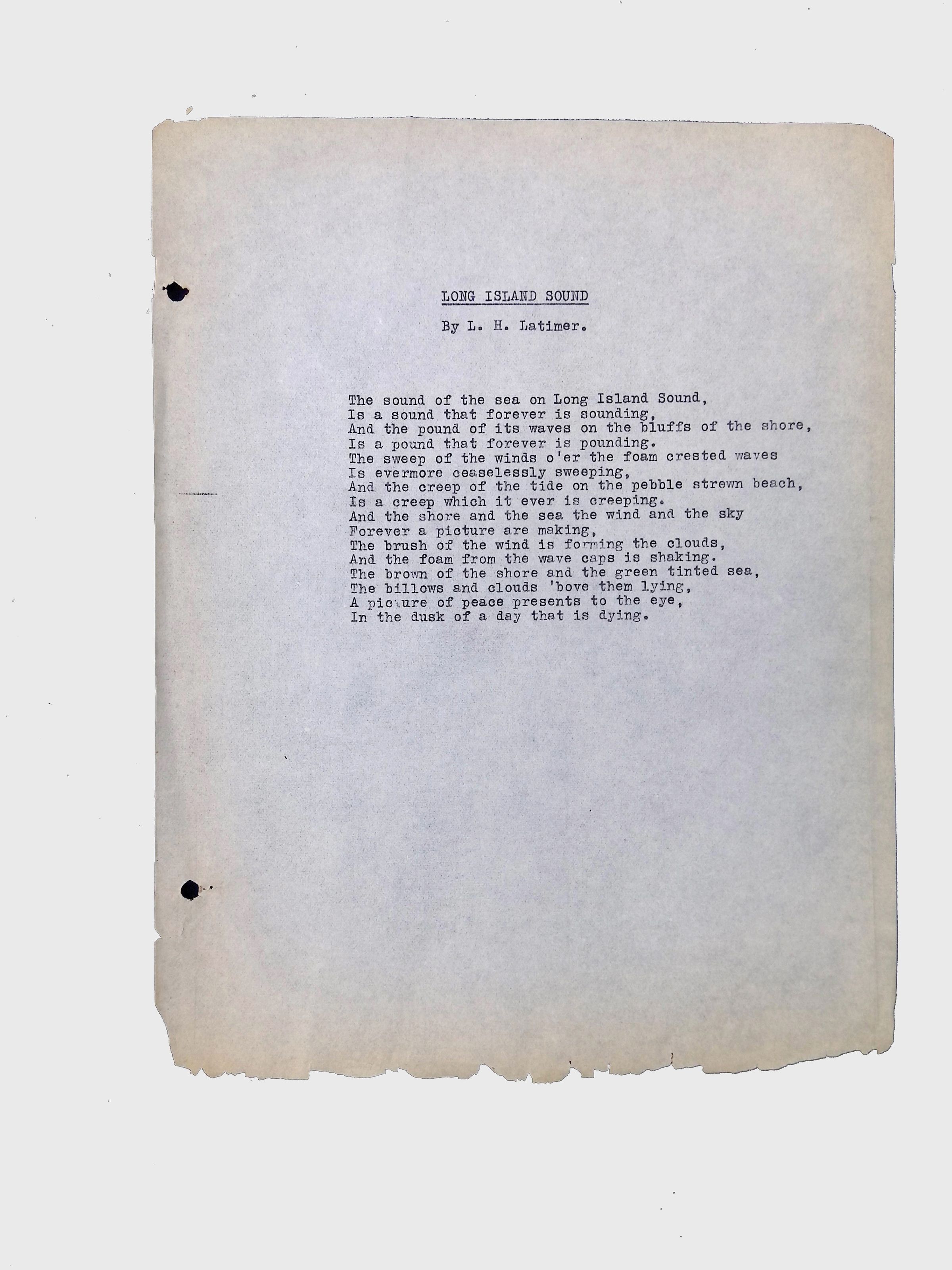 These materials provide a glimpse into Latimer’s intellectual and creative side, illustrating his thoughts on the social issues of his time. His poetry and prose offer insight into his life experiences, personal beliefs, and the broader African American experience during his lifetime.Location