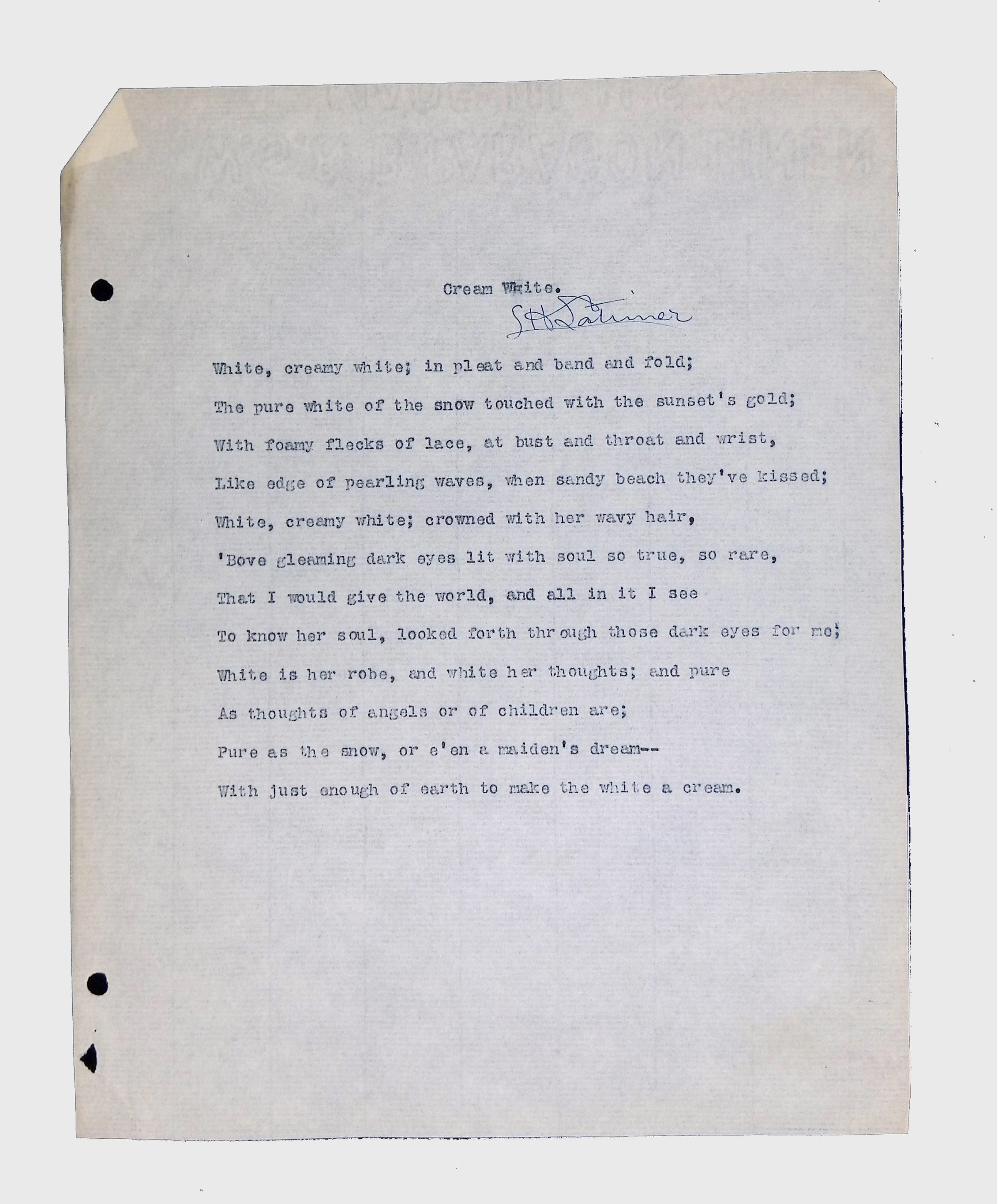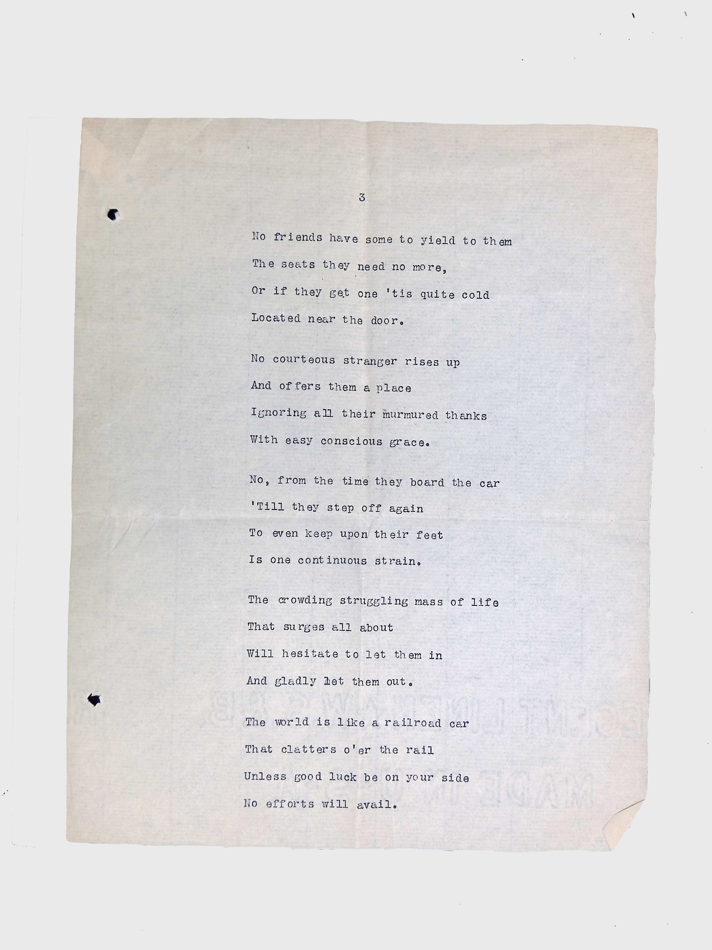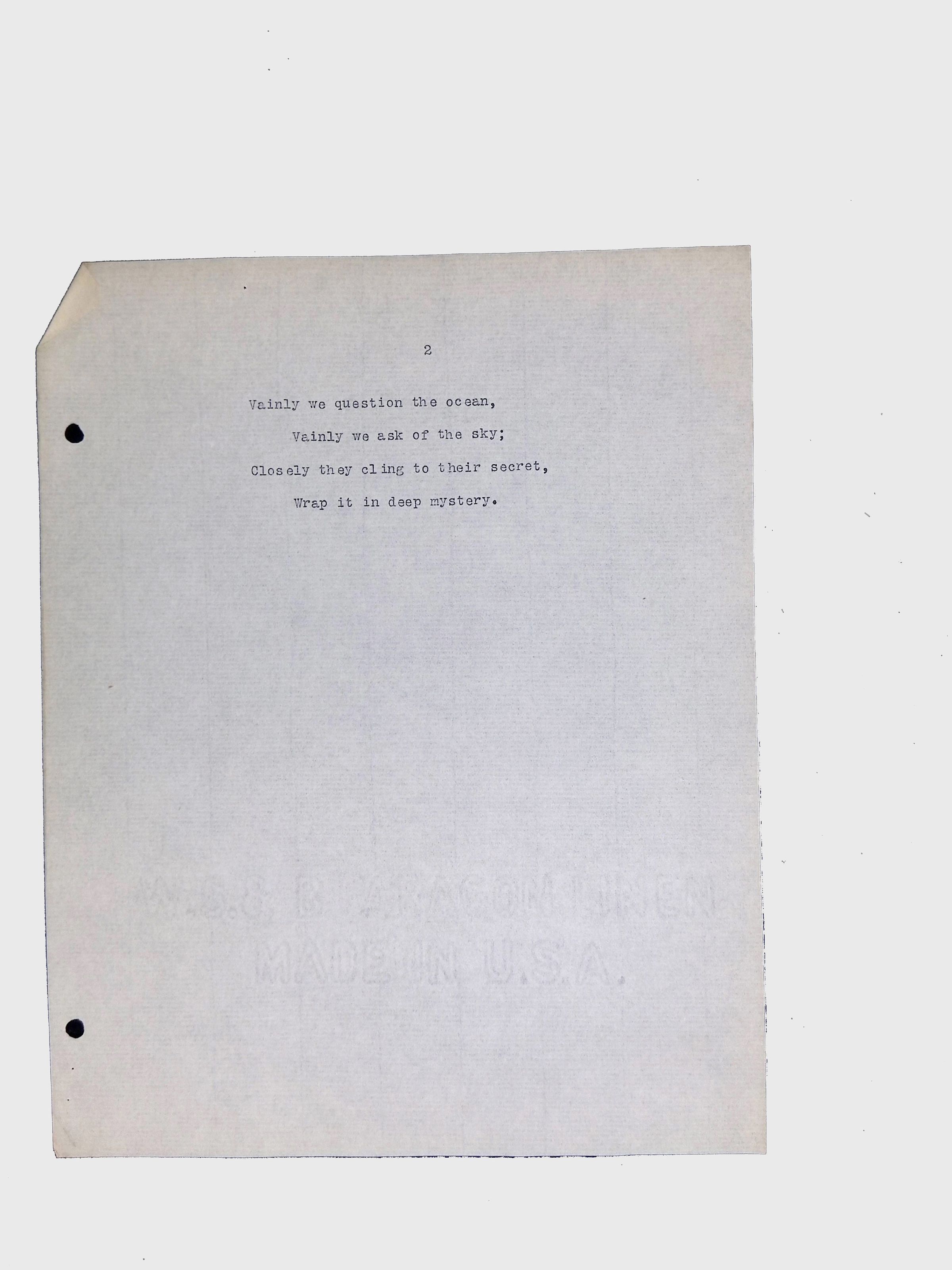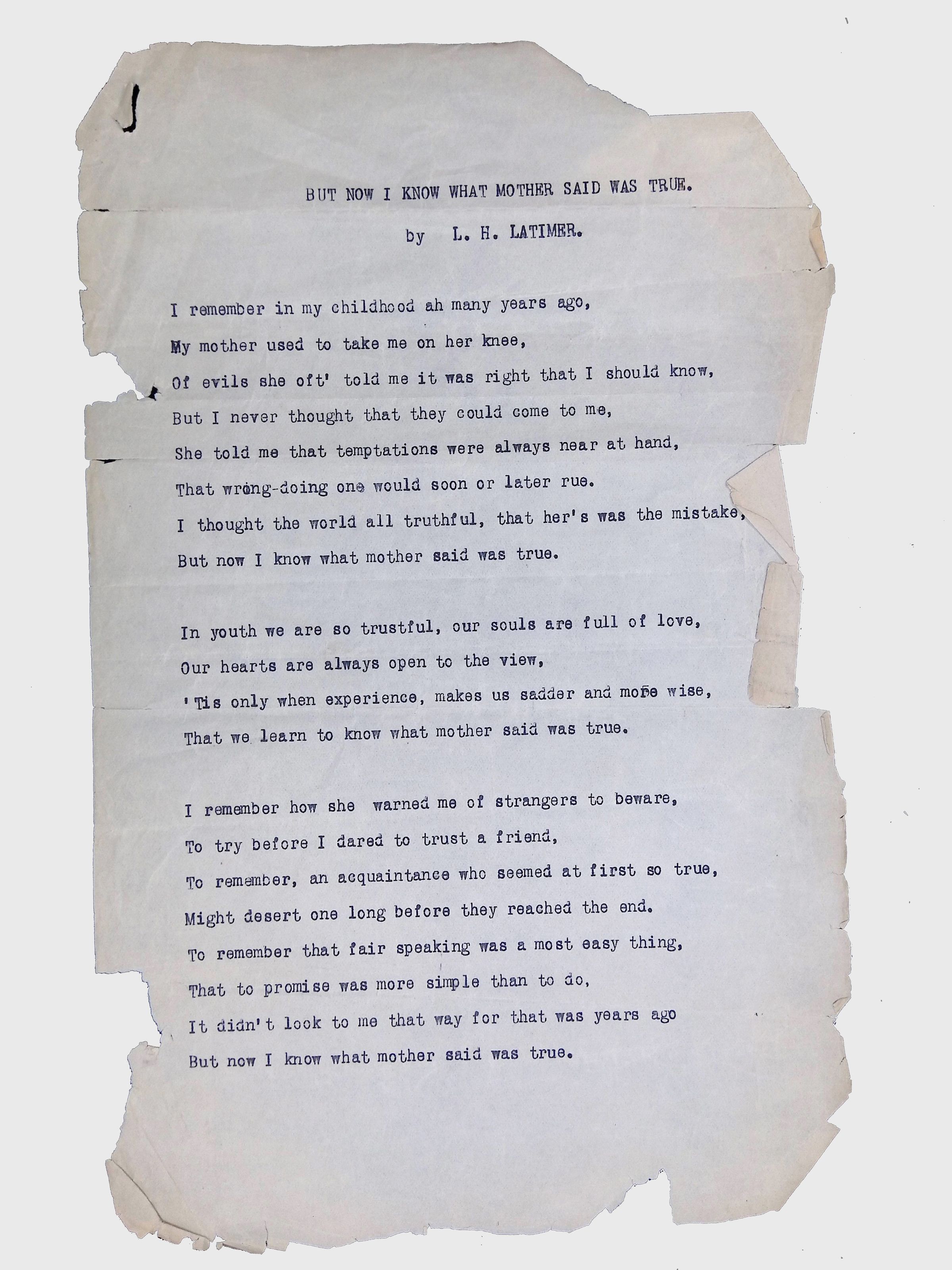 This folder contains original and copied writings by Lewis H. Latimer, including poetry, essays, and notes. Latimer was not only an inventor but also a talented writer and poet, expressing his thoughts on race, society, and personal reflections. The folder includes poems pertaining to African American life such as “Frederick Douglass” and “Cream White,” and a clipping of one of Latimer’s poem published in The New York Age, New York City’s African American newspaper.Collection
