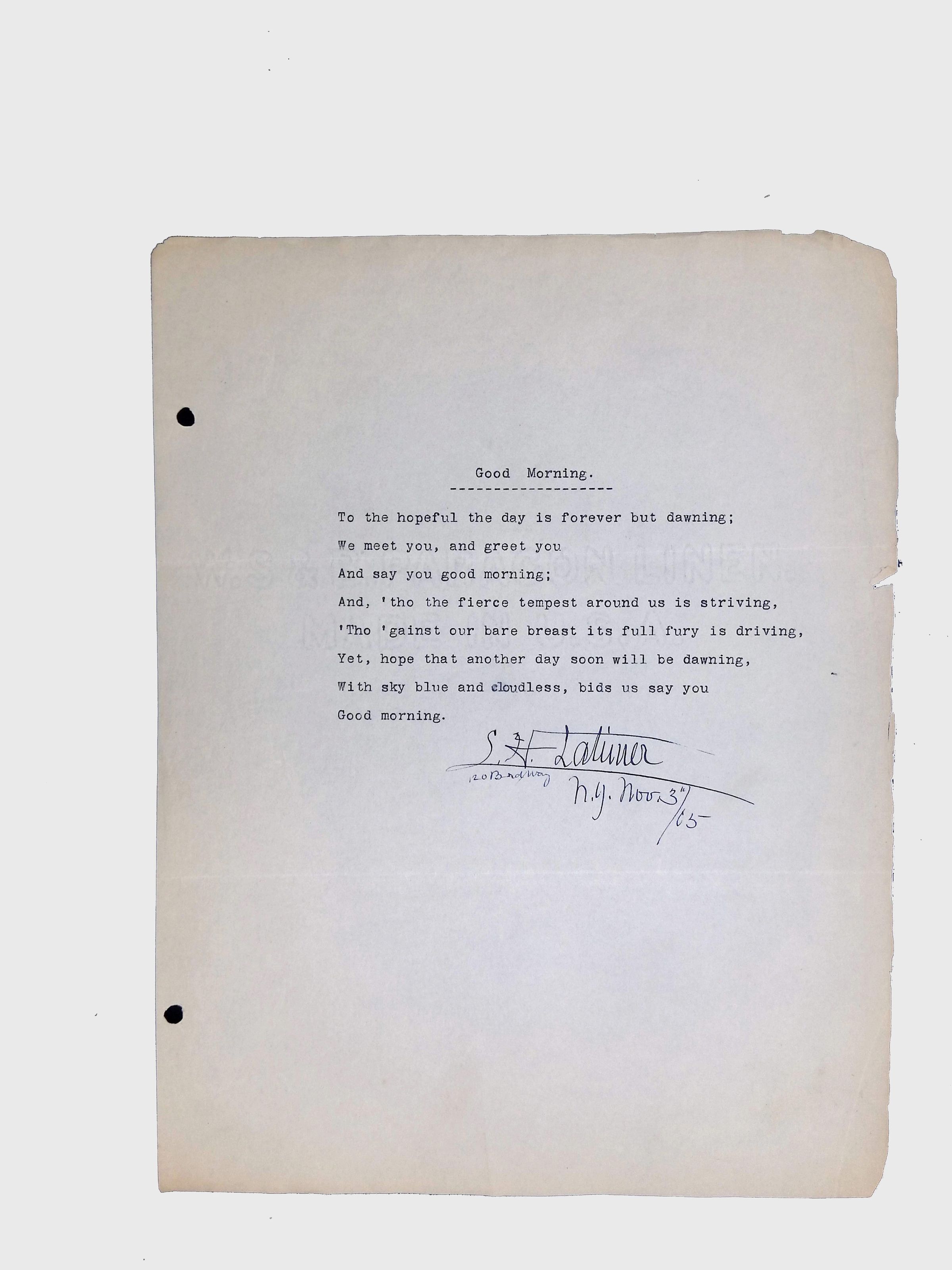 Documents show evidence of editorial marks and revisions, highlighting Latimer’s process of refining his work.Context