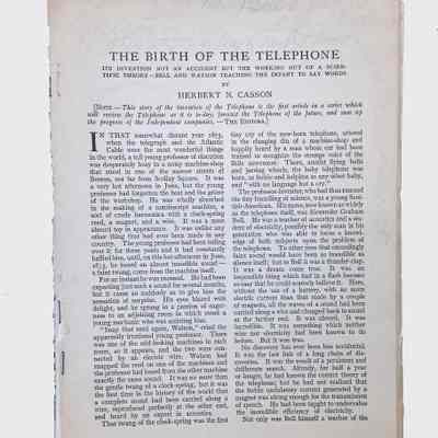 Printed Material, Herbert N. Casson, The Birth of the Telephone.