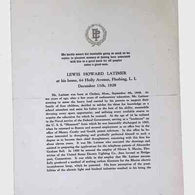 Printed Material: Obituaries and Public Notices on Lewis H. Latimer