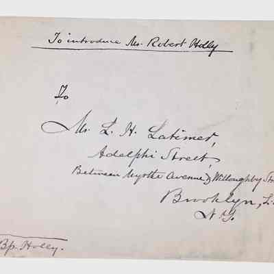 Document Cover Page Inscribed with Lewis H. Latimer’s Name and Address