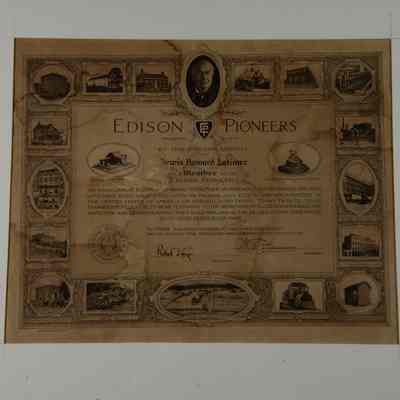 Edison Pioneers Membership Certificate for Lewis Howard Latimer, 1921