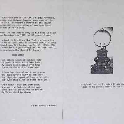 Printed Material, (6 folders, 1930-ca. 1985): Historical Newspaper Clippings and Tributes to Lewis Howard Latimer