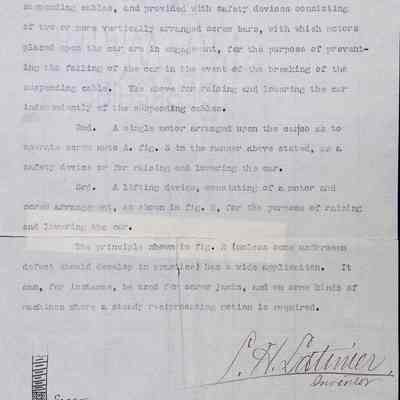 Signed Engineering Document by Lewis H. Latimer – Elevator Safety Mechanism