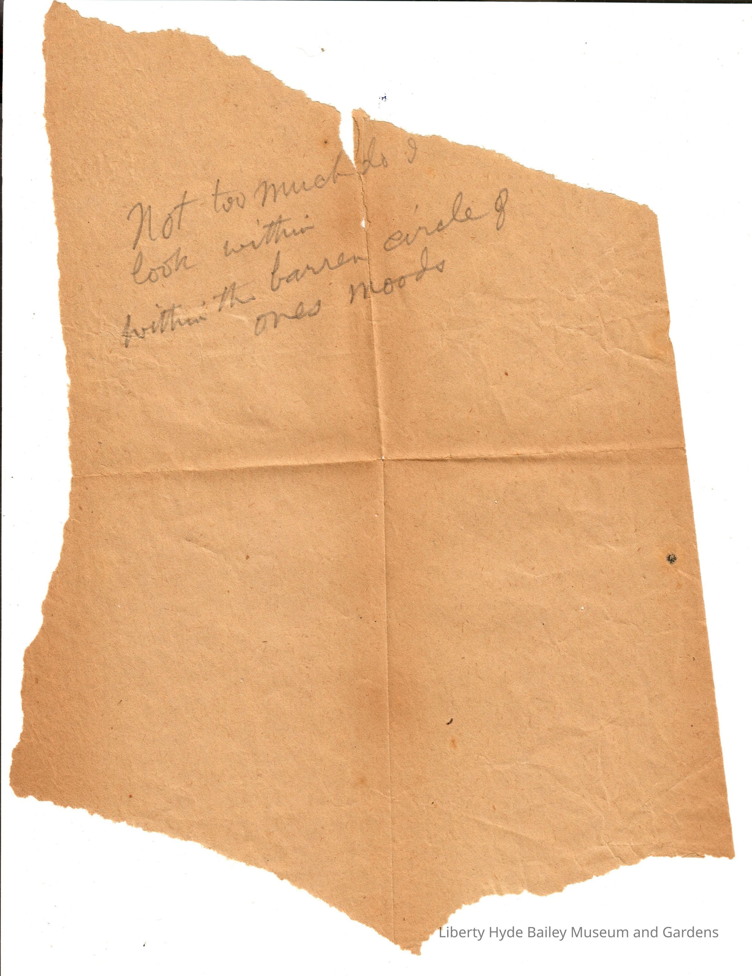 Self-published as a chapbook in 1911, the poem recounts Bailey’s intellectual evolution. The top right cover has the remnant of label glue. This volume contains a loose slip of paper in Bailey's handwriting with verse.Context