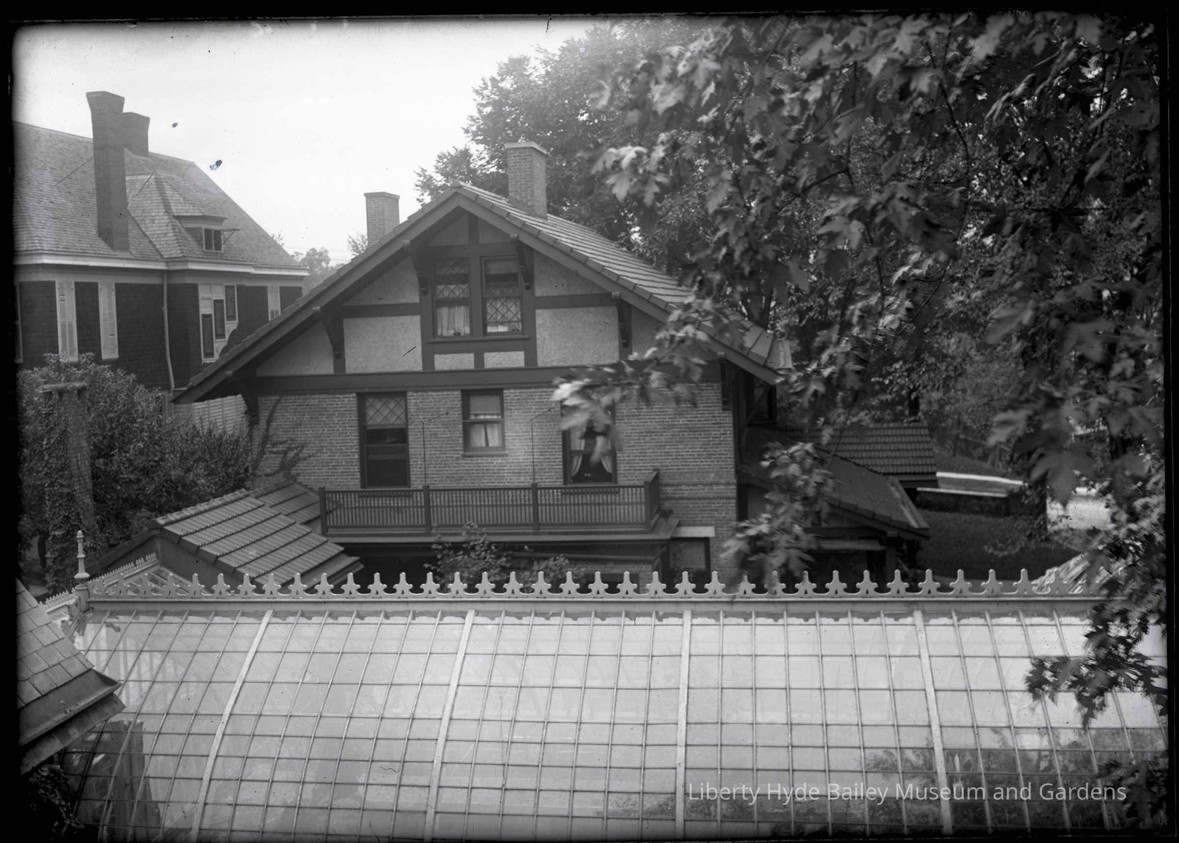 After the death in 1897 of Henry Sage, a wealthy benefactor of Cornell University, Bailey purchased a lot across the street from the house, which included Sage’s carriage house and adjoining greenhouses. With help from architecture professor Clarence Martin, Bailey designed his family’s home to be built alongside the greenhouse. Bailey helped design the house in the craftsman style, highlighting the woodwork of the builders and featuring many built-in bookshelves and seating.