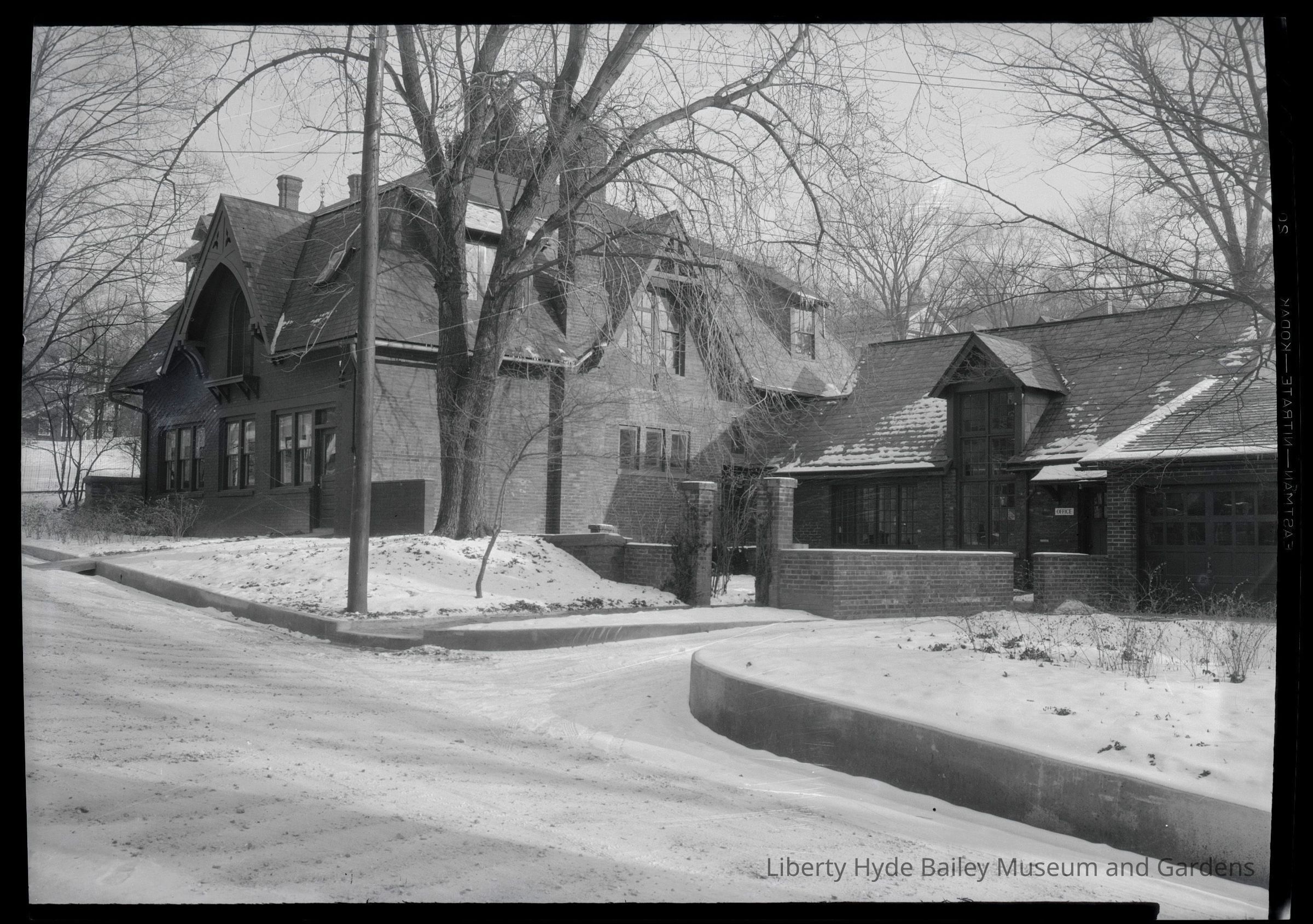 After the death in 1897 of Henry Sage, a wealthy benefactor of Cornell University, Bailey purchased a lot across the street from the house, which included Sage’s carriage house and adjoining greenhouses. With help from architecture professor Clarence Martin, Bailey designed his family’s home to be built alongside the greenhouse. Bailey helped design the house in the craftsman style, highlighting the woodwork of the builders and featuring many built-in bookshelves and seating.