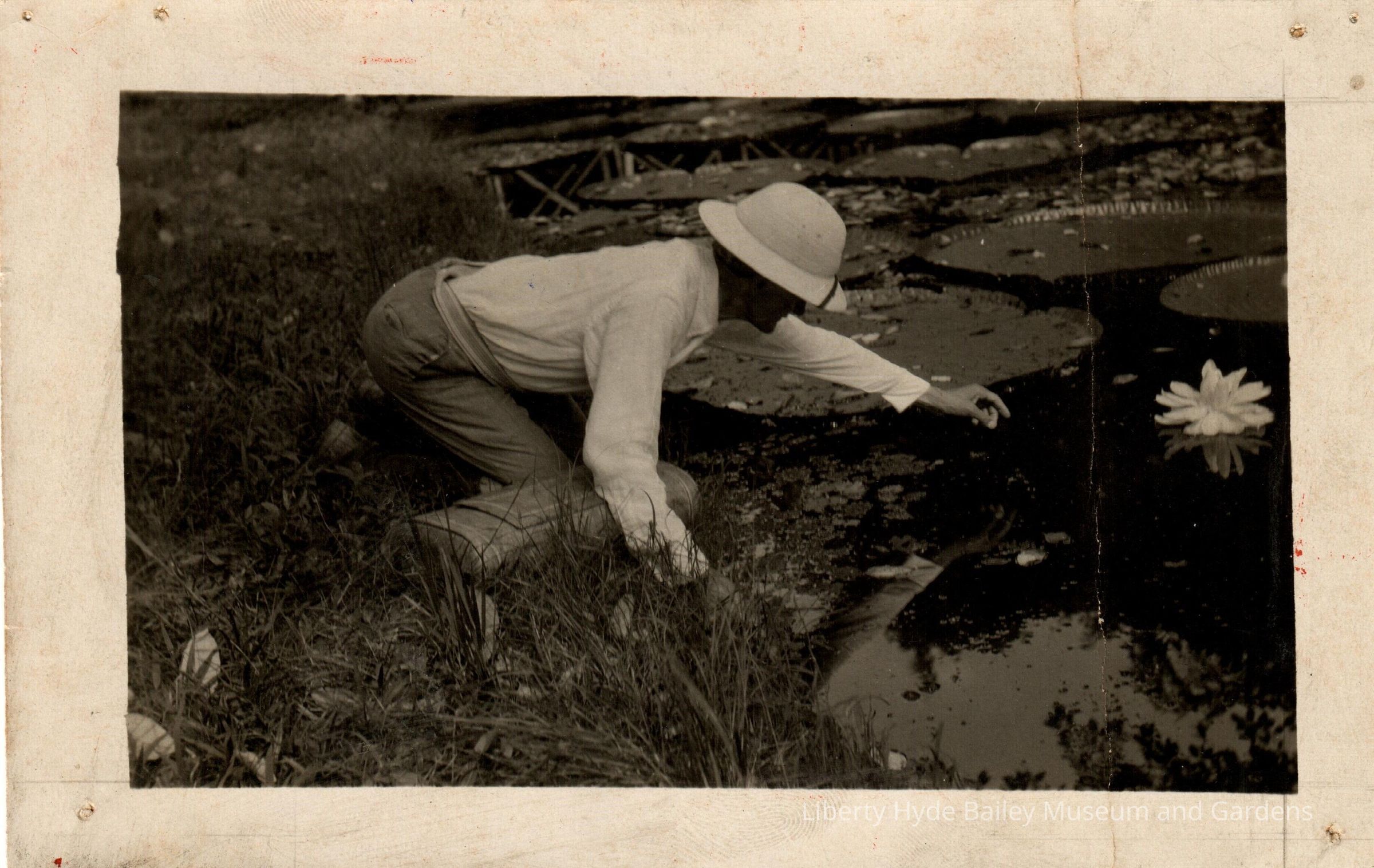 Liberty Hyde Bailey reaching for a botanical specimen in South America. (Must be returned to State Editor)