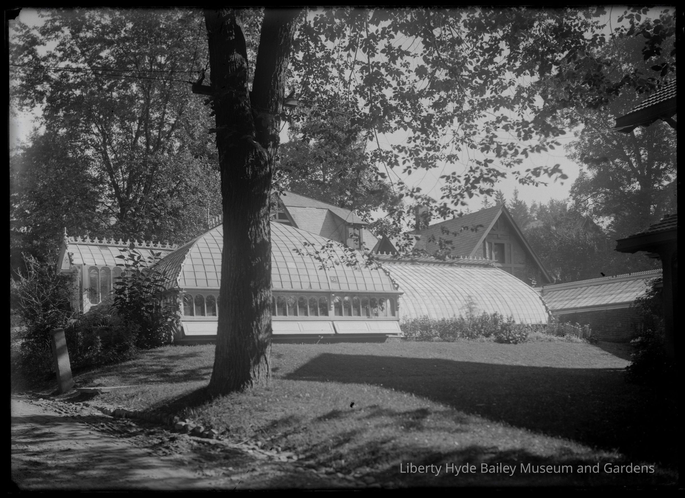 After the death in 1897 of Henry Sage, a wealthy benefactor of Cornell University, Bailey purchased a lot across the street from the house, which included Sage’s carriage house and adjoining greenhouses. With help from architecture professor Clarence Martin, Bailey designed his family’s home to be built alongside the greenhouse. Bailey helped design the house in the craftsman style, highlighting the woodwork of the builders and featuring many built-in bookshelves and seating.