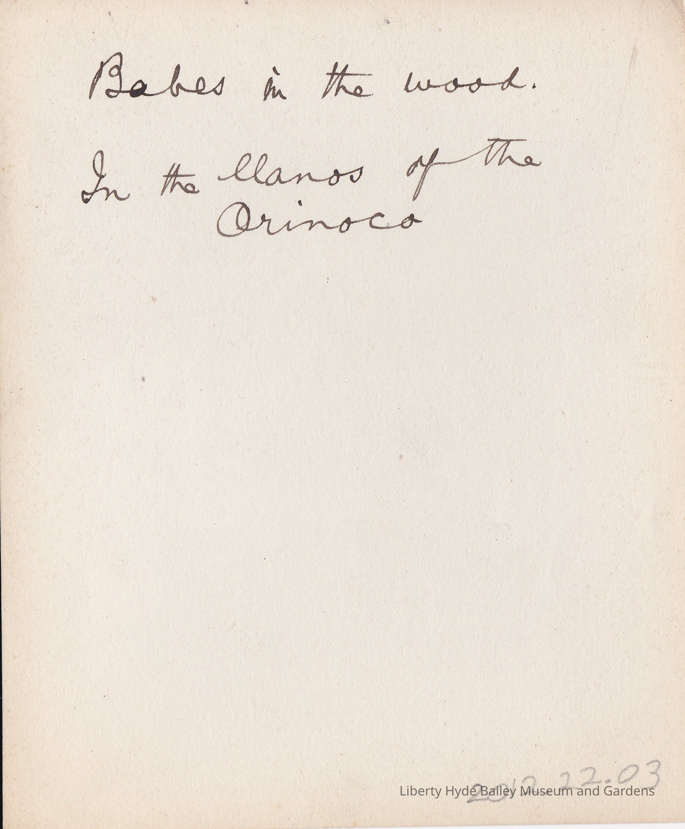 Babes in the wood. In the llanos of the Orinoco