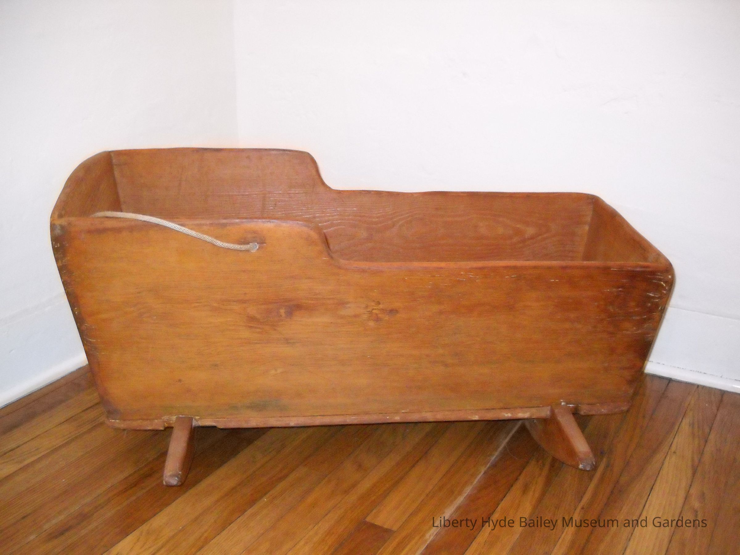 34" x 14" cradle, made by Liberty Hyde Bailey Sr. for the newborn, Liberty Hyde Bailey Jr. in 1858. Museum correspondence indicated that the cradle was received with a coat of paint and the original finish was later restored.Collection