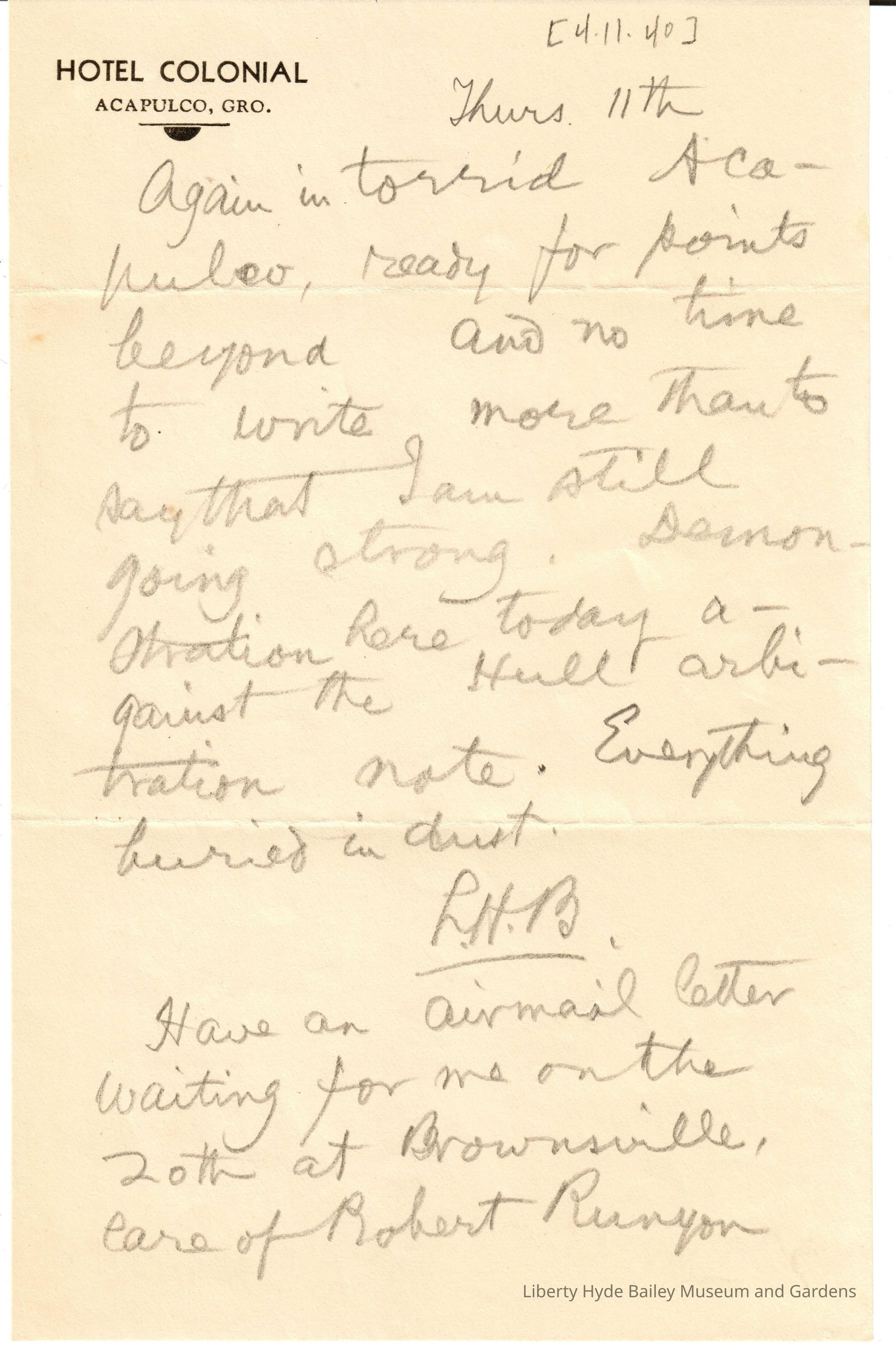 Letter: April 11, 1940