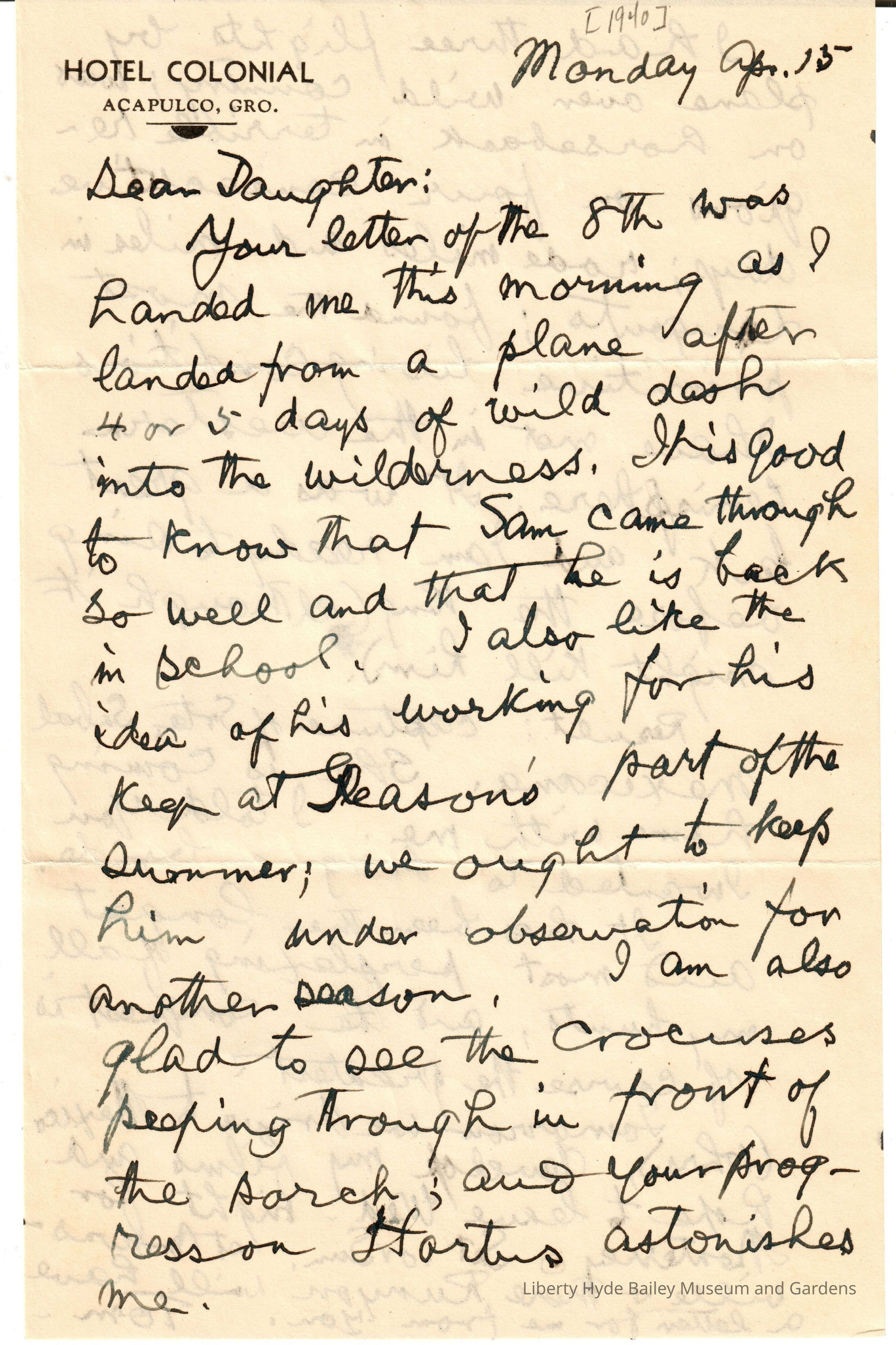 Letter: April 15, 1940
