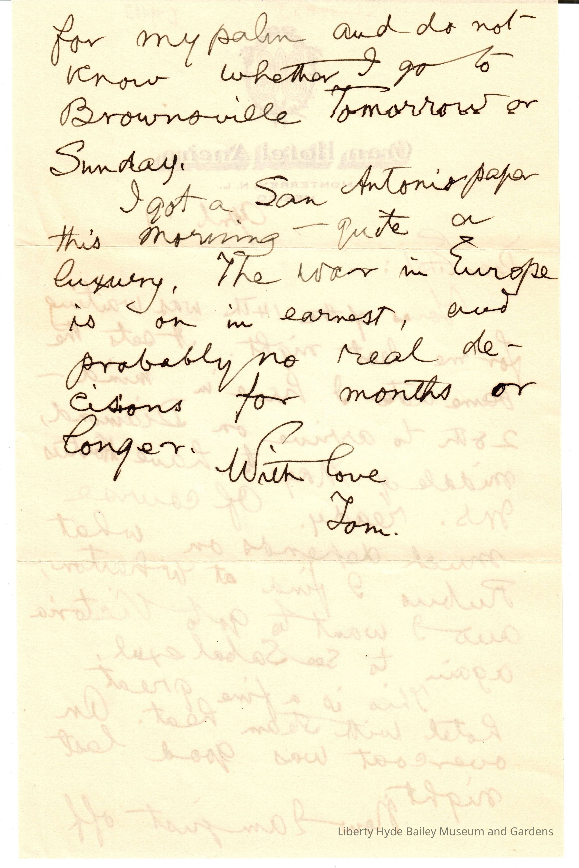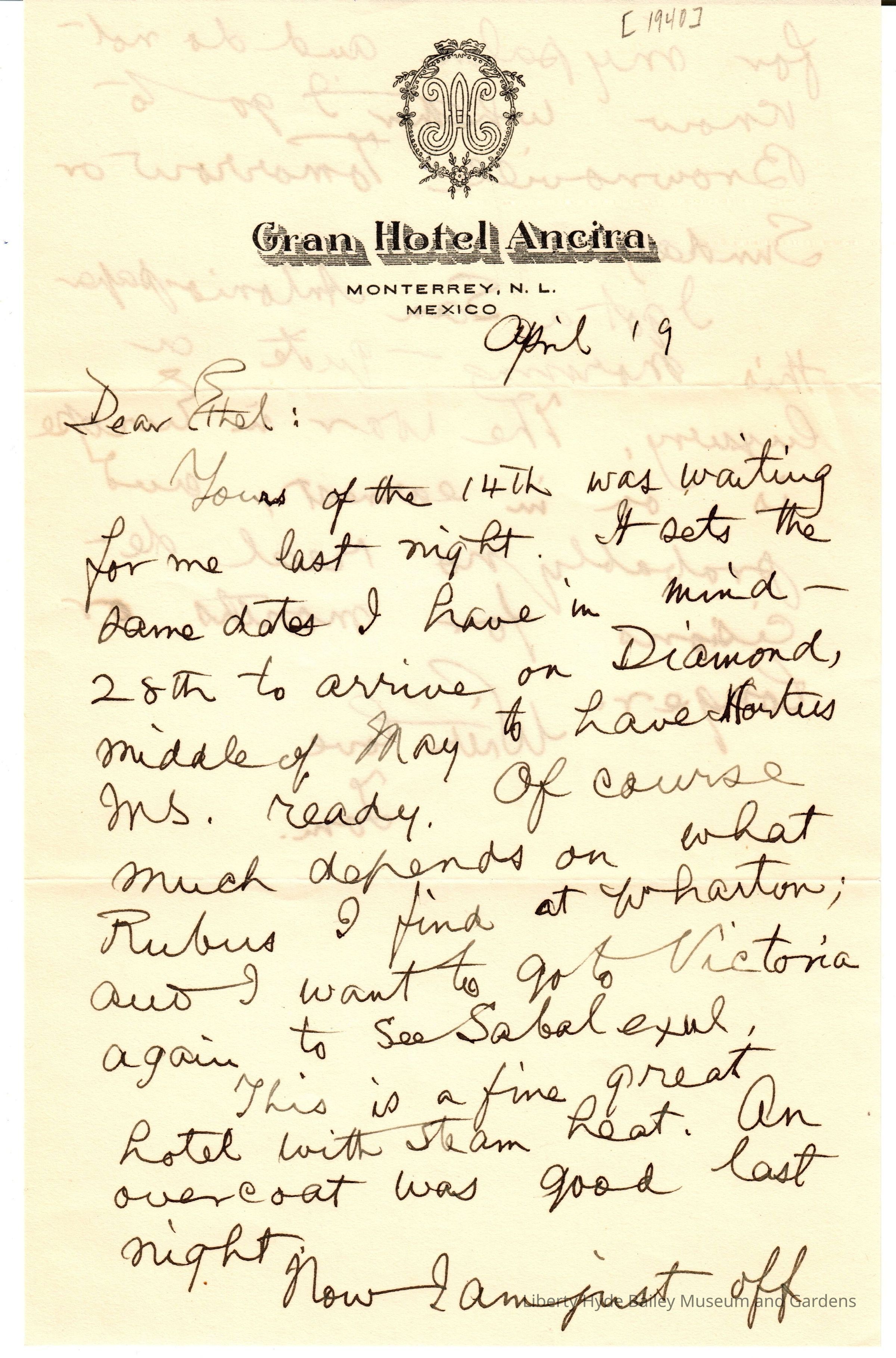 In this letter, Bailey refers to his collaboration with Ethel on, "Hortus Second: A Concise Dictionary of Gardening..." which was being revised and reset for 1941.Subject Place