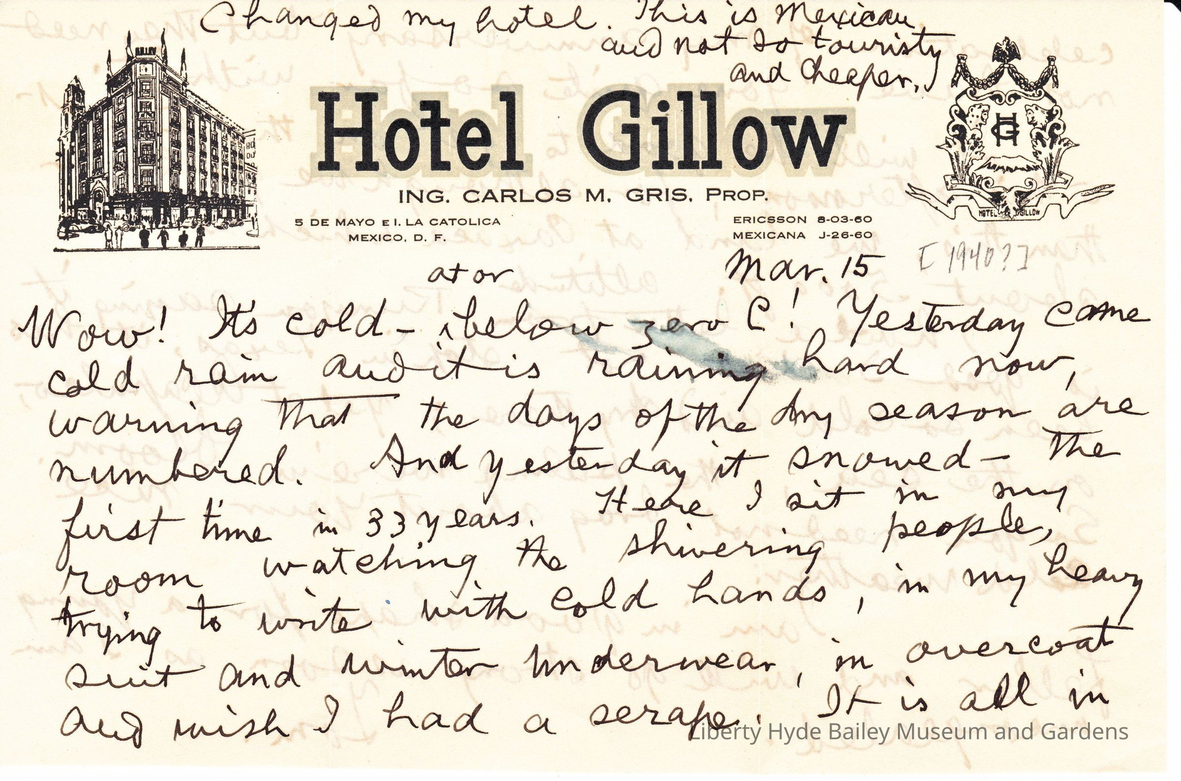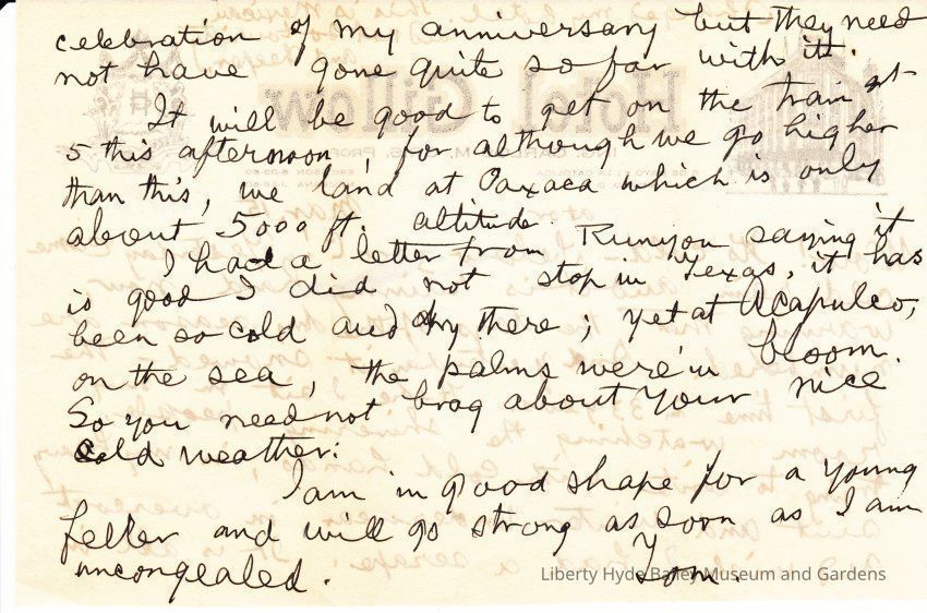 LHB discussses cold weather in M. and discusses travel arrangements, on to Oaxaca. Letter from Runyon and conditions at Acapulco discussed.Subject Place