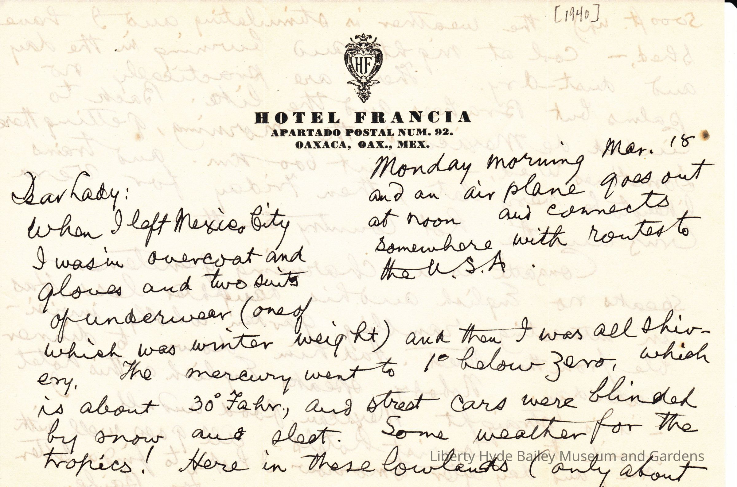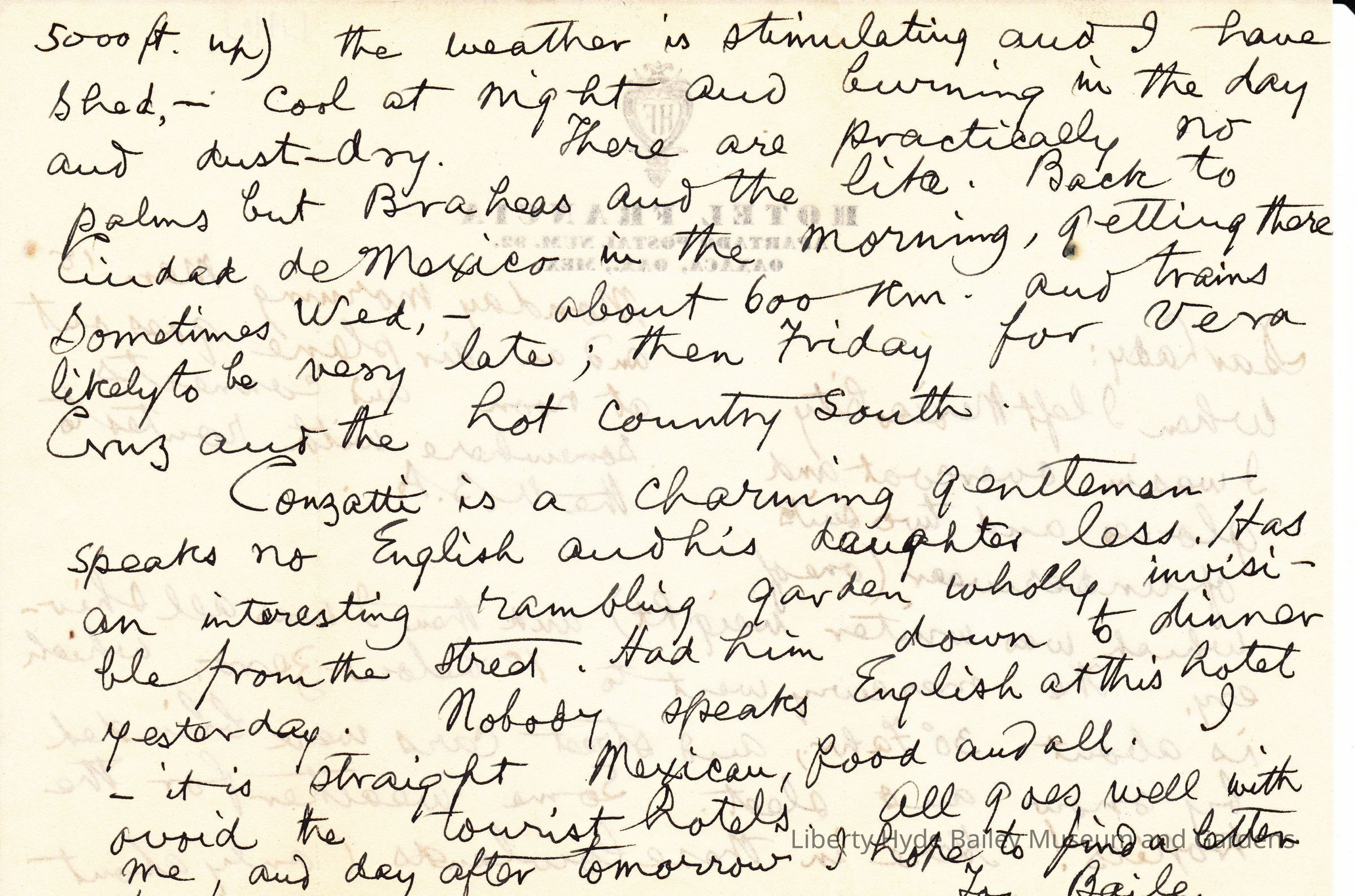 Letter, LH Bailey to EZ Bailey: Oaxaca, Mexico