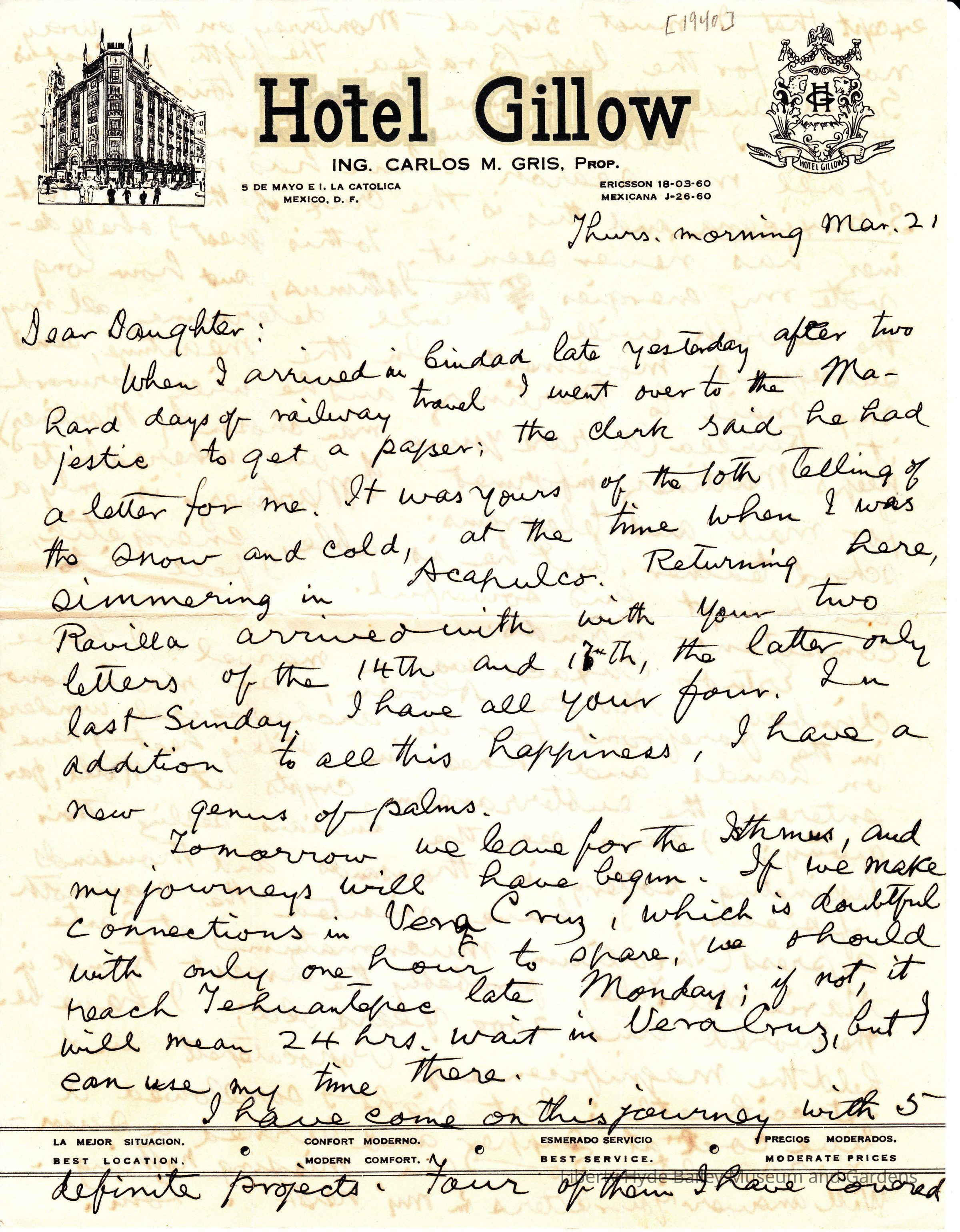 Letter, LH Bailey to EZ Bailey: 3-21-40; Mexico