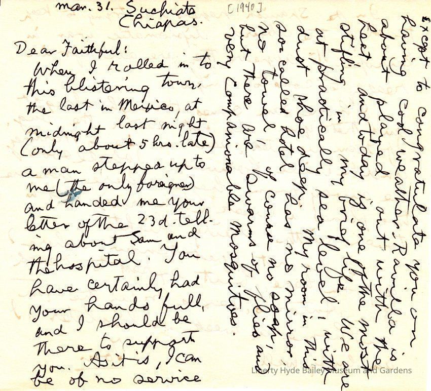 Letter, LH Bailey to EZ Bailey: 3-31-1940: Suchiapa, Chiapas, Mexico