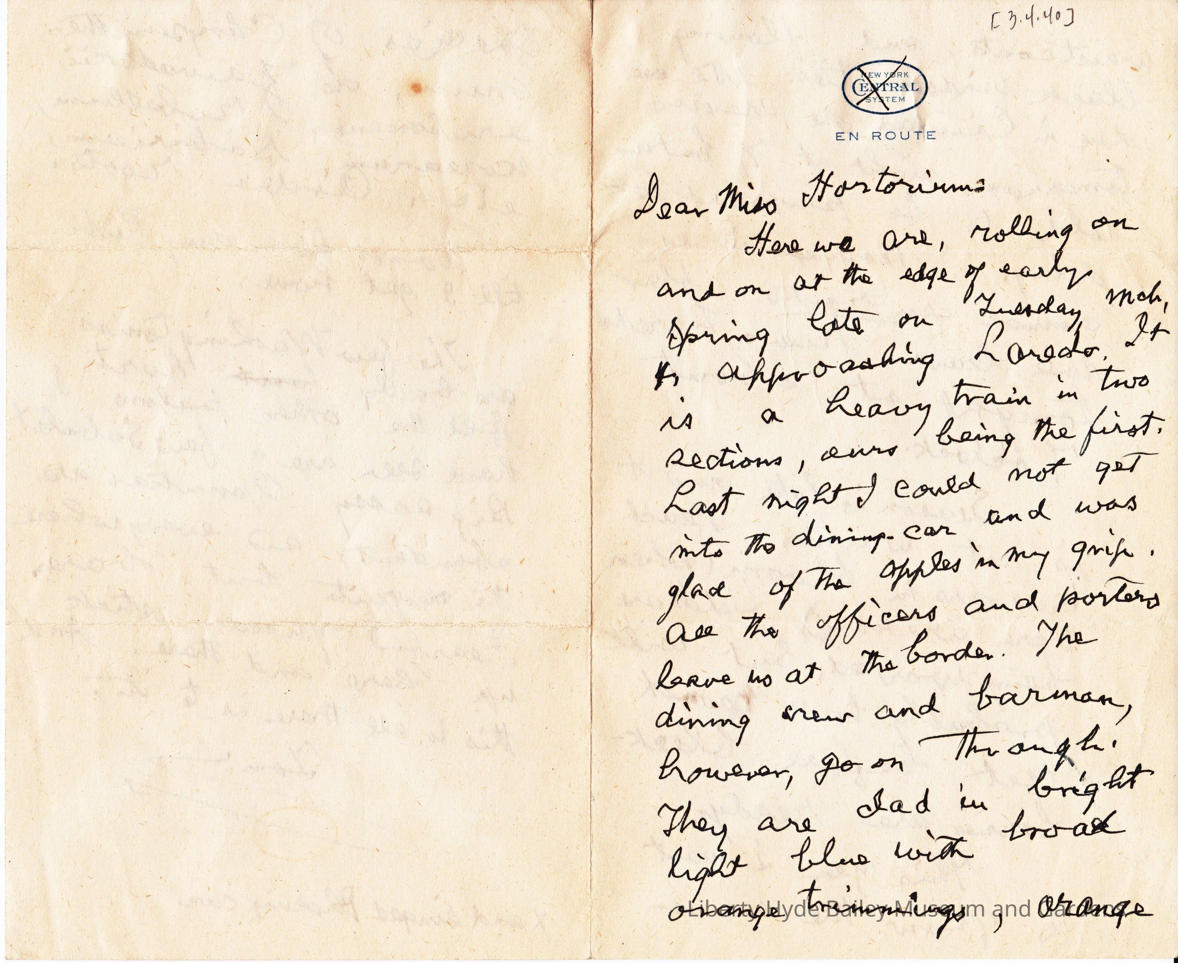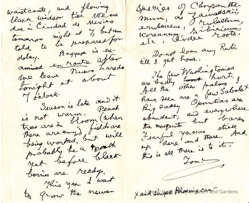 Letter, LH Bailey to EZ Bailey; Near Laredo, TX En Route to Mexico by train
