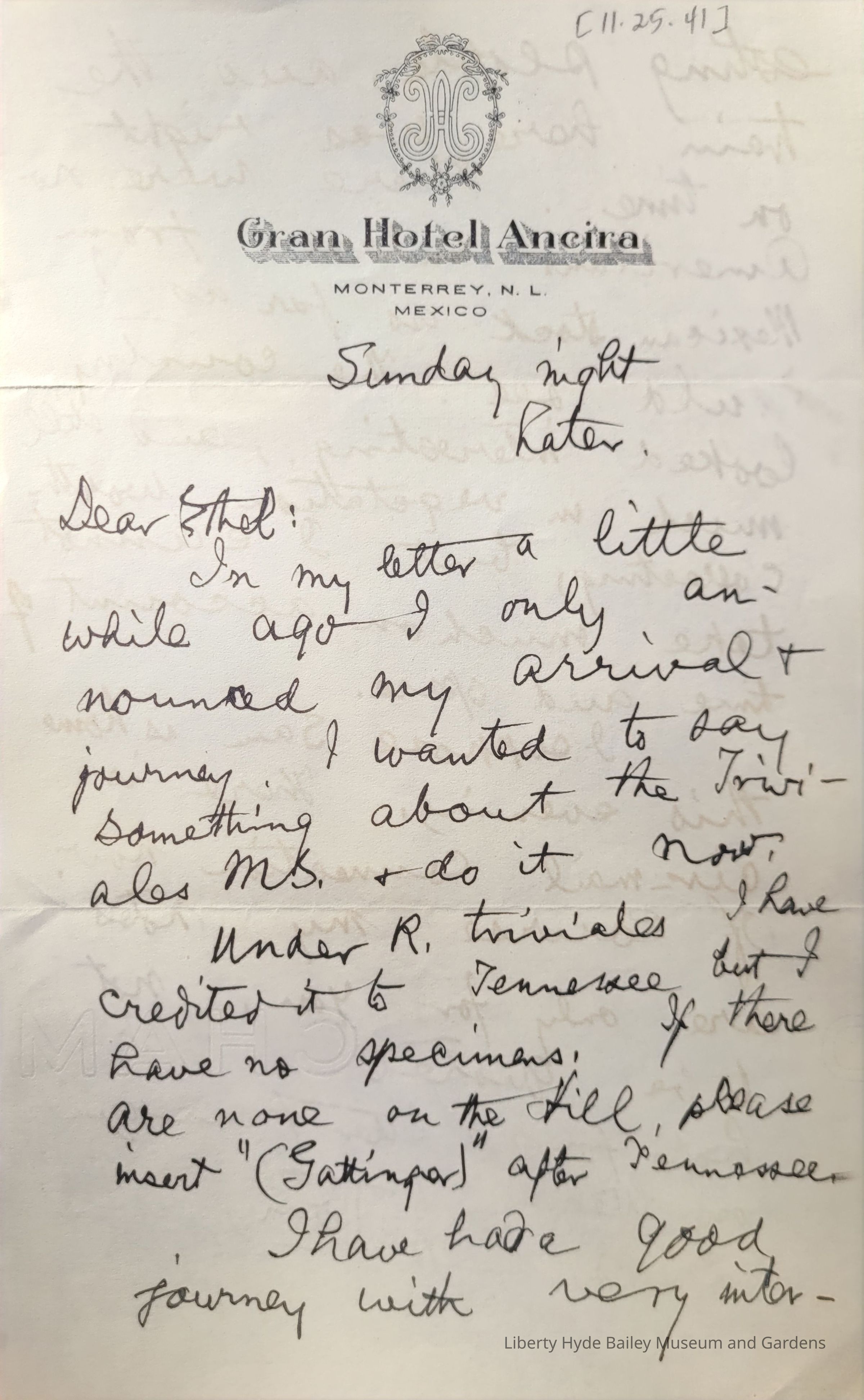 Letter: November 25, 1941 (second entry)