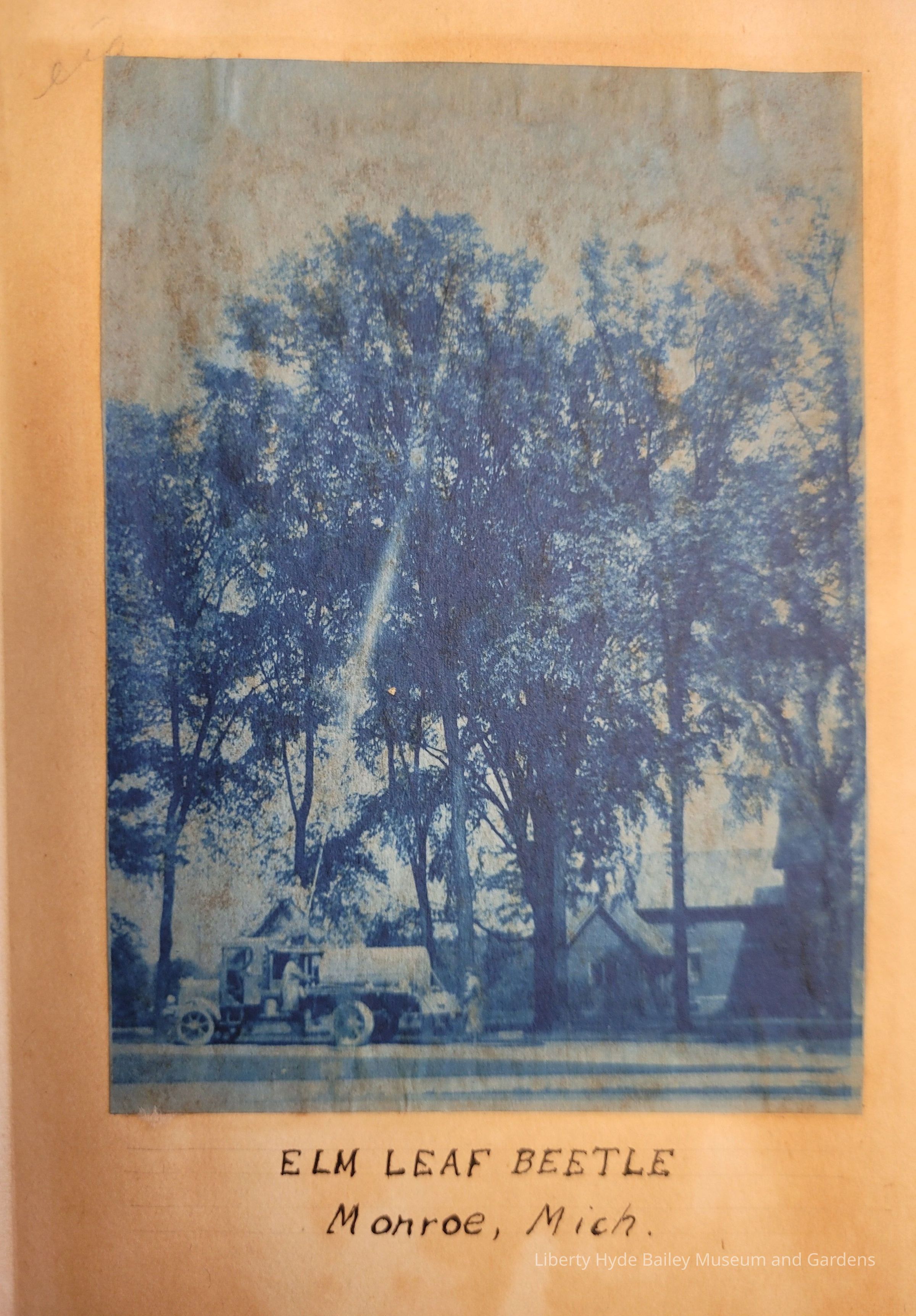 Under image an inscription, "ELM LEAF BEETLE Monroe, Mich."Type