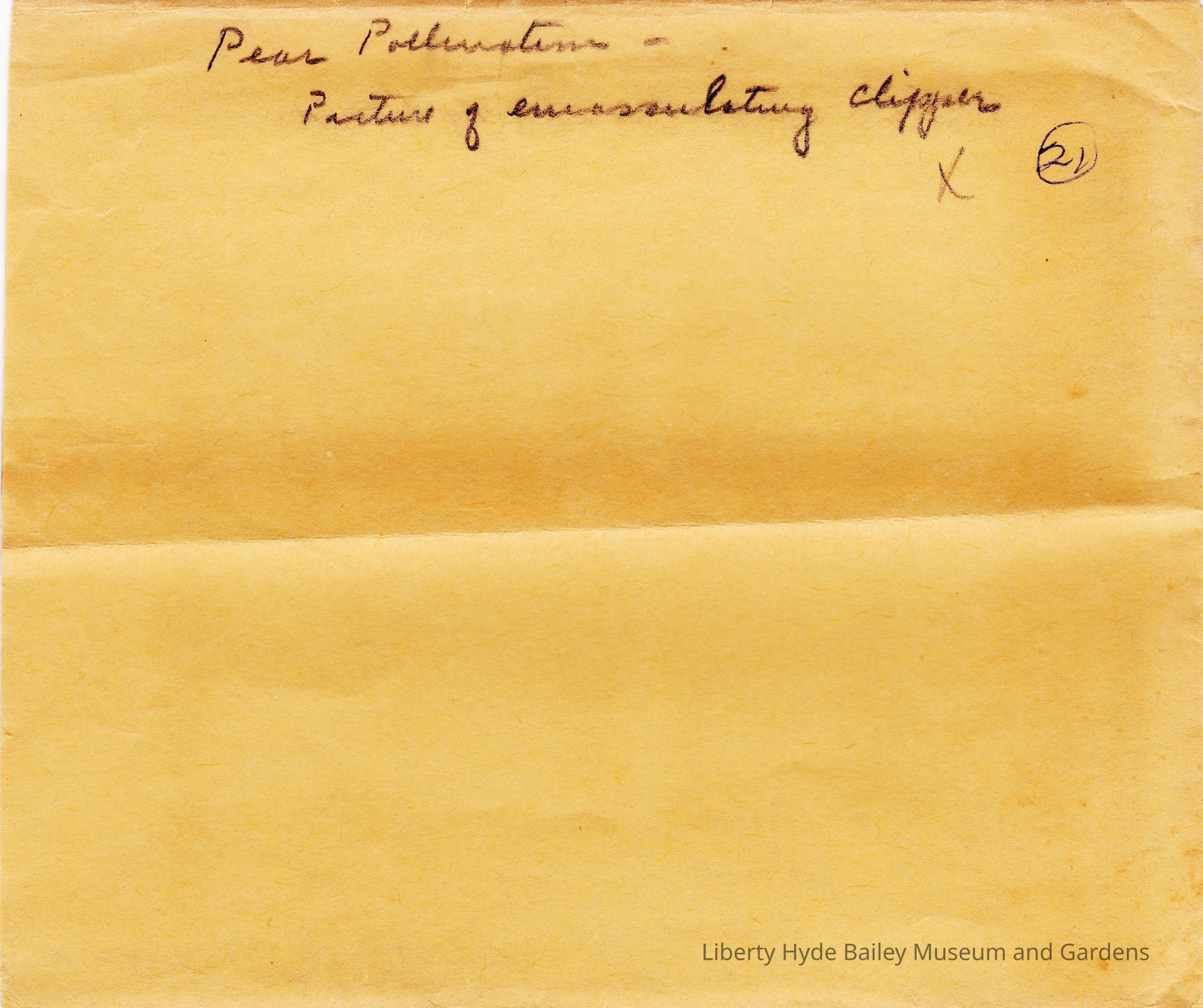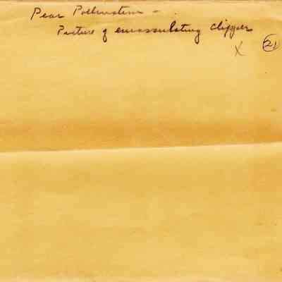 "Pear Pollinations- Picture of emassulating (?) clipper"
