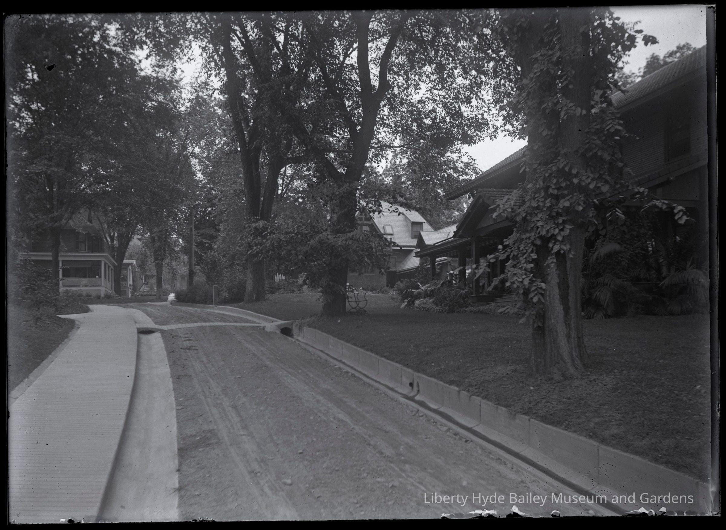 After the death in 1897 of Henry Sage, a wealthy benefactor of Cornell University, Bailey purchased a lot across the street from the house, which included Sage’s carriage house and adjoining greenhouses. With help from architecture professor Clarence Martin, Bailey designed his family’s home to be built alongside the greenhouse. Bailey helped design the house in the craftsman style, highlighting the woodwork of the builders and featuring many built-in bookshelves and seating.