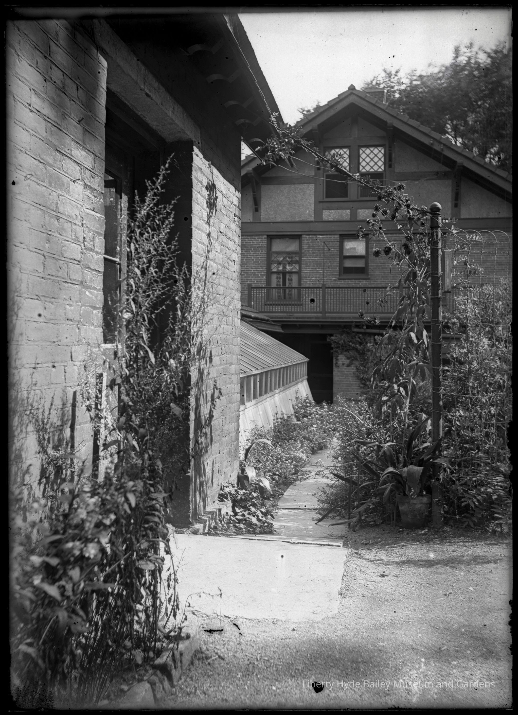 After the death in 1897 of Henry Sage, a wealthy benefactor of Cornell University, Bailey purchased a lot across the street from the house, which included Sage’s carriage house and adjoining greenhouses. With help from architecture professor Clarence Martin, Bailey designed his family’s home to be built alongside the greenhouse. Bailey helped design the house in the craftsman style, highlighting the woodwork of the builders and featuring many built-in bookshelves and seating.
